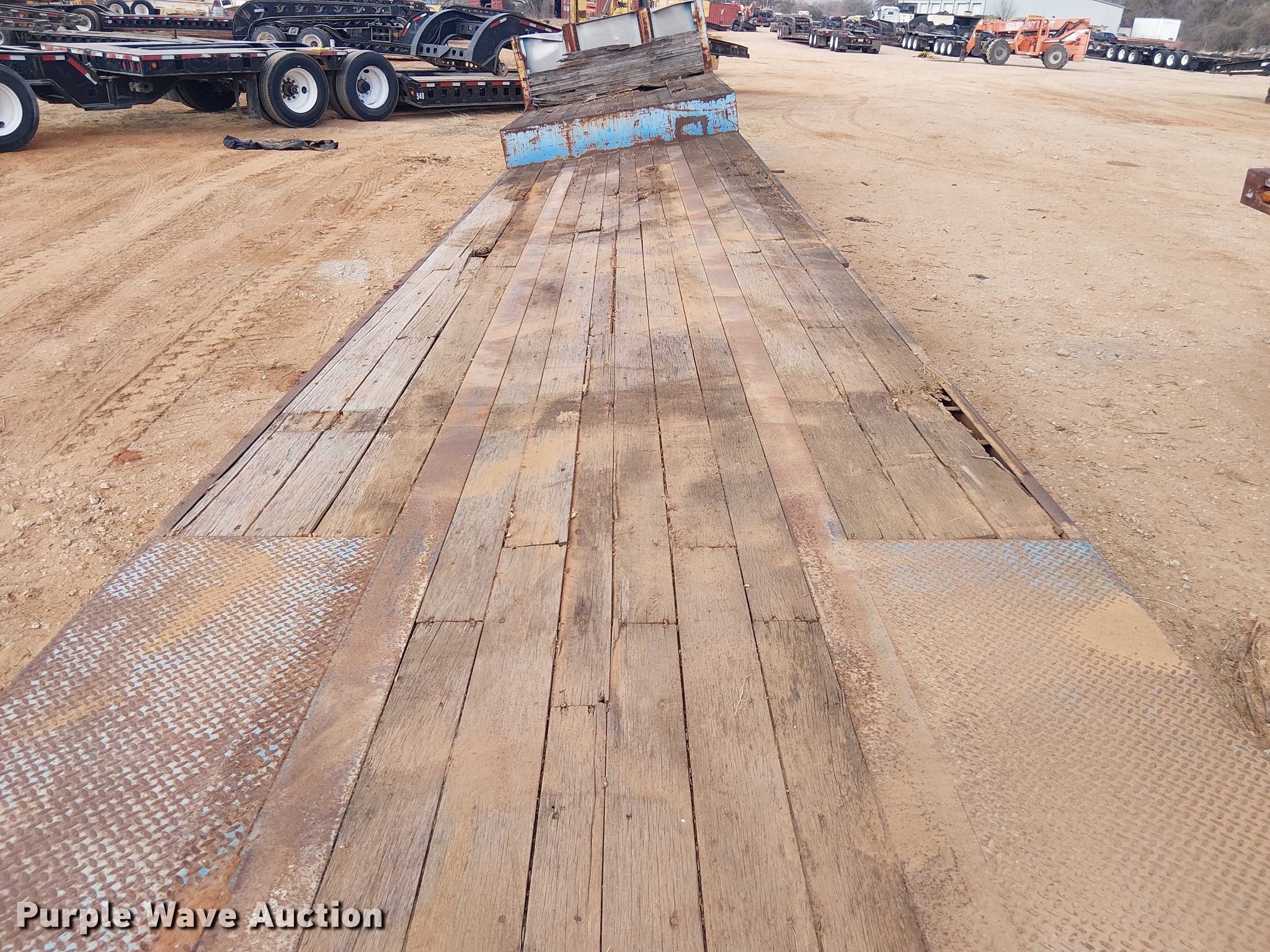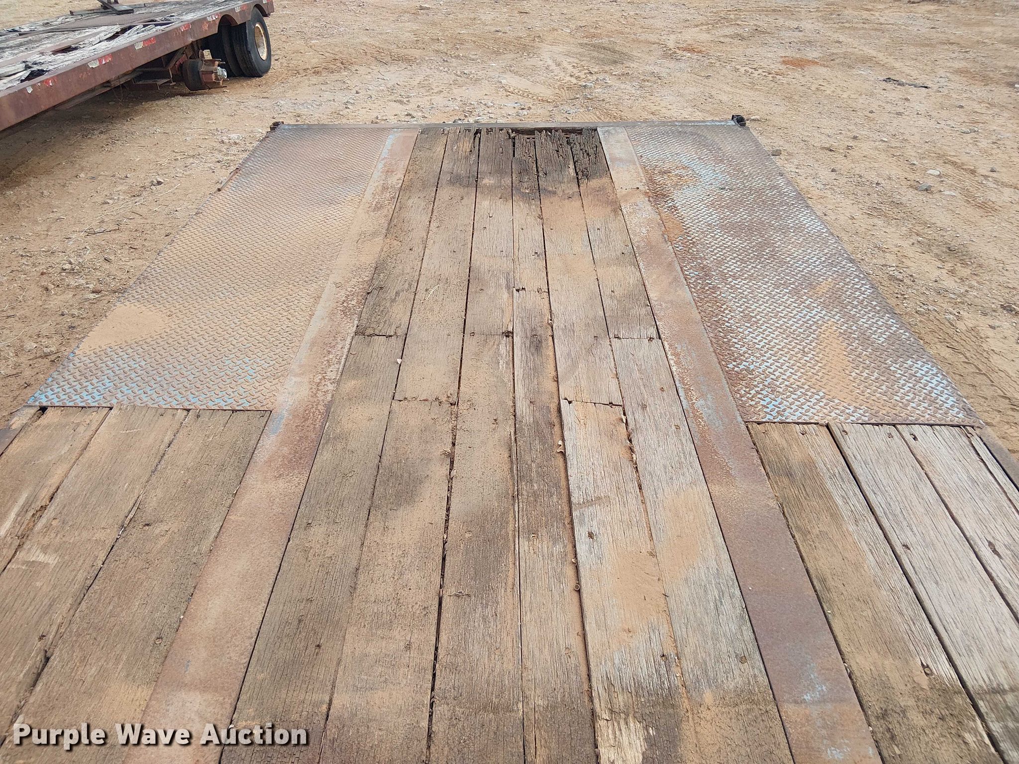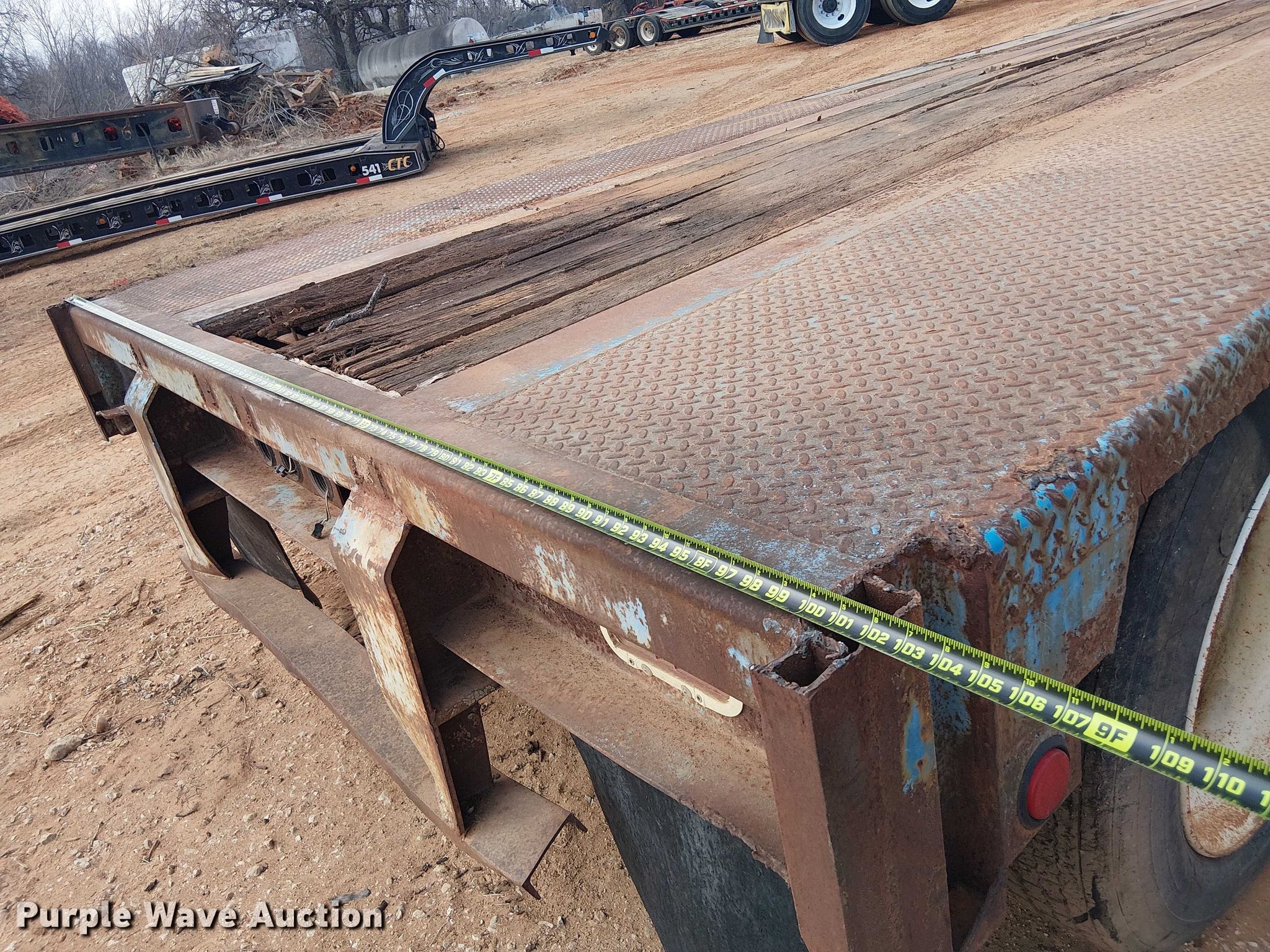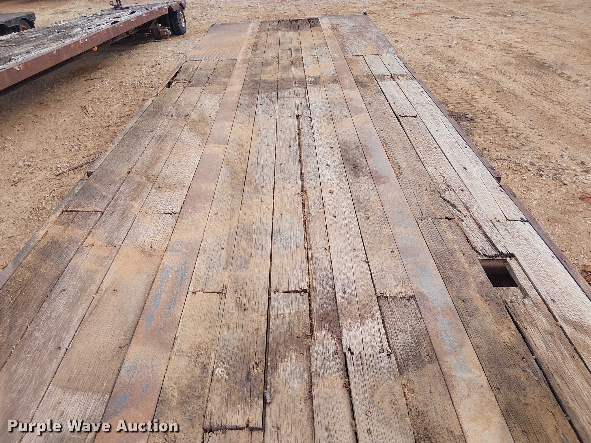 1985 Aztec drop deck trailer. VIN: 1AZBR4B32F1015473, Unit #: 725. Dimensions Overall Length: 48' 4", Width: 102", Deck Length: 48', Top deck length: 9' 8", Rear deck length: 37' 5", Deck height: 4'. Features Deck type: Steel, Wood. Chassis Hitch: Gooseneck, Landing gear: Dual, Suspension: Air, Brakes: Air, Axles: Tandem, GVWR: 7,000 lbs, GAWR: 40,000 lbs. Tires Steel wheels, Size: 255/70R22.5. Notes Landing gear missing. Transfer of ownership documentation will be a bill of sale. CTC Transportation - Open inspection February 24th. 3540 Euless South Main Street. Euless, TX 76040
