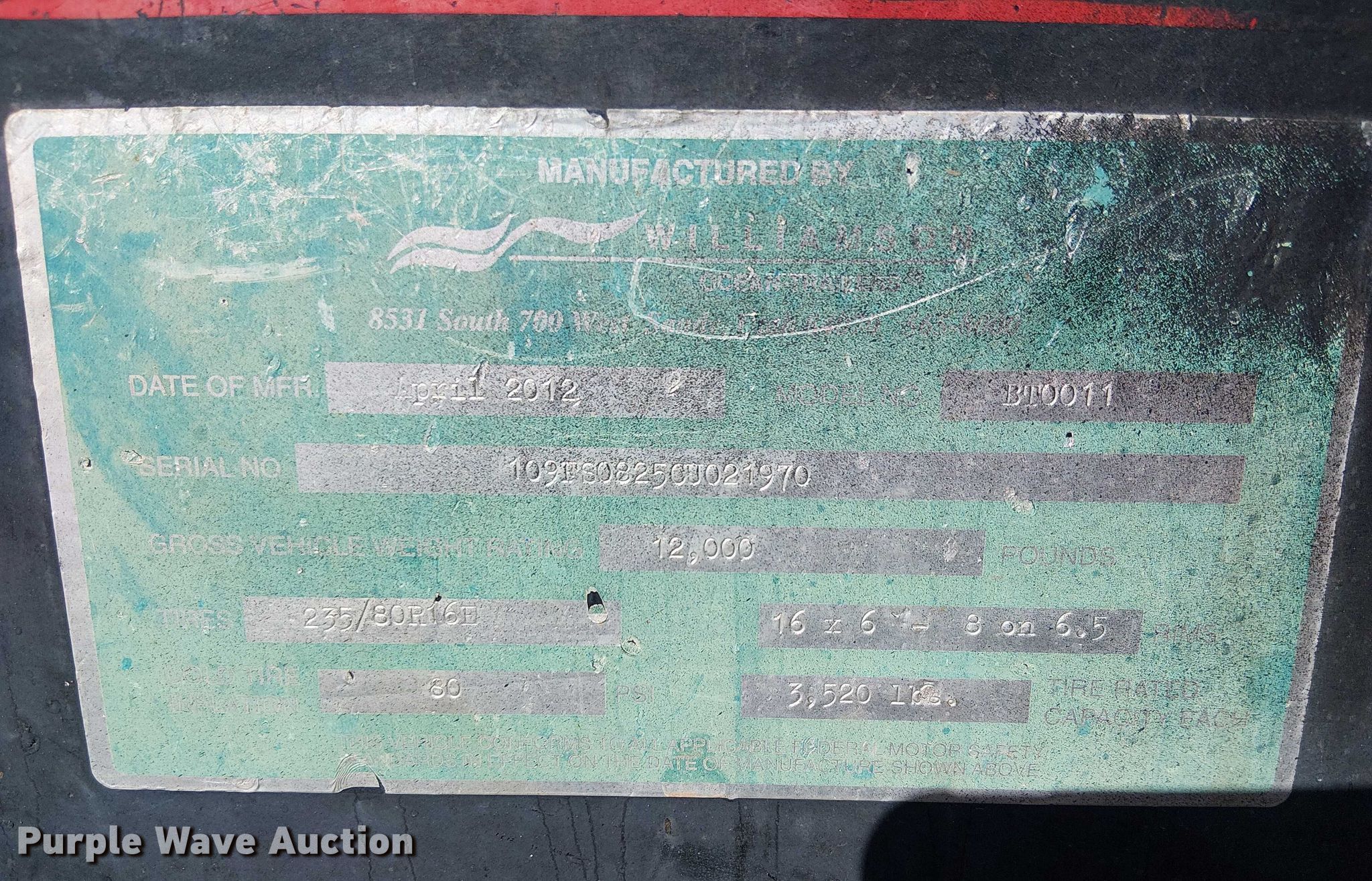 2012 Asphalt Zipper 360 cold planer. Hours: 1,051 on meter. Engine John Deere 6068HF285, Serial: PE6068L246255, Displacement: 6.8L, Cylinders: 6, Fuel type: Diesel. Features Cutting head Width: 34", Diameter: 32", Teeth, Carbide, Water/emulsion application system, Remote Control. 2012 Williamson Ocean Trailers equipment trailer Serial: 109FS0825CU021970, GVWR: 12,000 lbs, Brakes: Electric, Landing gear: Single, Ball hitch: 2 5/16", Suspension: Spring, Axles: Tandem, Length: 12', Width: 96", Tires: 235/85R16. Trailer: Arizona title. Title distribution may be delayed up to 30 days from verification of funds. Apache Junction, AZ 85120