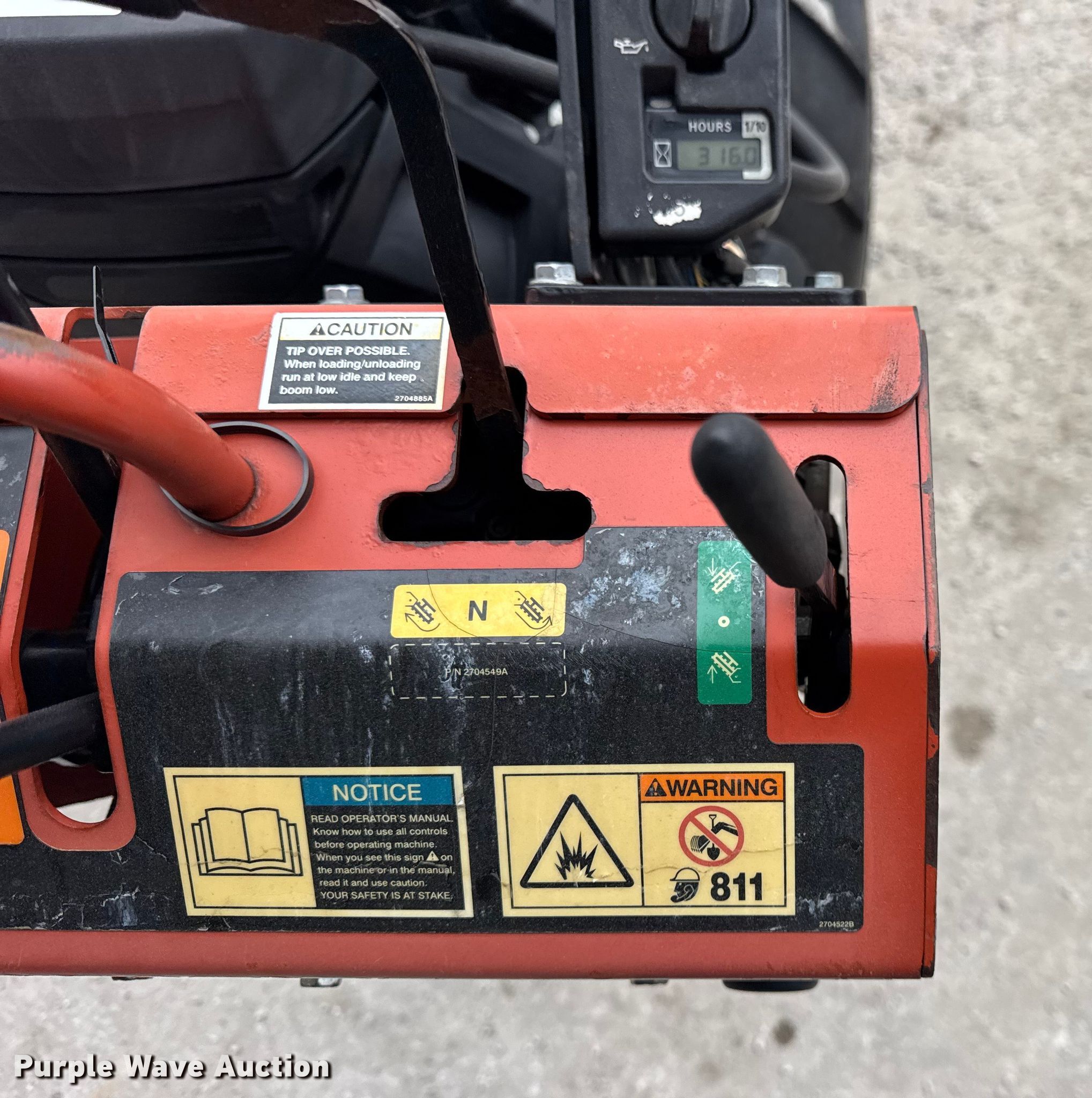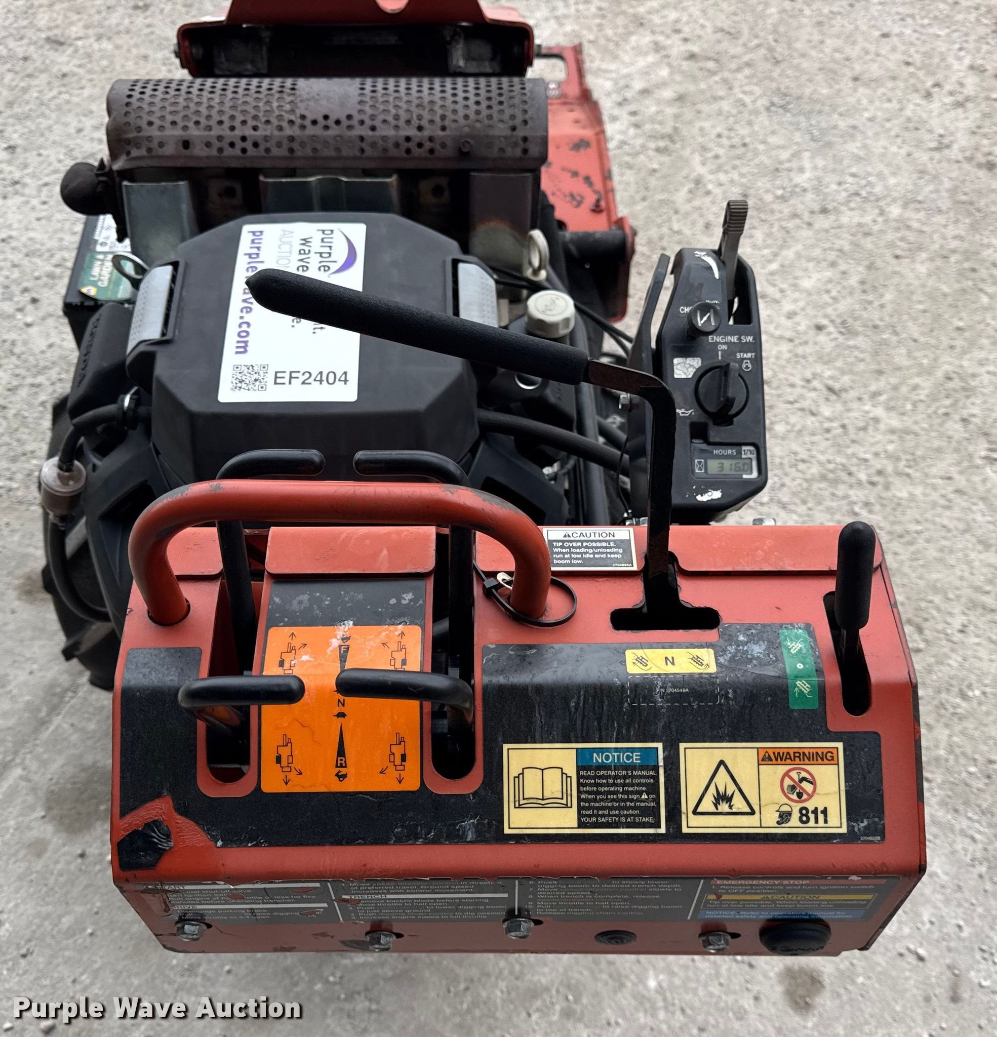 Purple Wave is selling a used Trencher or Rock Saw in Illinois. This item is a 2013 Ditch Witch RT24 trencher with the following: Hours: 316 on meter, Serial: CMWRT24XLD000879