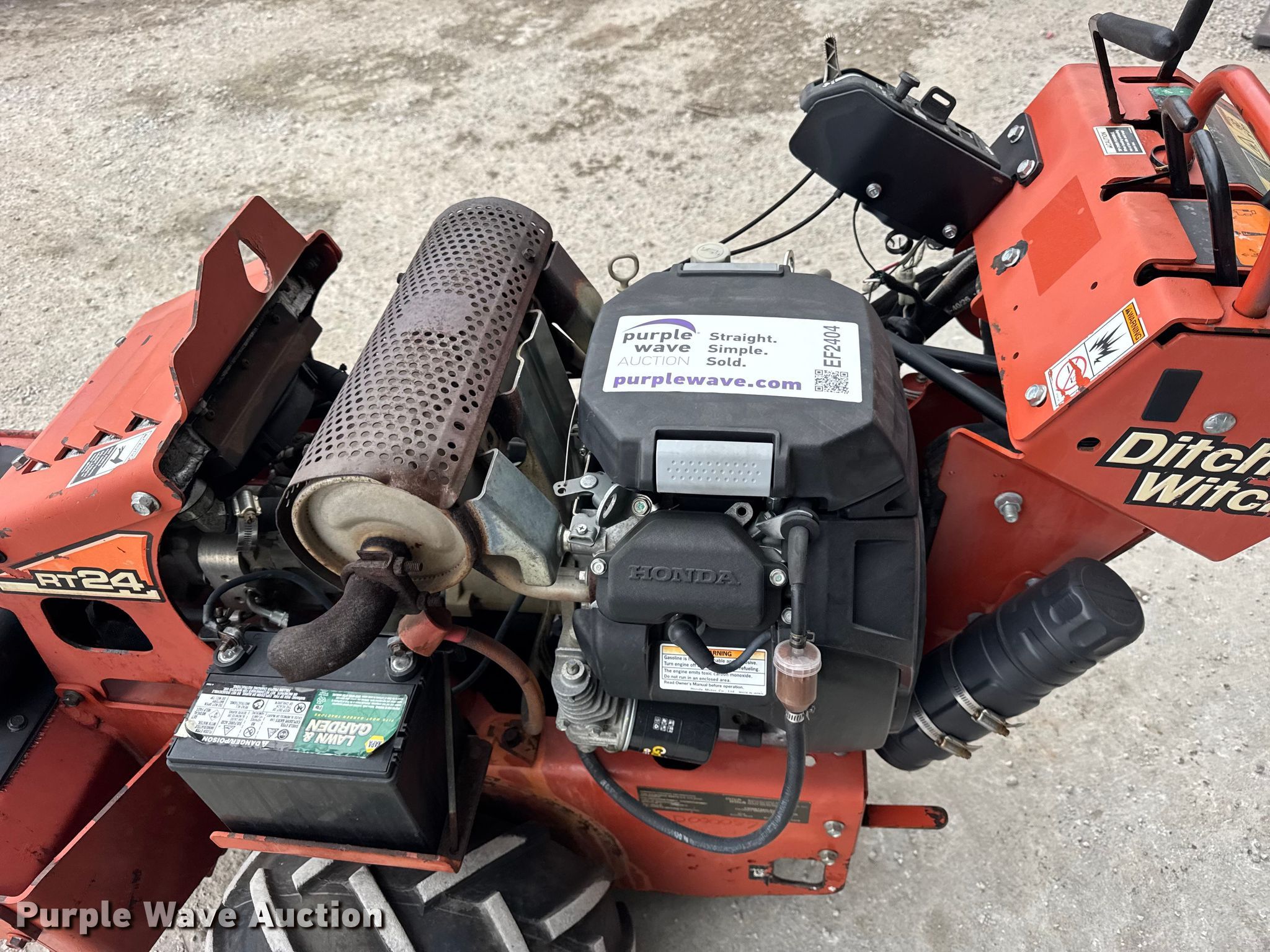 2013 Ditch Witch RT24 trencher. Hours: 316 on meter, Serial: CMWRT24XLD000879. Engine Honda, Cylinders: 2, Fuel type: Gas. Transmission Hydrostatic. Features Trencher Estimated dig depth: 48", Cutting width: 4", Teeth: Rock. Tires Front: 13x6.00-6, Rear: 18x9.50-8. EquipmentCity LLC. Clinton, IL 61727