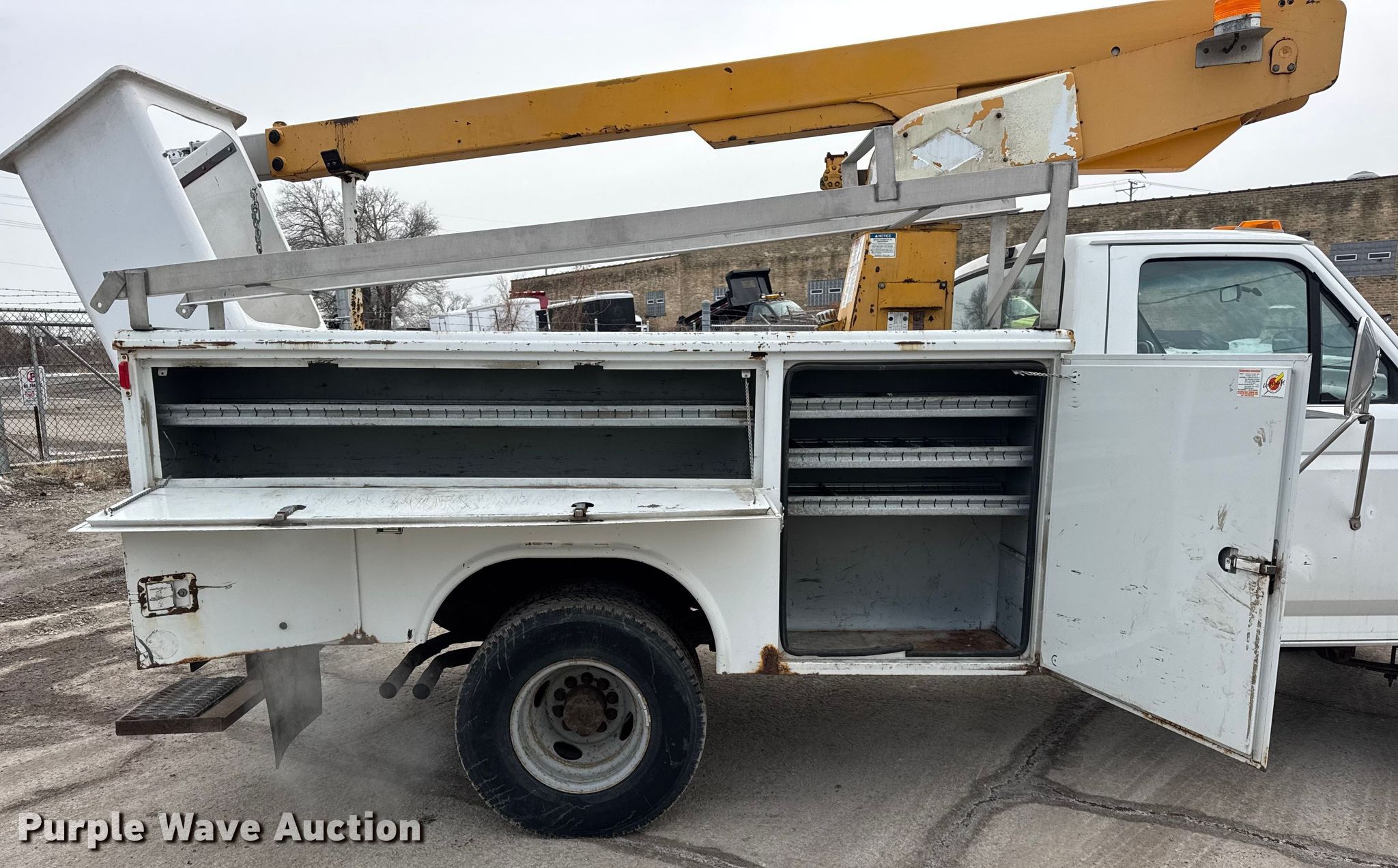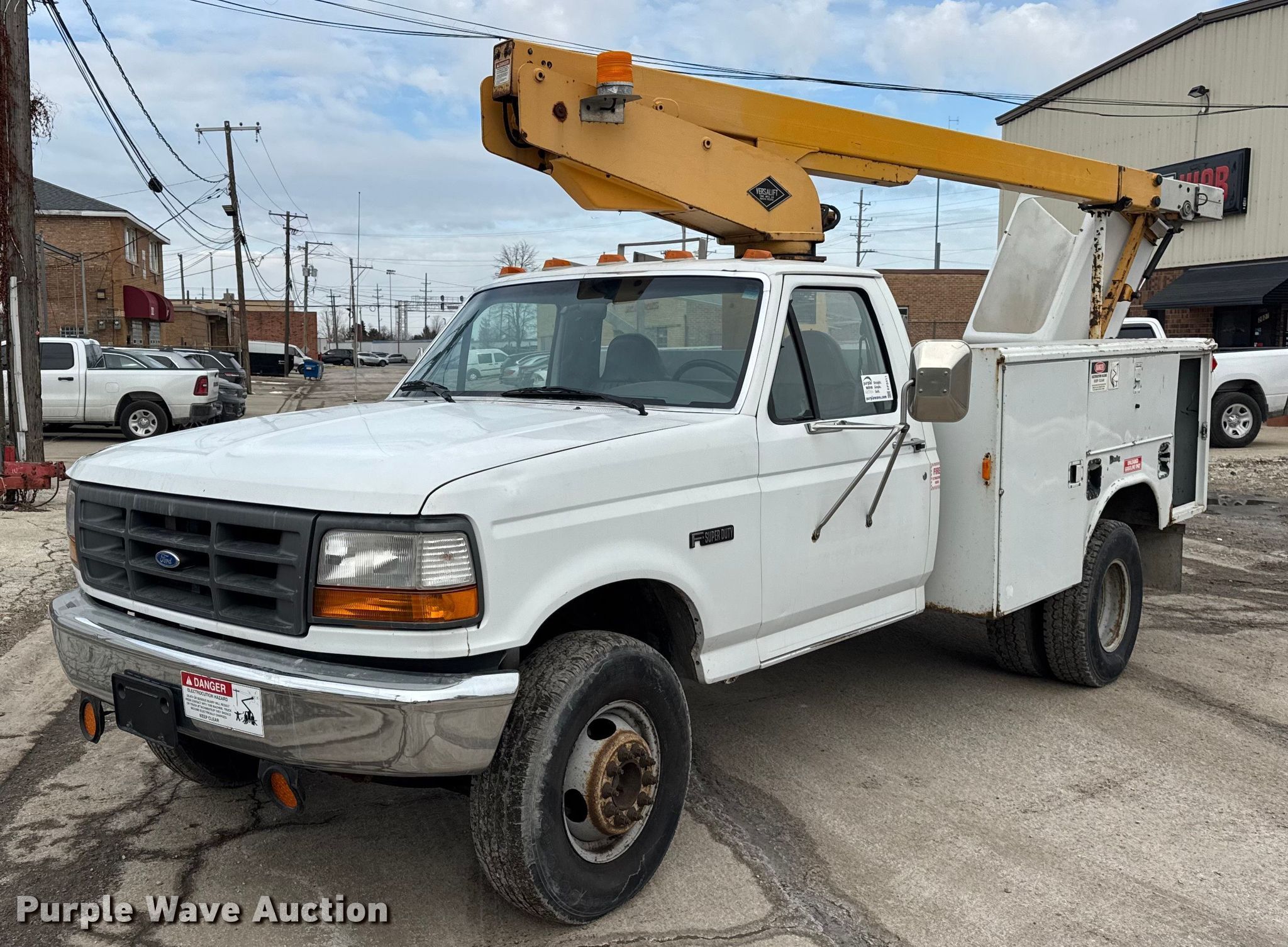 Purple Wave is selling a used Bucket Truck in Illinois. This item is a 1997 Ford F450 Super Duty bucket truck with the following: Miles: 67,965 on odometer, Hours: 2,737 on meter, VIN: 3FELF47G8VMA60416
