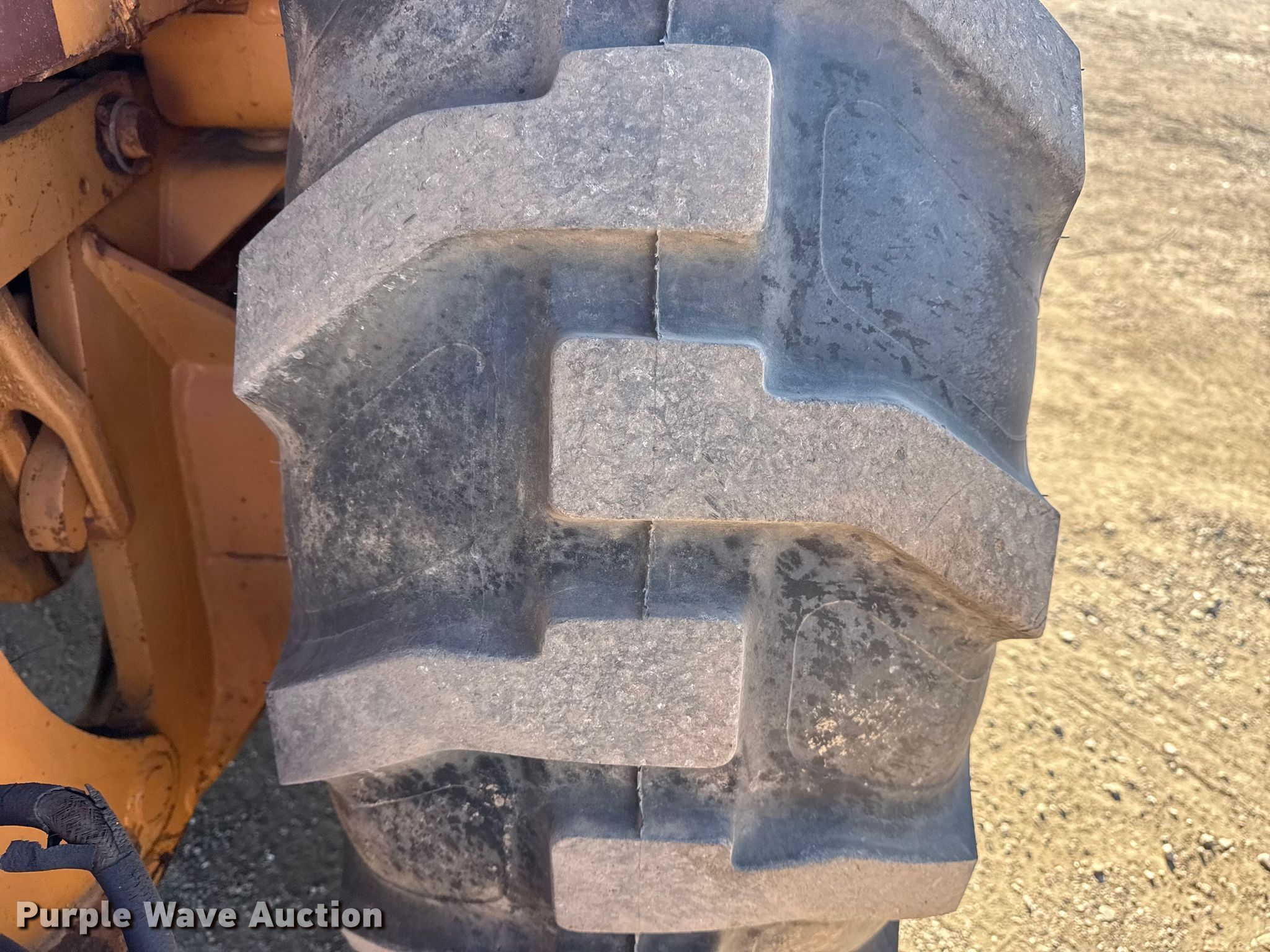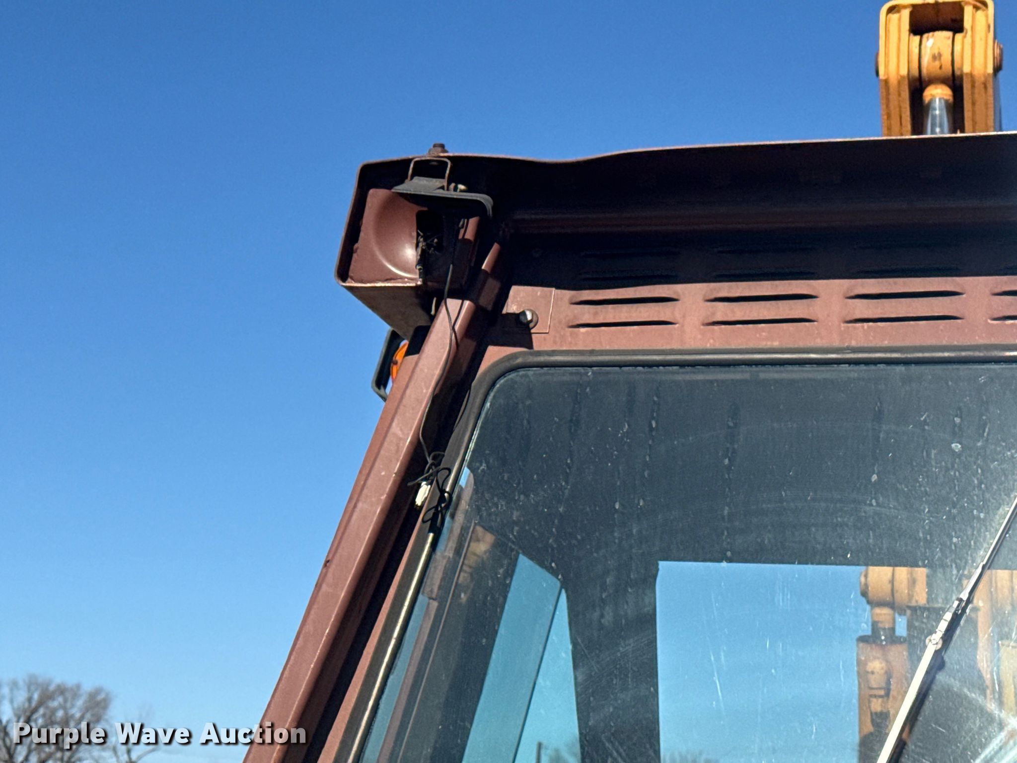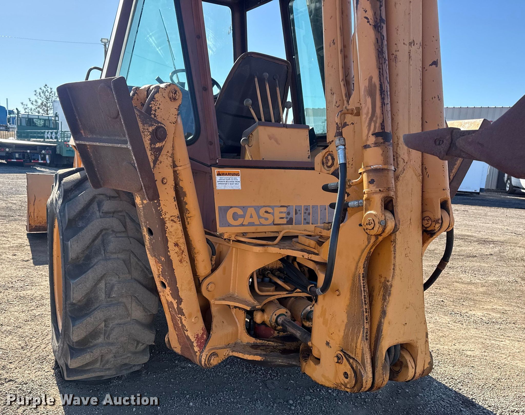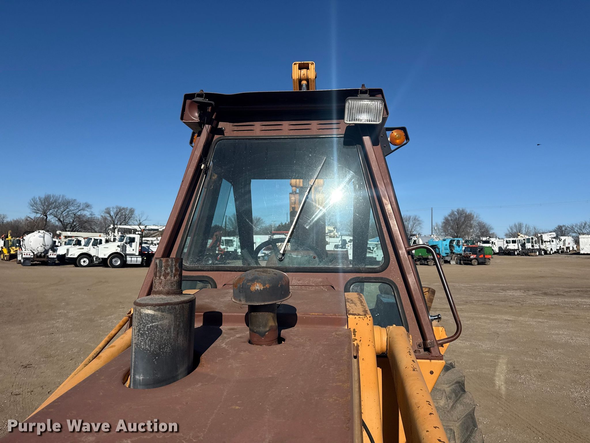 1985 Case 580E backhoe. Hours: 4,651 on meter, Serial: 17028510. Engine Case 4-390, Serial: 4413375, Cylinders: 4, Fuel type: Diesel. Transmission Shuttle shift, 4F - 4R. Chassis Differential lock. Operators station Enclosed cab, Backhoe controls: Wobble stick / two stick. Features Loader Width: 82", Cutting edge: Bolt-on, Backhoe Bucket Hensley, Width: 35", Teeth: 6.. Tires Front: 11L-16SL, Rear: 17.5L-24. Notes Back glass missing, Cutting edge missing. Collinsville, OK 74021