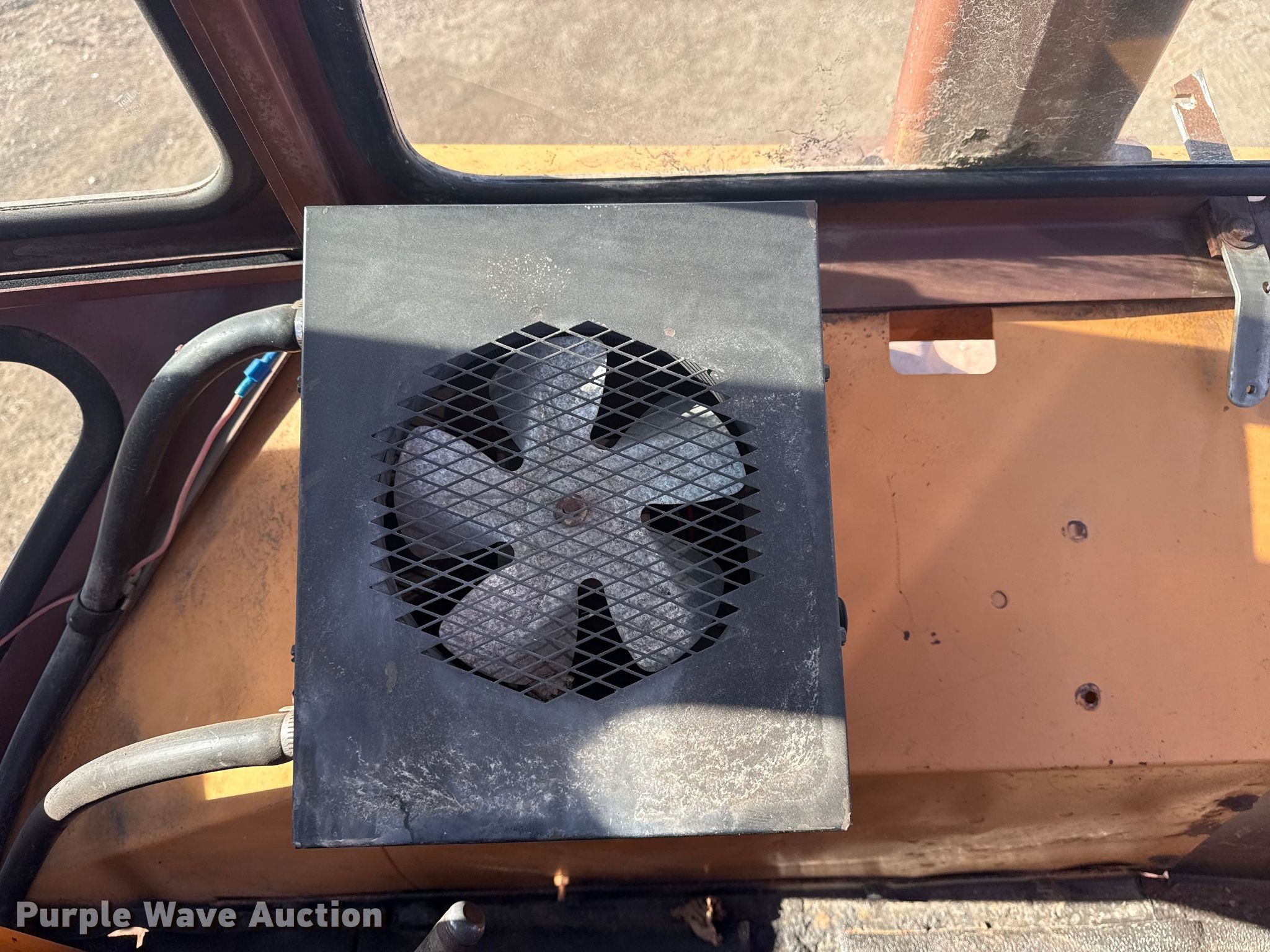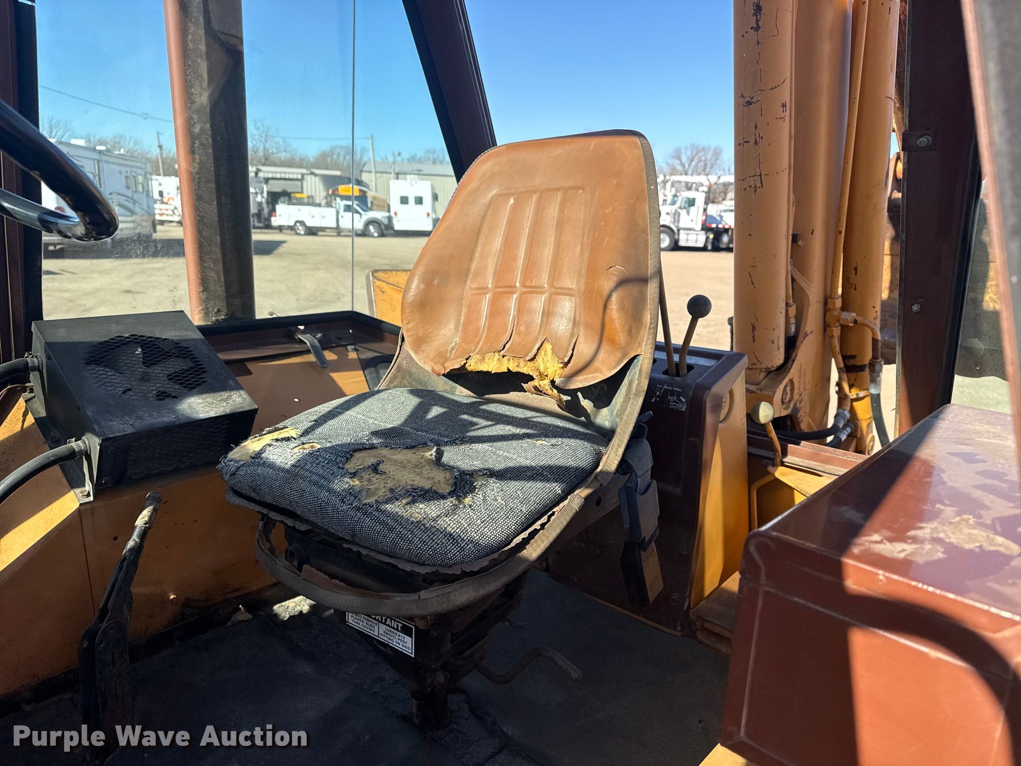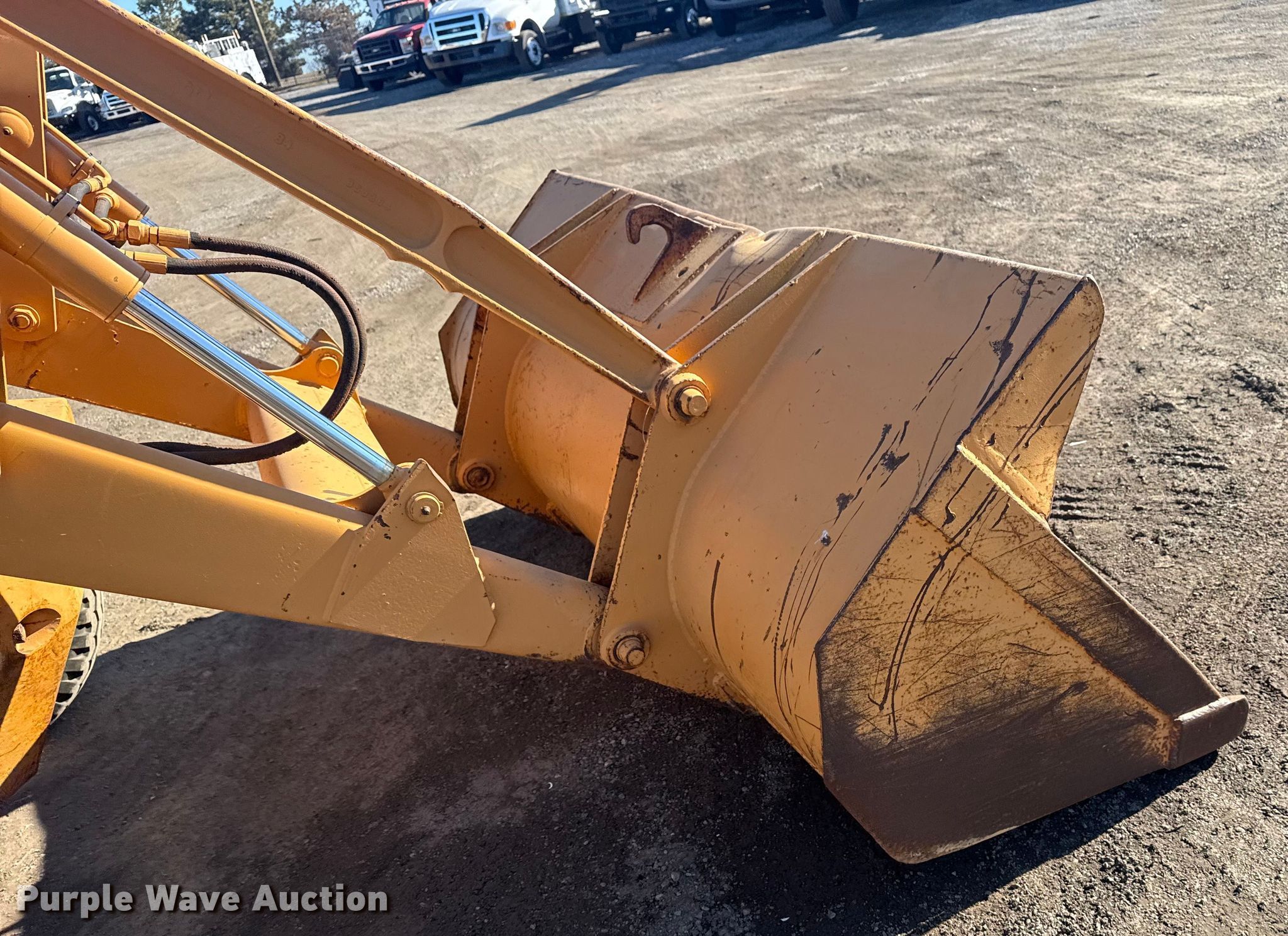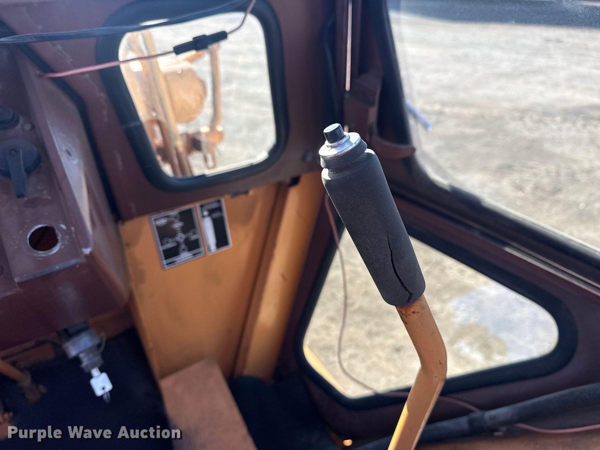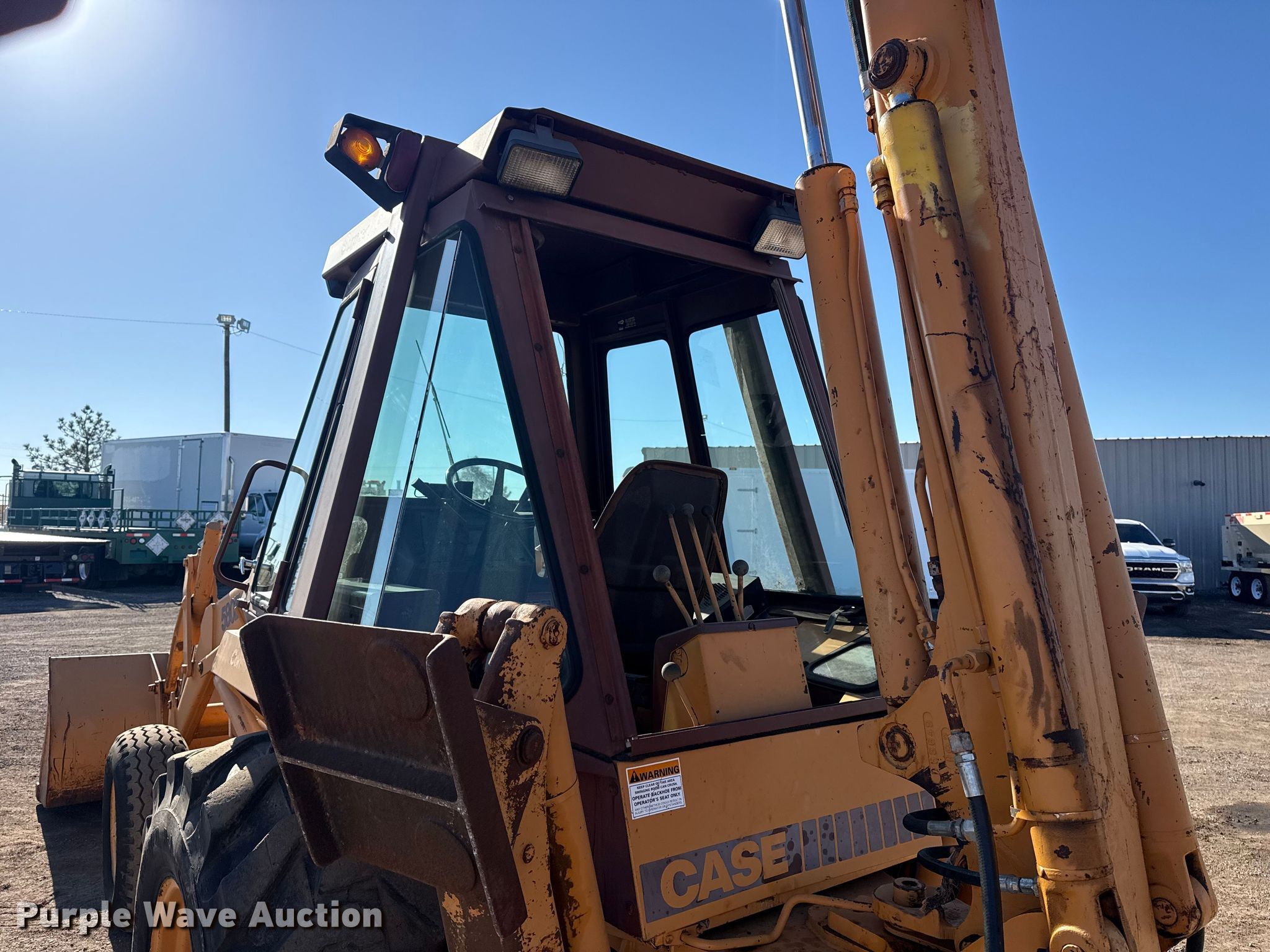 1985 Case 580E backhoe. Hours: 4,651 on meter, Serial: 17028510. Engine Case 4-390, Serial: 4413375, Cylinders: 4, Fuel type: Diesel. Transmission Shuttle shift, 4F - 4R. Chassis Differential lock. Operators station Enclosed cab, Backhoe controls: Wobble stick / two stick. Features Loader Width: 82", Cutting edge: Bolt-on, Backhoe Bucket Hensley, Width: 35", Teeth: 6.. Tires Front: 11L-16SL, Rear: 17.5L-24. Notes Back glass missing, Cutting edge missing. Collinsville, OK 74021