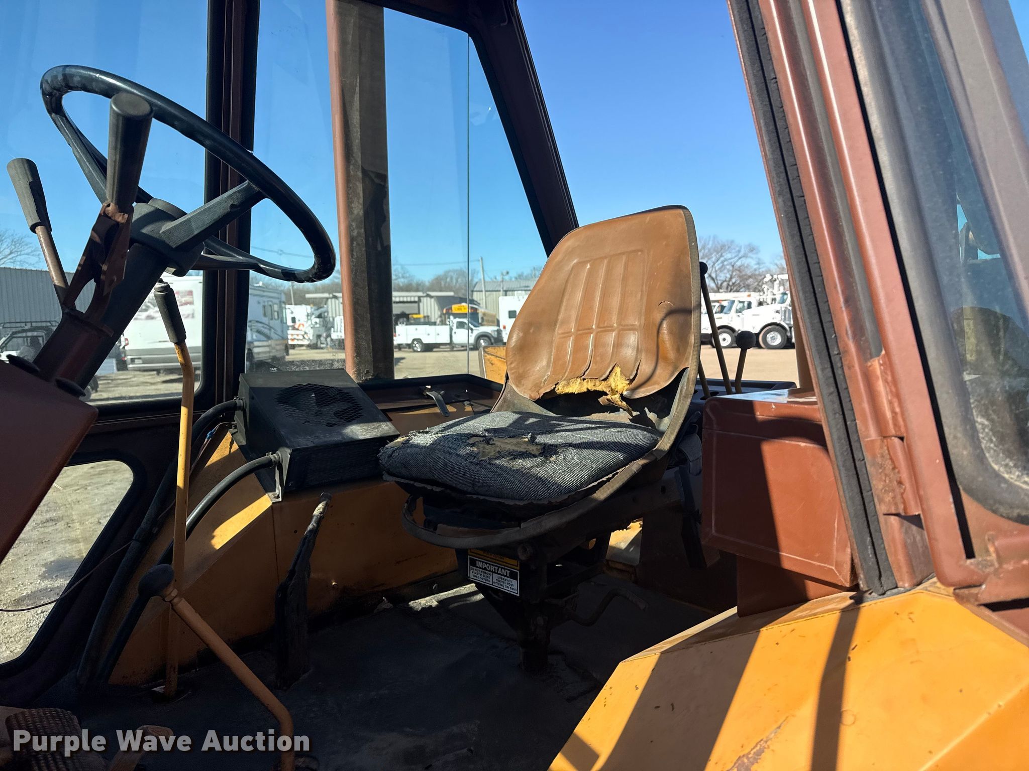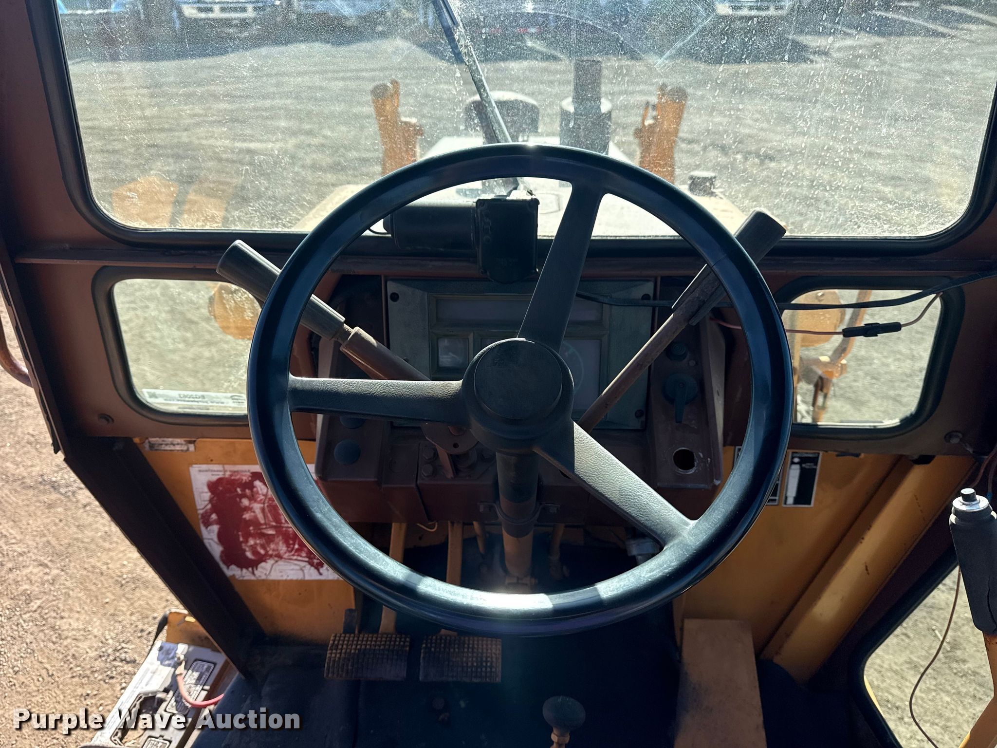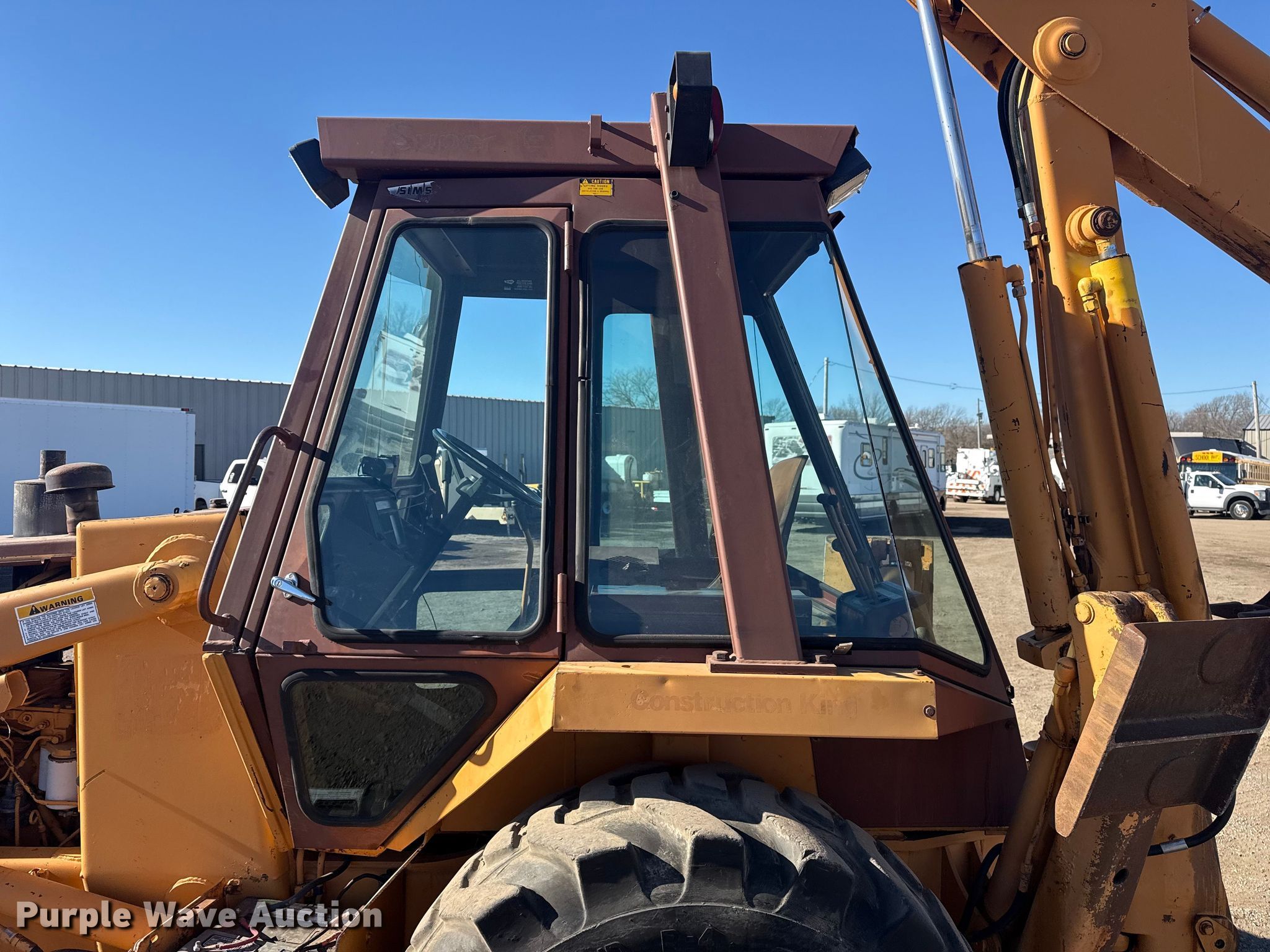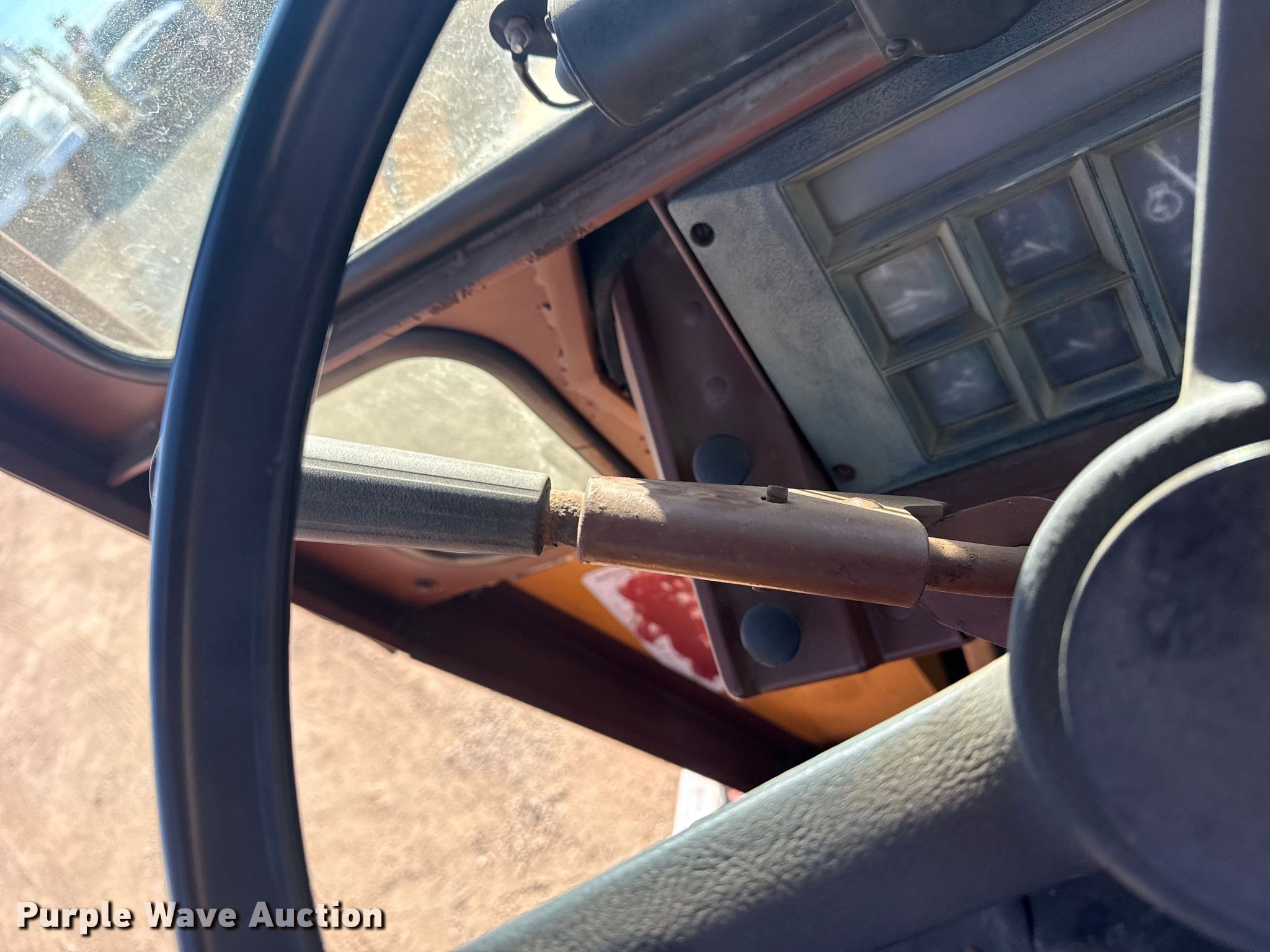 1985 Case 580E backhoe. Hours: 4,651 on meter, Serial: 17028510. Engine Case 4-390, Serial: 4413375, Cylinders: 4, Fuel type: Diesel. Transmission Shuttle shift, 4F - 4R. Chassis Differential lock. Operators station Enclosed cab, Backhoe controls: Wobble stick / two stick. Features Loader Width: 82", Cutting edge: Bolt-on, Backhoe Bucket Hensley, Width: 35", Teeth: 6.. Tires Front: 11L-16SL, Rear: 17.5L-24. Notes Back glass missing, Cutting edge missing. Collinsville, OK 74021