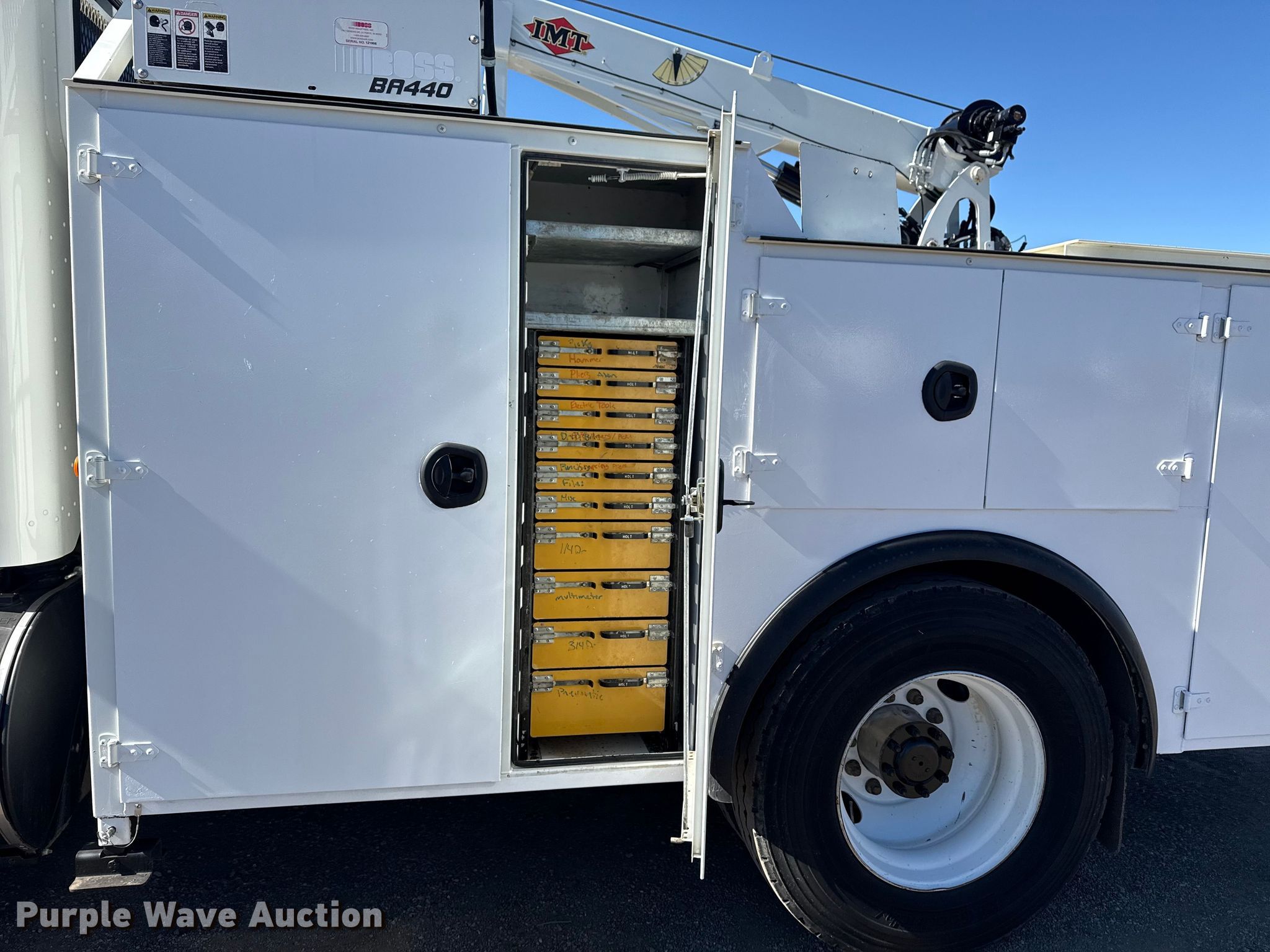 2019 Peterbilt 337 utility / service truck. Miles: 106,282 on odometer, Hours: 6,547 on meter, VIN: 2NP2HJ7X4KM611478. Engine Paccar PX-9, Serial: 74334075, Displacement: 8.9L, Cylinders: 6, Fuel type: Diesel. Transmission Allison 3000 RDS-P, Automatic. Chassis Axles: Single, Suspension: Spring, Brakes: Air, PTO, GVWR: 33,000 lbs. Interior AC, Heat, Heated mirrors, Power windows, Power locks, Cruise control. Features Bed Utility bed, Length: 11', Width: 93" Boss BA440, Oil/lube system Hose reels, Reservoirs Hydraulic fluid, Motor oil, Fuel tank Pump, Crane IMT 6925, Maximum boom length: 25' Maximum lift capacity: 10,500 lbs.. Tires Size: 11R22.5. Notes Dash warning indicator: ABS, Traction control. Oklahoma title. Seller is an Oklahoma licensed motor vehicle dealer. Buyers may be required to provide identification to the licensed dealer to comply with state laws. Title will be assigned and distributed by the dealer. Please contact the seller for distribution questions. Title distribution may be delayed up to 30 days from verification of funds. Collinsville, OK 74021
