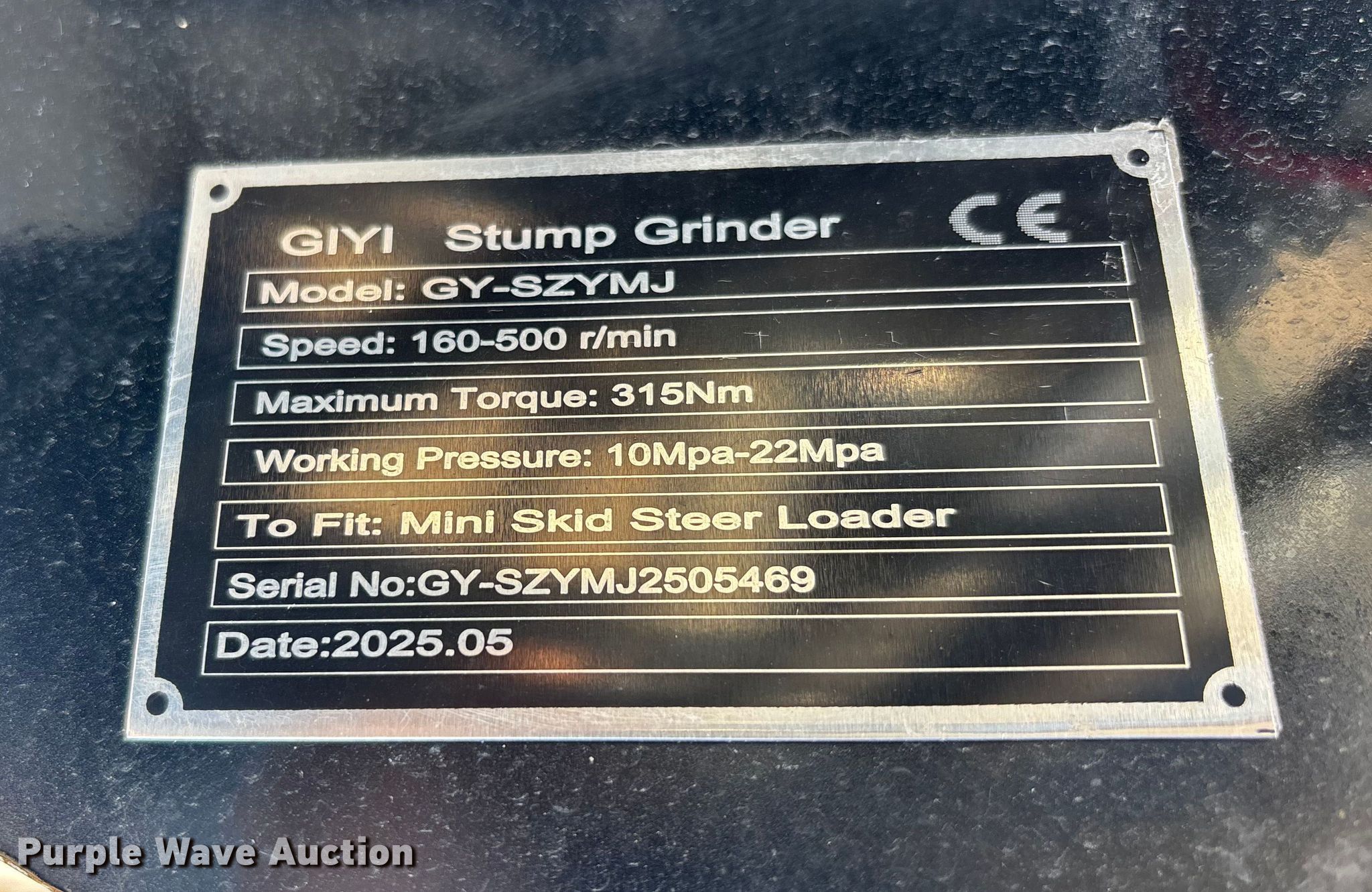 Purple Wave is selling a used Skid Steer Attach. in Missouri. This item is a 2025 GIYI GY-SZYMJ compact utility loader stump grinder with the following: Serial: GY-SZYMJ2505469, Cutting wheel, Width: 4", Diameter: 16"