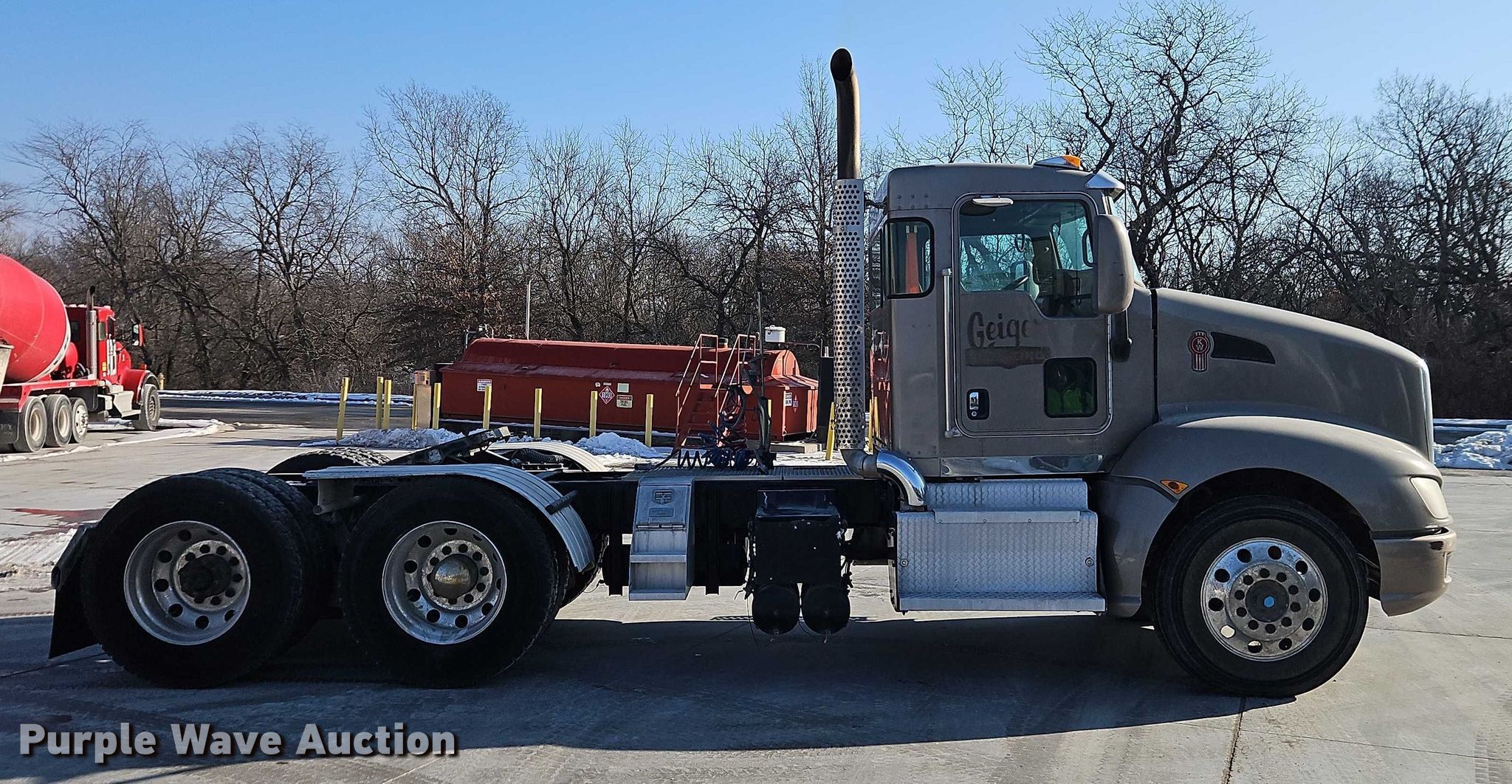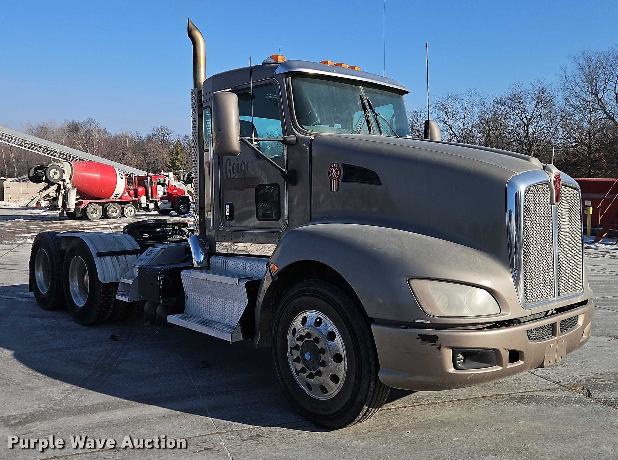 2013 Kenworth T660 semi truck. Miles: 457,493 on odometer, Hours: 18,601 on meter, VIN: 1XKADP9X5DJ364159, Unit #: 230. Engine Paccar MX, Serial: Y018098, Displacement: 12.9L, Cylinders: 6, Fuel type: Diesel, HP: 455, Engine brake. Transmission Eaton Fuller, Manual, Speed: 18. Chassis Axles: Tandem, Differential lock: Inter-axle, Suspension: Air Dump valves, Brakes: Air, PTO, GVWR: 53,200 lbs FAWR: 13,200 lbs, IAWR: 20,000 lbs, RAWR: 20,000 lbs. Interior AC, Heat, Heated mirrors, Power locks, Cruise control, Air ride cab. Features Deck plate: Aluminum, Fifth wheel type: Air operated, Sliding, Fuel tank: Single. Tires Size: 11R24.5. Kansas title. Title distribution may be delayed up to 14 days from verification of funds. Geiger Ready-Mix. Lee's Summit, MO 64082