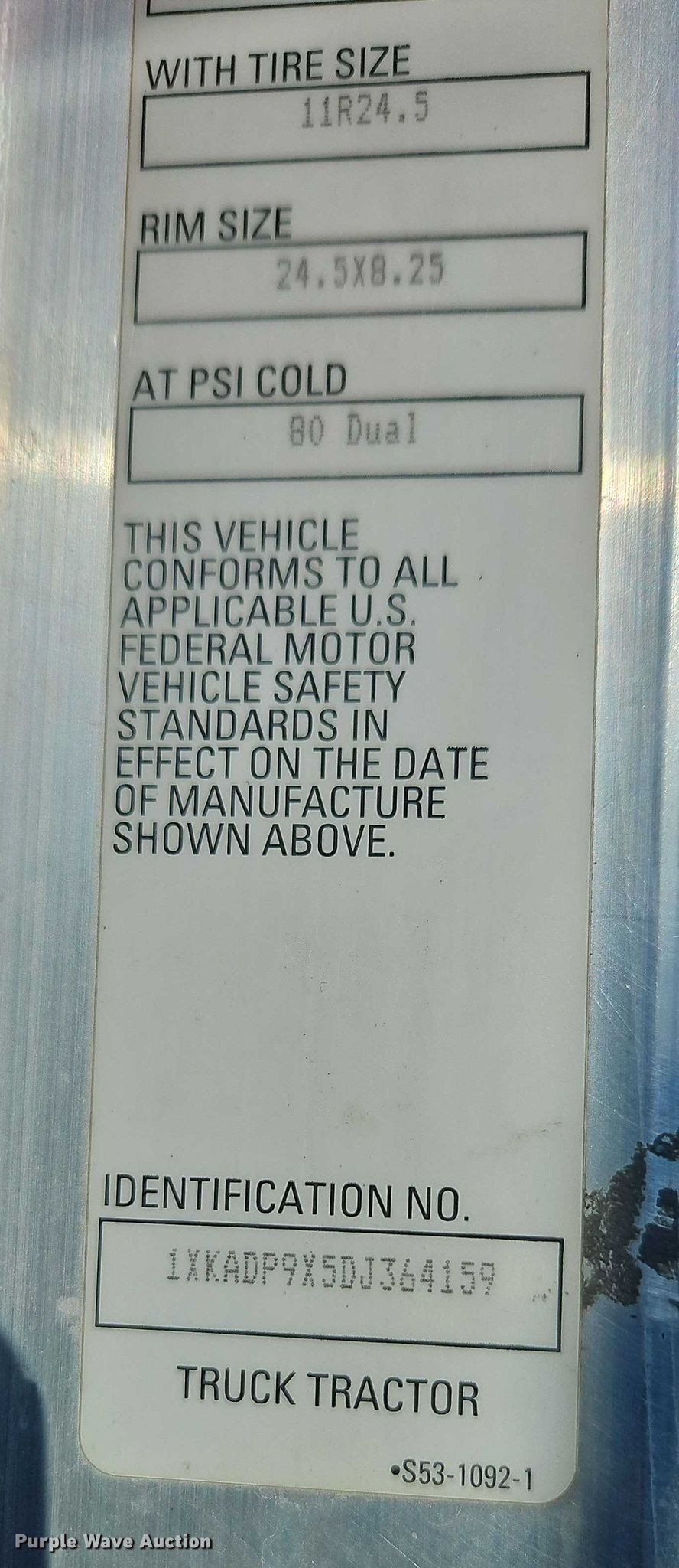 - VIN: 1XKADP9X5DJ364159