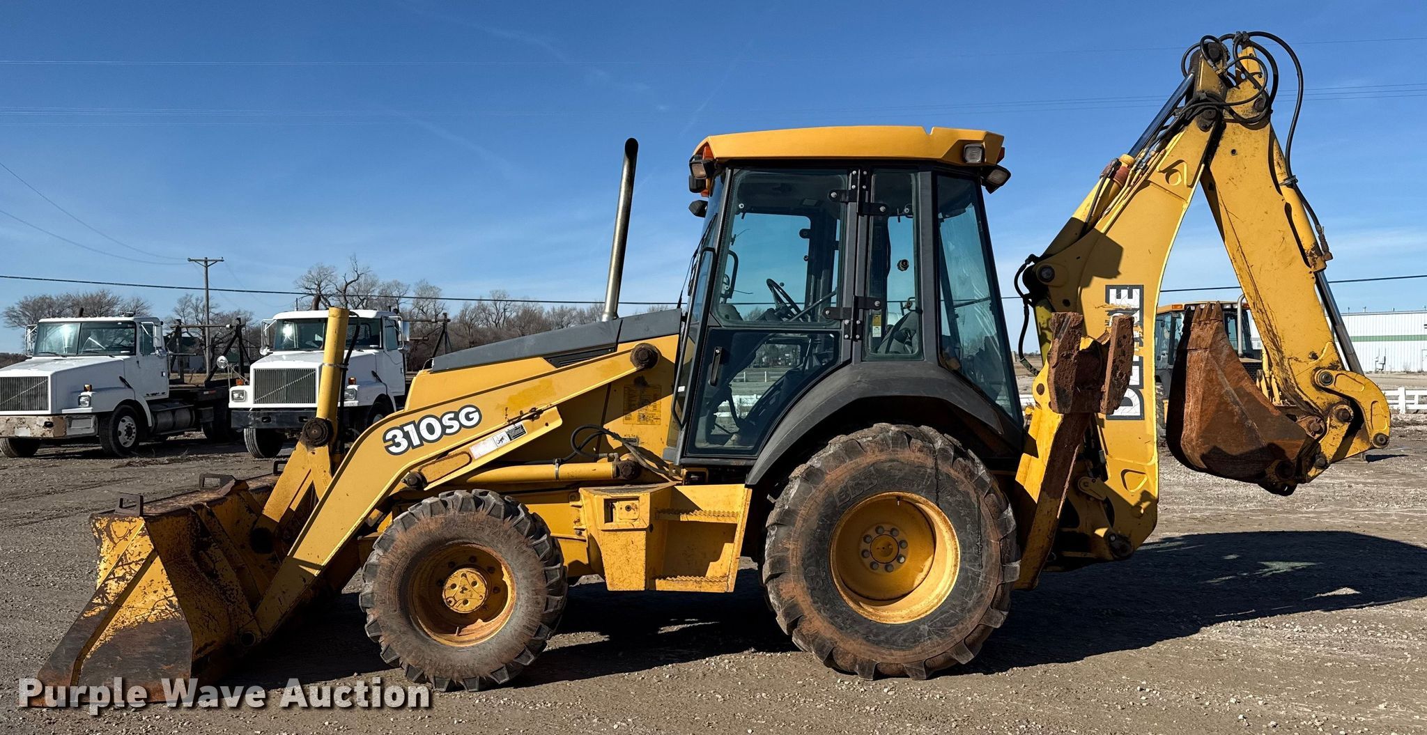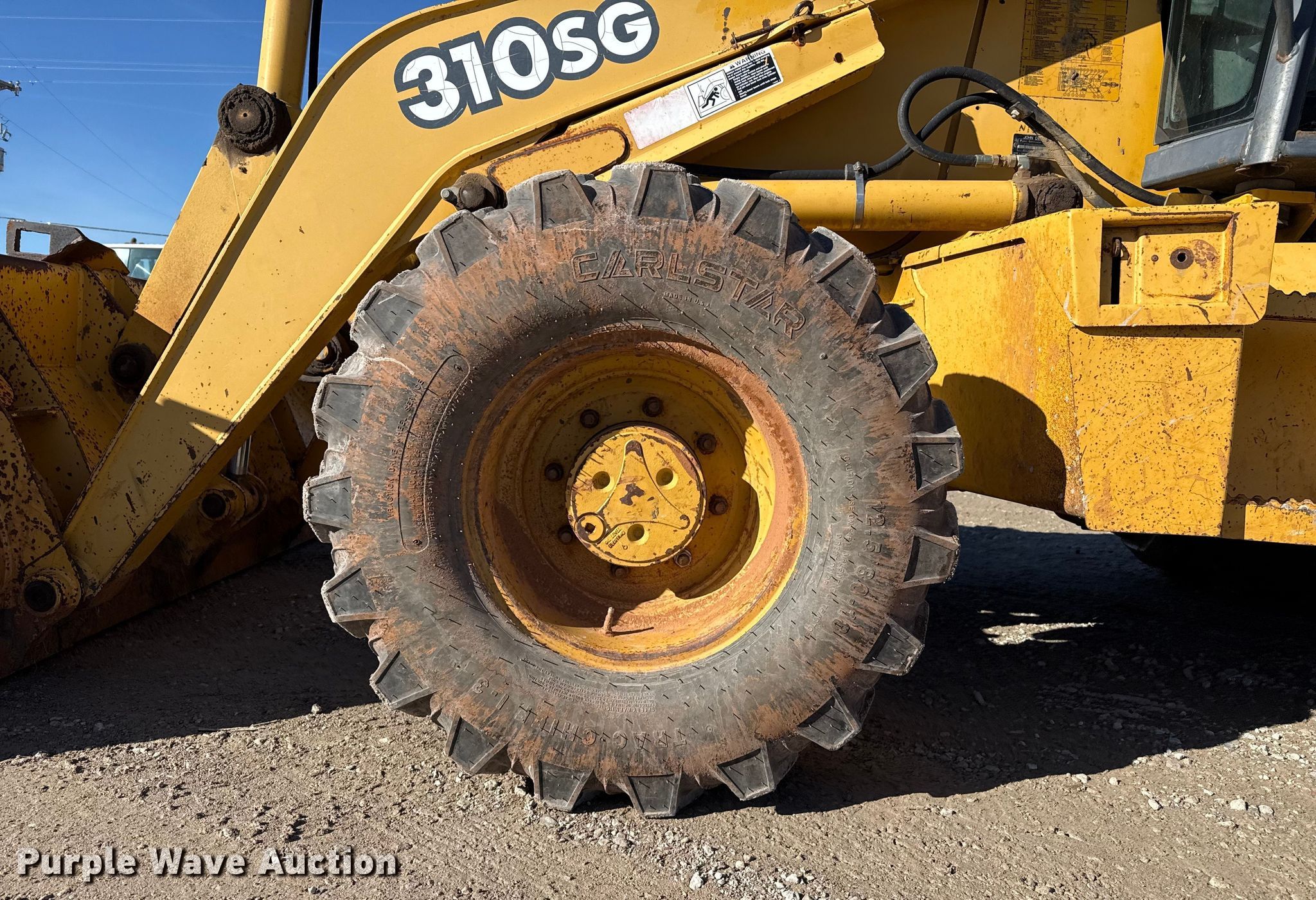 2004 John Deere 310SG backhoe. Hours: 8,966 on meter, Serial: T0310SG932599. Engine John Deere 4045TT089, Displacement: 4.5L, Cylinders: 4, Fuel type: Diesel. Transmission Powershift, 4F - 4R. Chassis Four wheel drive, Differential lock. Operators station Enclosed cab, AC, Heat. Features Loader Bucket Width: 92", Backhoe Extendable stick, Quick coupler: Manual, Bucket Width: 18", Teeth: 4.. Tires Front: 12.5/80-18, Rear: 19.5L-24. Amerine Utilities Construction, Inc.. Great Bend, KS 67530