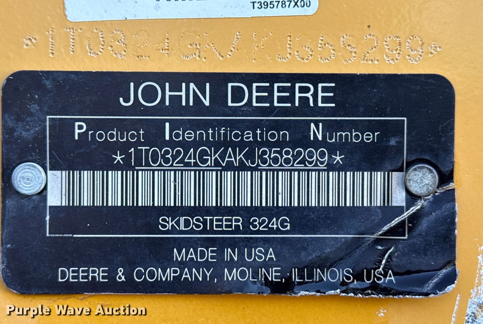 Purple Wave is selling a used Skid Steer Loader in Kansas. This item is a 2019 John Deere 324G skid steer loader with the following: Hours: 4,645 on meter, Serial: 1T0324GKAKJ358299