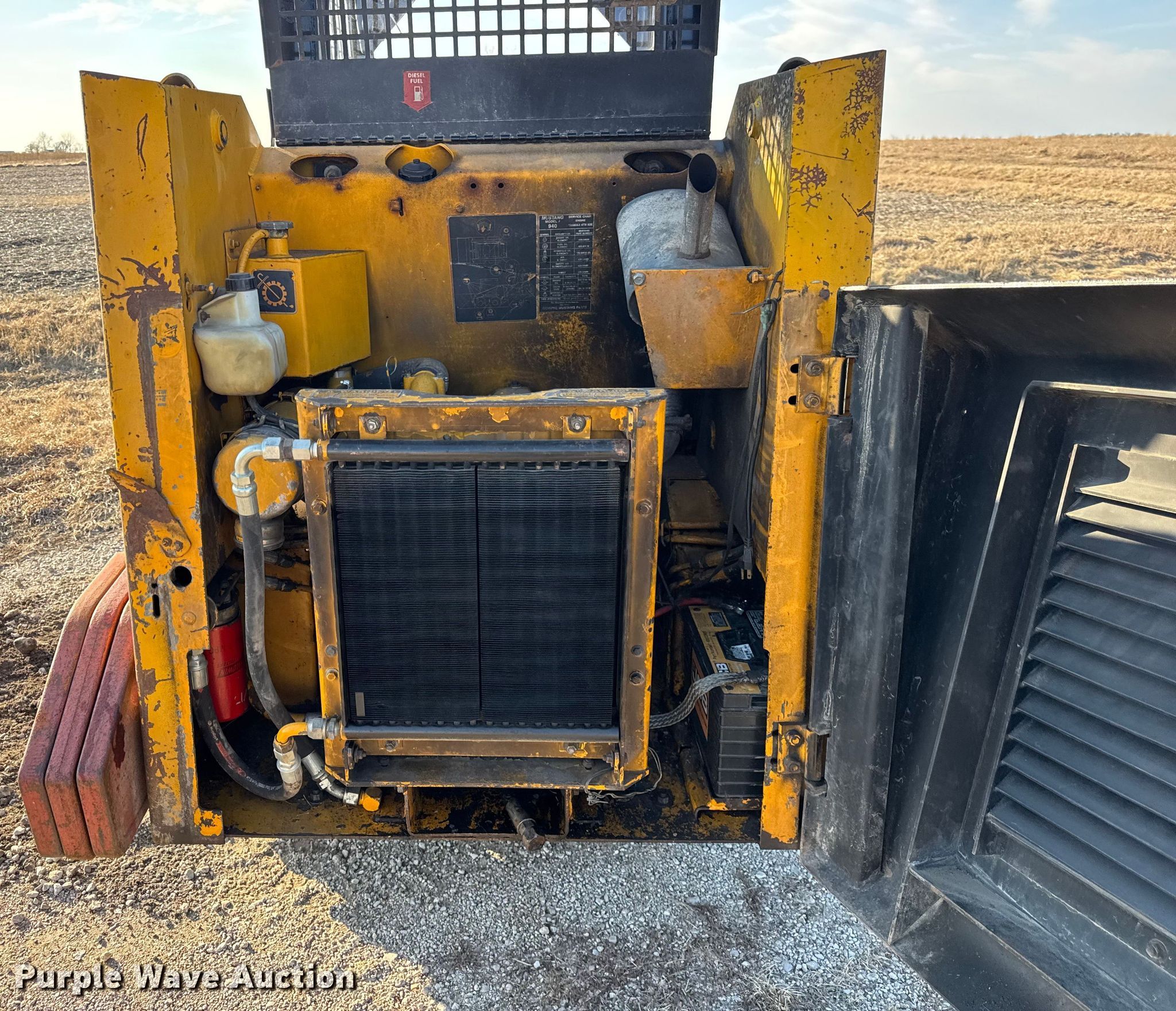 Purple Wave is selling a used Skid Steer Loader in Illinois. This item is a Mustang 940 skid steer loader with the following: Hours: 1,205 on meter, Serial: 120-32824