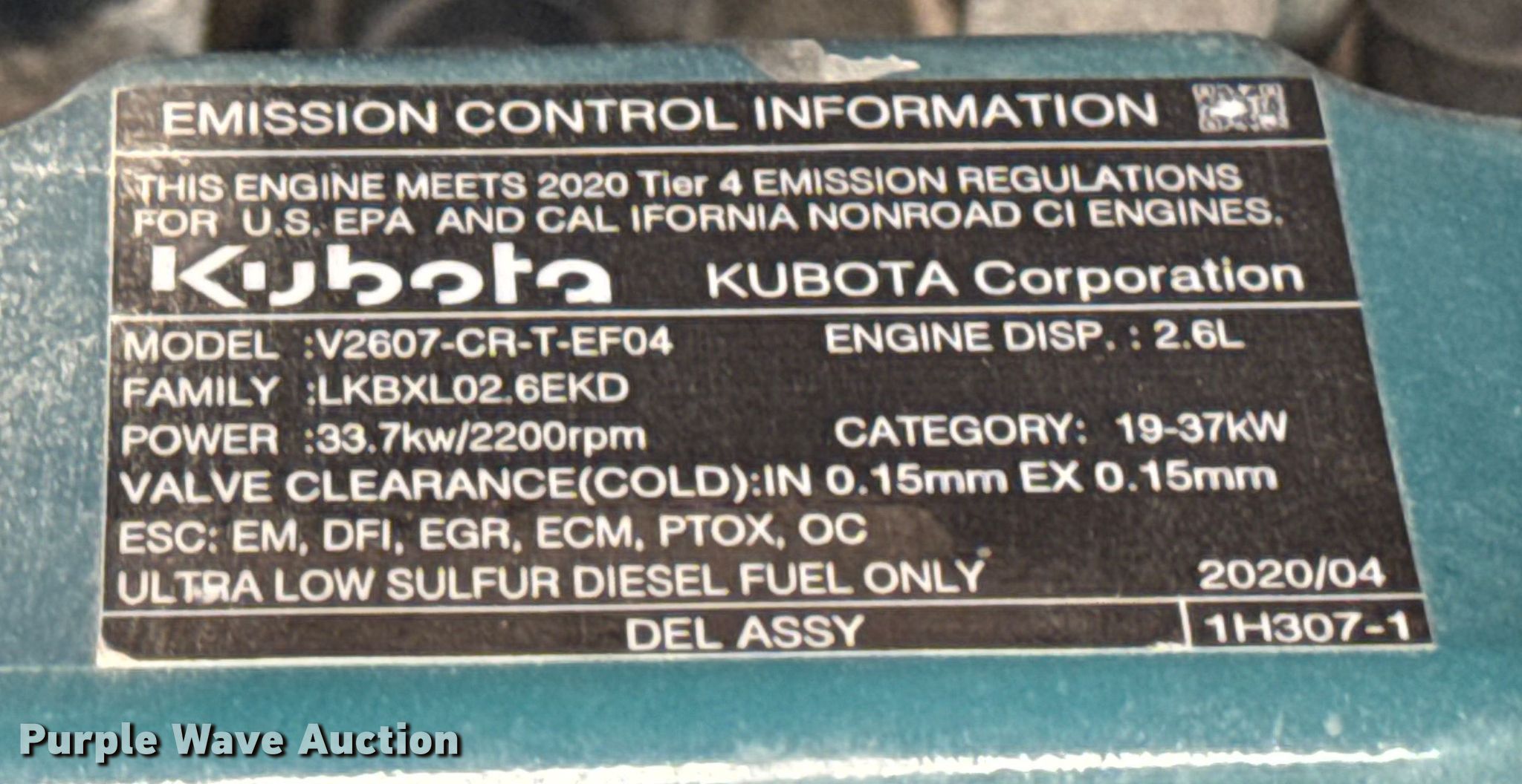 Kubota KX165-5 mini excavator. Hours: 1,067 on meter, Serial: 60309. Engine Kubota V2607, Serial: BJ0803, Cylinders: 4, Fuel type: Diesel. Transmission Hydrostatic, Two speed travel. Operators station Enclosed cab, AC, Heat. Features Auxiliary hydraulics, Backfill blade Width: 77", Boom Standard, Stick Stick length: 72", Thumb: Hydraulic, Bucket Width: 30", Teeth: 5. Tracks Width: 16", Rubber. North America compliance unknown. Carthage, IL 62321