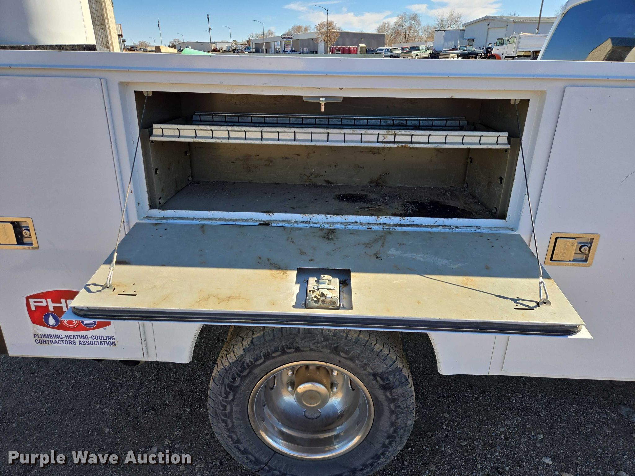 2015 Ford F350 Super Duty XL Crew Cab utility bed pickup truck. Miles: 172,984 on odometer, VIN: 1FT8W3DT9FEC88300. Engine Displacement: 6.7L, Cylinders: 8, Fuel type: Diesel. Transmission Automatic, Four wheel drive. Interior AC, Heat, Heated mirrors, Power windows, Power locks, Cruise control, Brake controller. Features Bed Utility bed, Palfinger, Length: 8', Width: 95". Tires Size: 245/75R17. South Dakota title. Title distribution may be delayed up to 14 days from verification of funds. Wheelhouse Plumbing, Inc.. Pierre, SD 57501