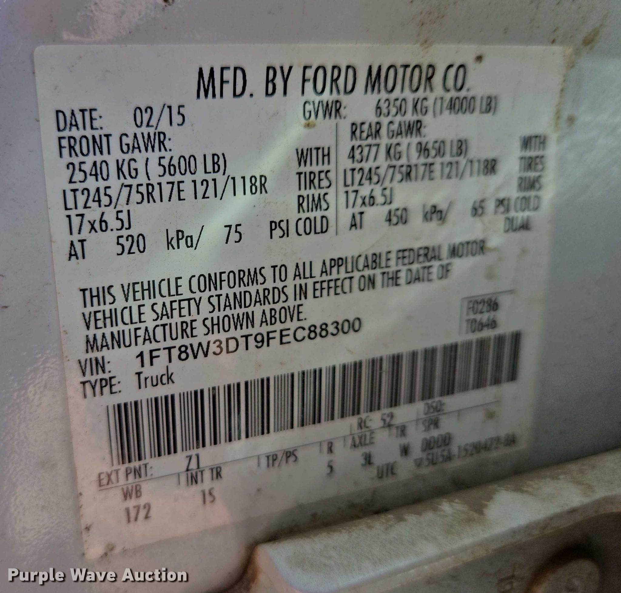 Purple Wave is selling a used 3/4 or 1 Ton Pickup or Van in South Dakota. This item is a 2015 Ford F350 Super Duty XL Crew Cab utility bed pickup truck with the following: Miles: 172,984 on odometer, VIN: 1FT8W3DT9FEC88300