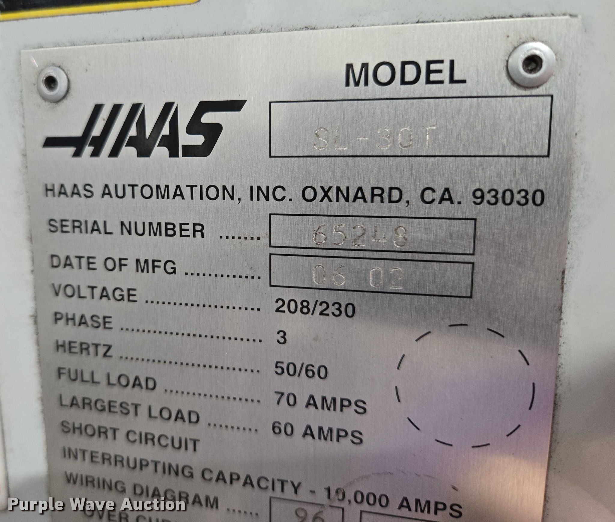 Purple Wave is selling a used Lathe CNC in South Dakota. This item is a 2002 Haas SL-30T CNC with the following: Serial: 65248