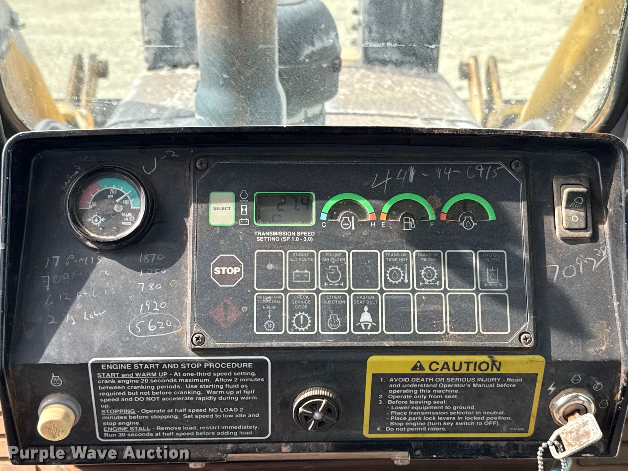 2004 John Deere 750C LT dozer. Hours: 7,350 on meter, Miles or hours may vary, unit still in use, Serial: T0750CX928557. Engine John Deere 6068TT052, Serial: PE6068T312363, Displacement: 6.8L, Cylinders: 6, Fuel type: Diesel. Transmission Hydrostatic, Three speed travel. Operators station Enclosed cab, AC, Steering: Joystick. Features Sweeps, Dozer blade Blade type: Single-tilt, Blade shape: Semi-U, Width: 10' 8", Ripper shanks: 4, Attachments Winch Allied Systems W6G, Capacity: 60,000 lbs, Cable: 1".. Tracks Width: 24", Grouser pads: Single, Bottom rollers: 7, Track guards. Notes Glass cracked, Left blade hydraulic cylinder issues, leak. RK&R Dozer Service. Orlando, OK 73073