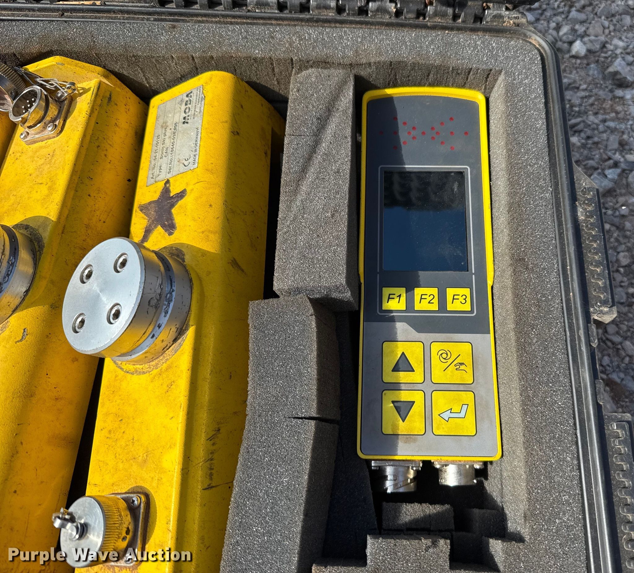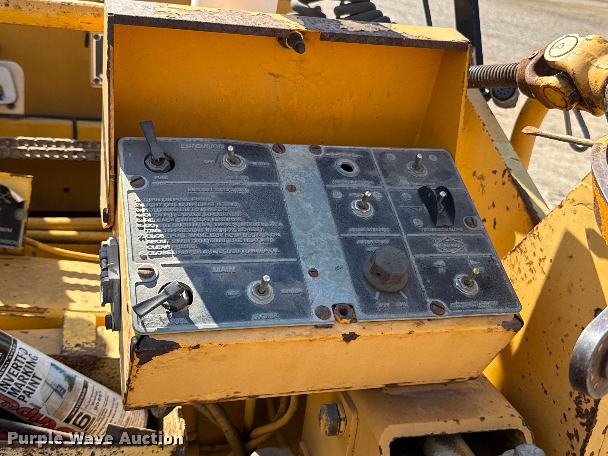 1999 Blaw-Knox PF-5510 paver. Hours: 999 on meter, Serial: 551028-12. Engine Cummins, Cylinders: 6, Fuel type: Diesel. Transmission Hydrostatic. Features Screed Ingersoll Rand Omni IIIA, Serial: 10562-141, Paving width: 10' to 18', Extensions Quantity: 2, Screed heater: Diesel, Front spread hopper width: 128', Material conveyor Width: 48", Wash down system, Grade and slope controls, Moba-Matic II leveling system. Tracks Width: 19", Rubber. SWH Construction. Norman, OK 73072