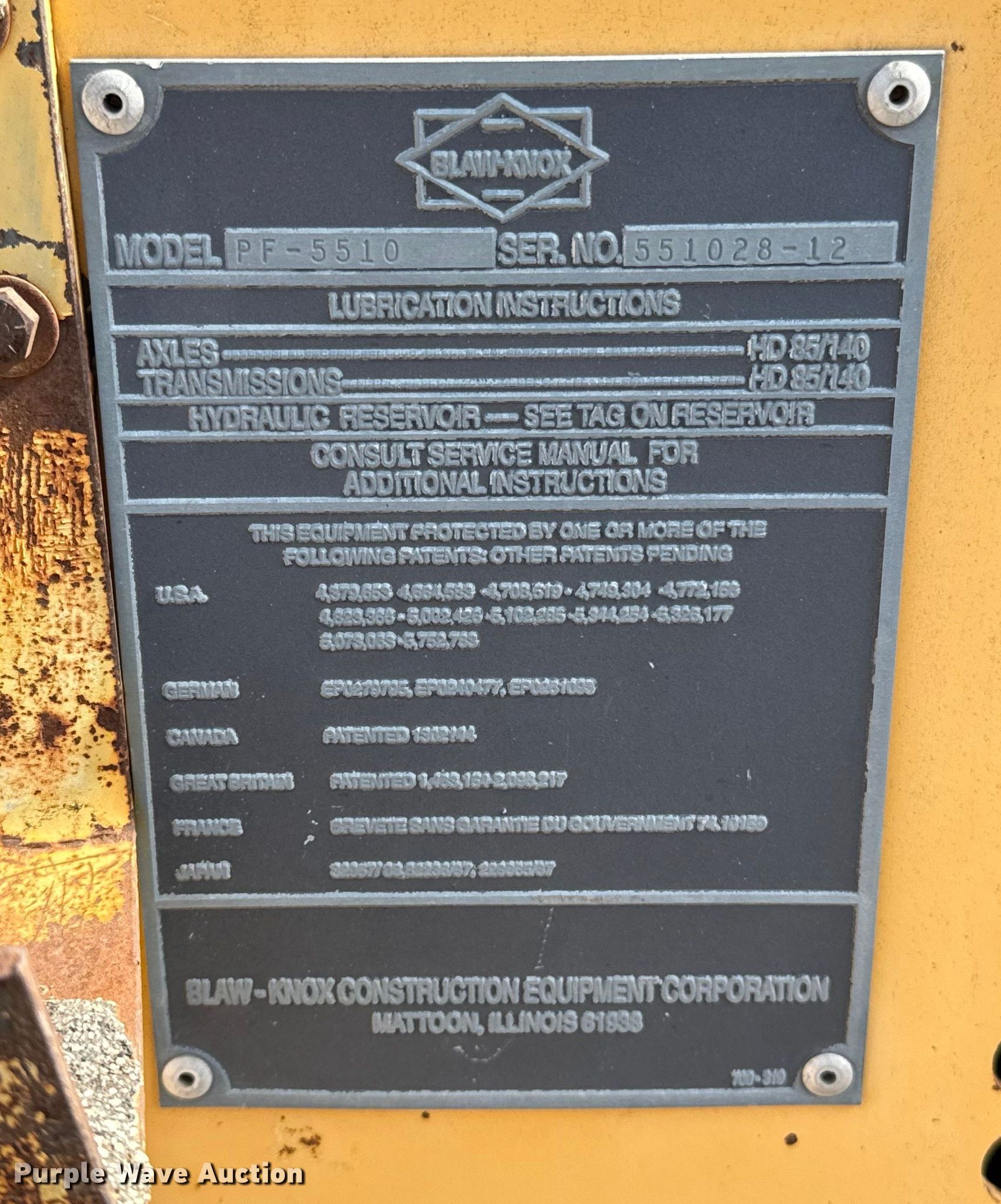 Take a look at this used 1999 Blaw-Knox PF-5510 paver being sold on March 12th, 2026 in the Thursday March 12 Construction Equipment Auction made by Blaw-Knox. Take a look at all of the item information below or take a look at similar auctions for Asphalt and Paving Equipment.