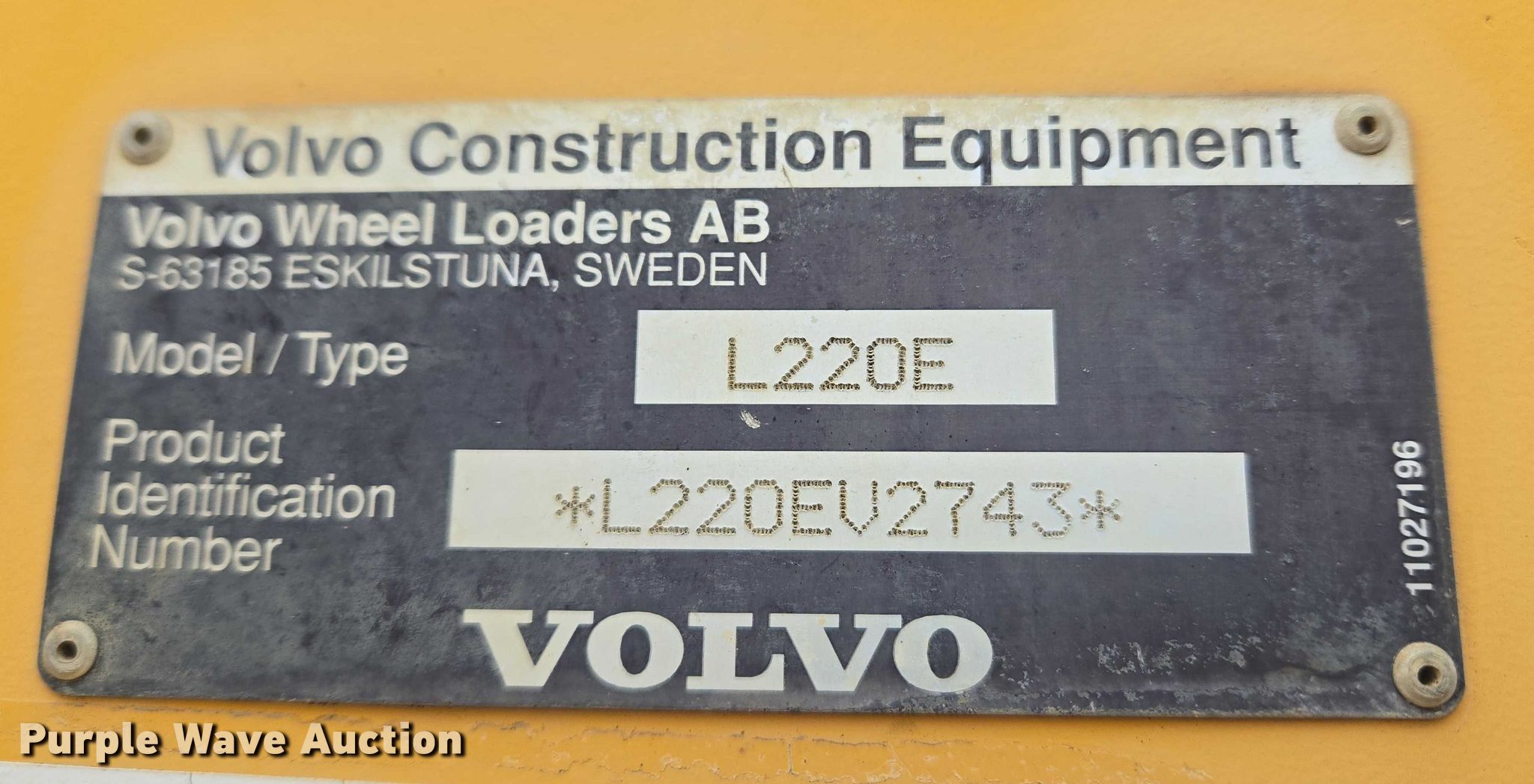 Purple Wave is selling a used Wheel Loader in Oklahoma. This item is a 2004 Volvo L220E wheel loader with the following: Hours: 19,311 on meter, Serial: L220EV2743