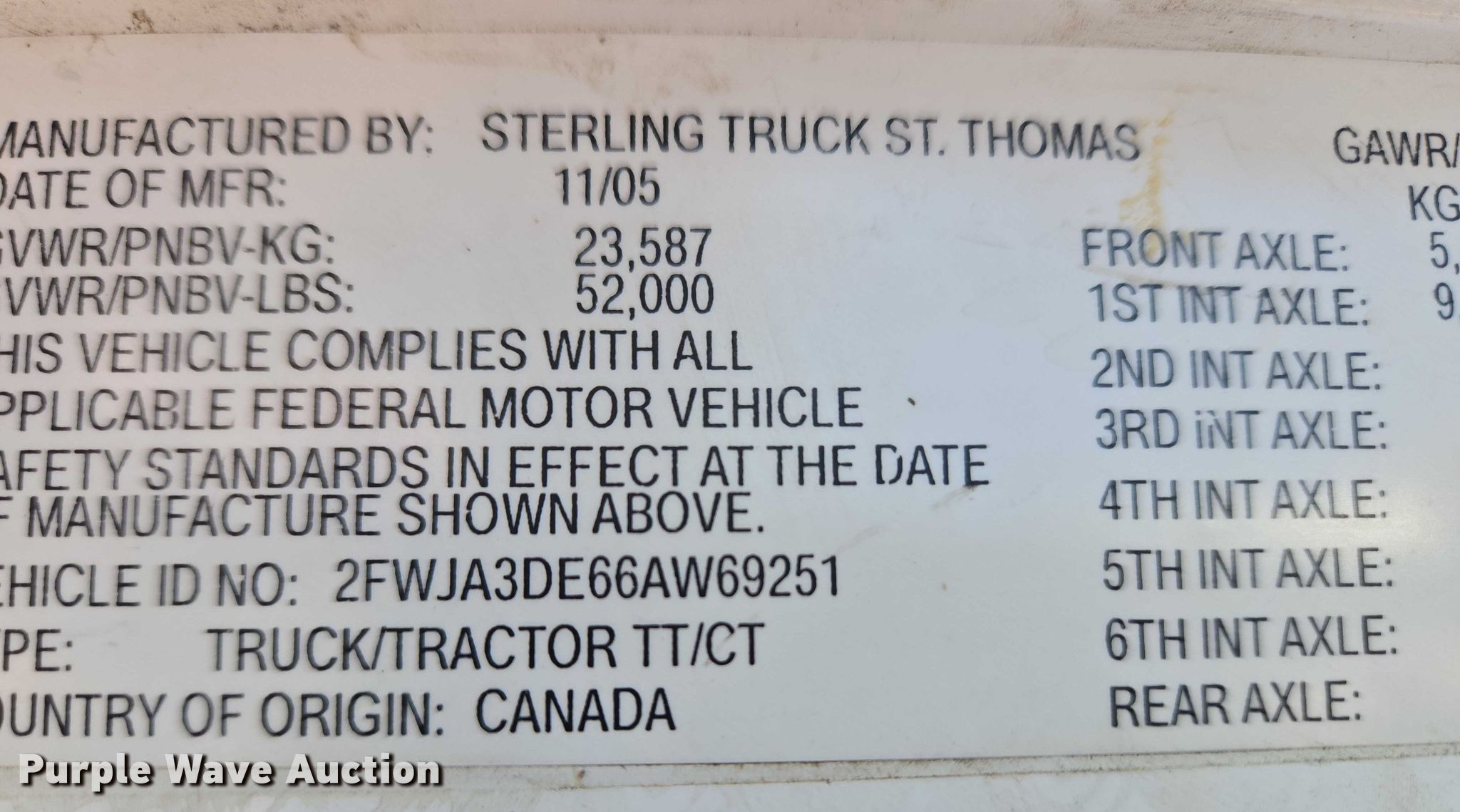 Purple Wave is selling a used Construction Dump Truck in Oklahoma. This item is a 2006 Sterling A9500 dump truck with the following: Miles: 635,660 on odometer, VIN: 2FWJA3DE66AW69251