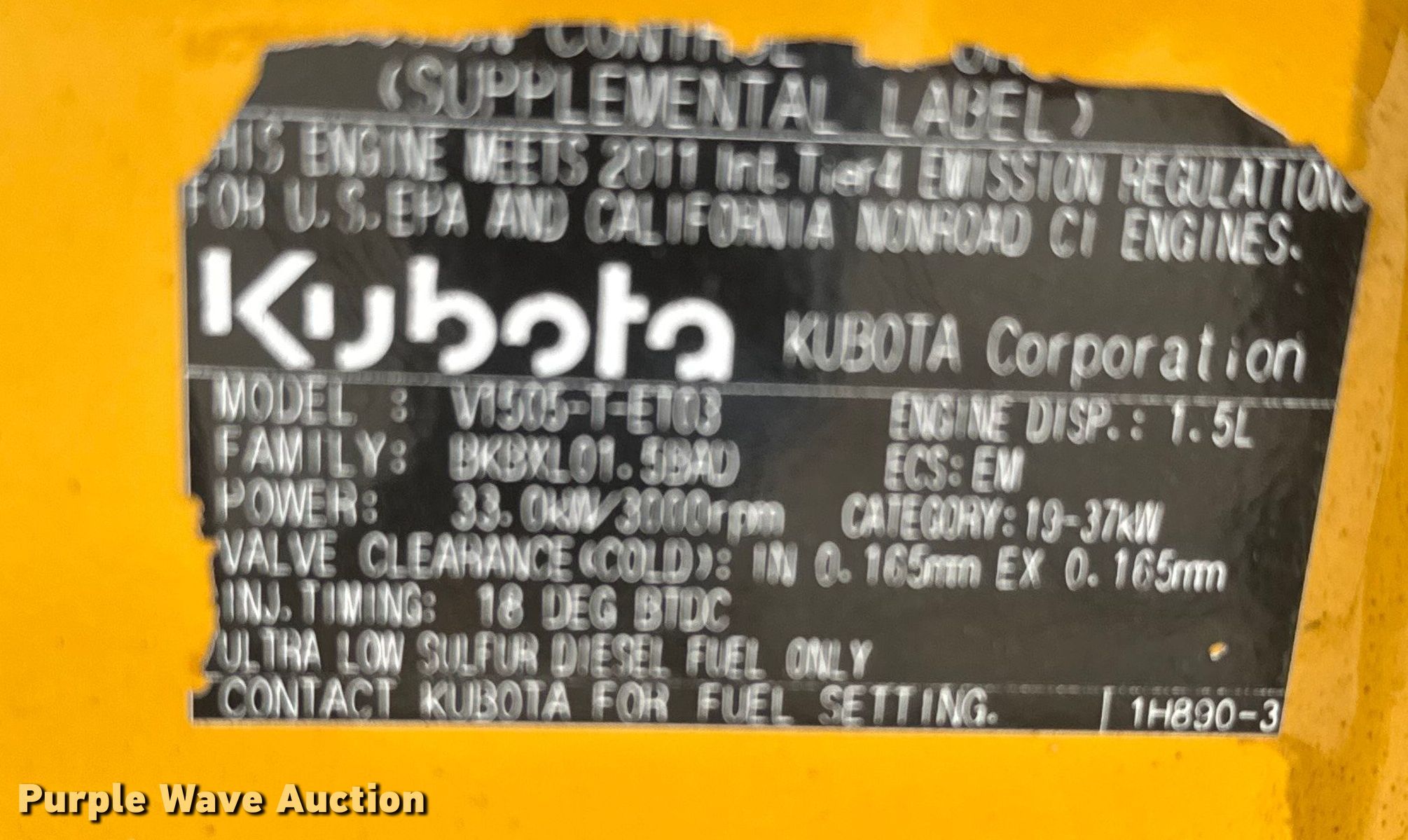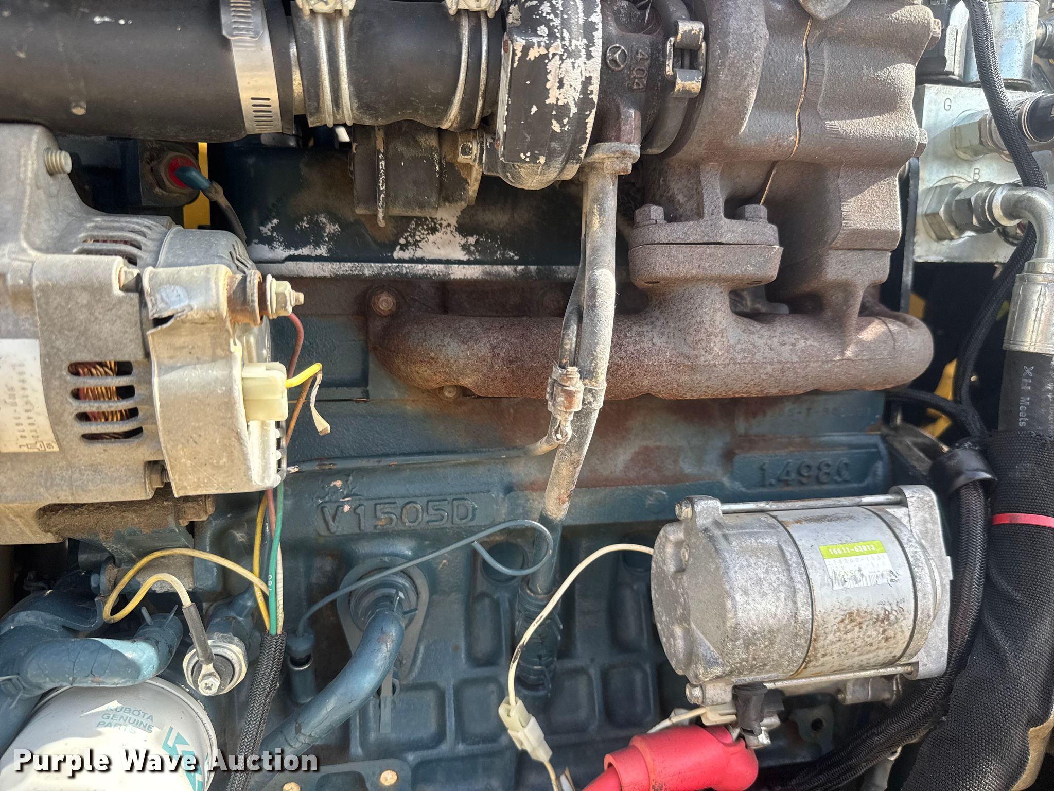 2012 Vermeer D9X13 Series II Navigator directional boring unit. Hours: 2,240 on meter, Serial: 1VR9160S4C1000459, Unit #: 9100-2033. Engine Kubota V1505-T-EU1, Displacement: 1.5L, Cylinders: 4, Fuel type: Diesel. Features Water pump FMC E0413HD, GPM: 25, On board water capacity: 50 gallons, Rear hydraulic stabilizers, Hydraulic stake down. Tracks Width: 10", Rubber, Extendable tracks Left. Source HDD, LLC. Hutchinson, KS 67501