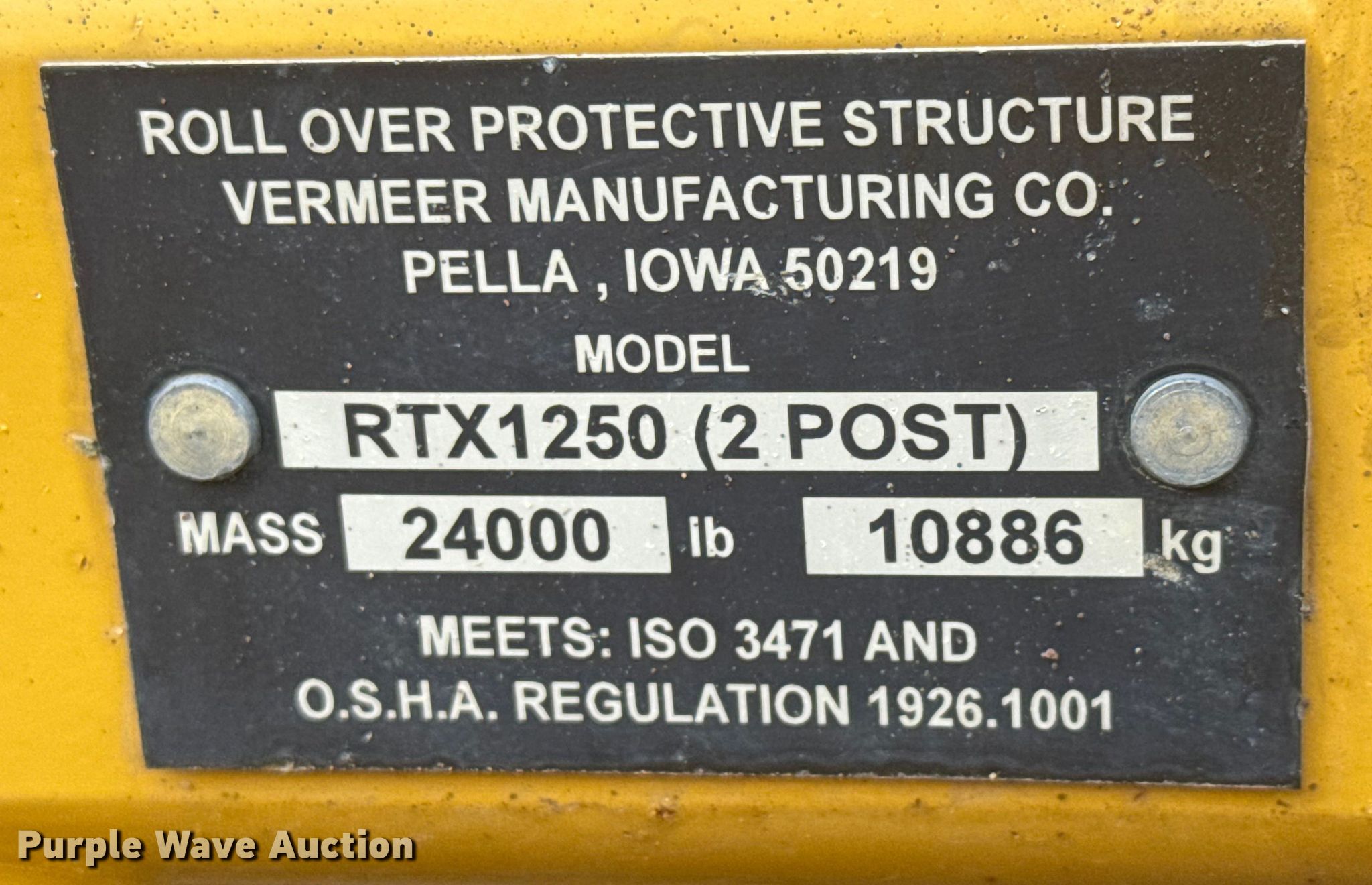 Purple Wave is selling a used Trencher or Rock Saw in Kansas. This item is a 2015 Vermeer RTX1250 trencher with the following: Hours: 641 on meter, Serial: 1VR6132R7F1003176, Unit #: 9400-106