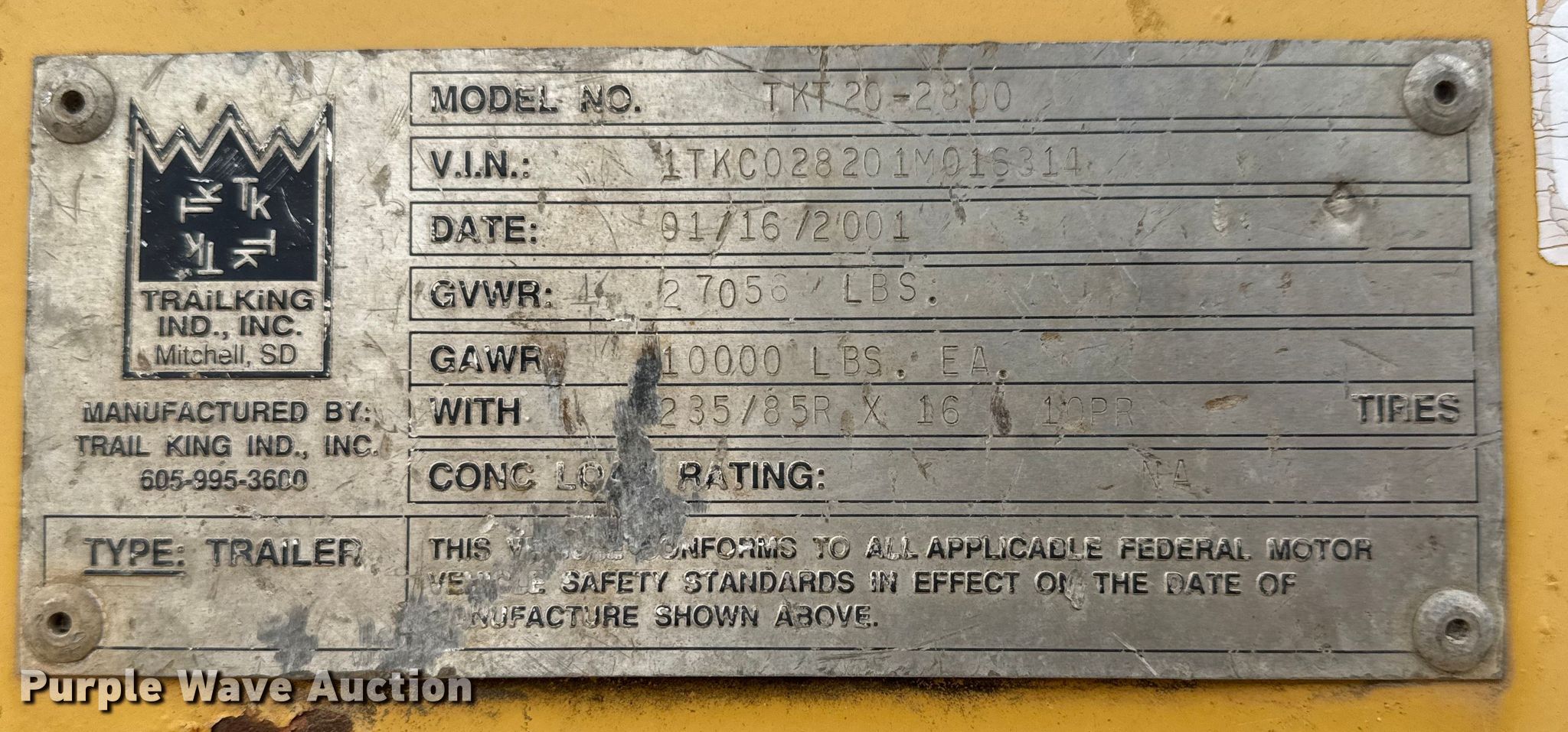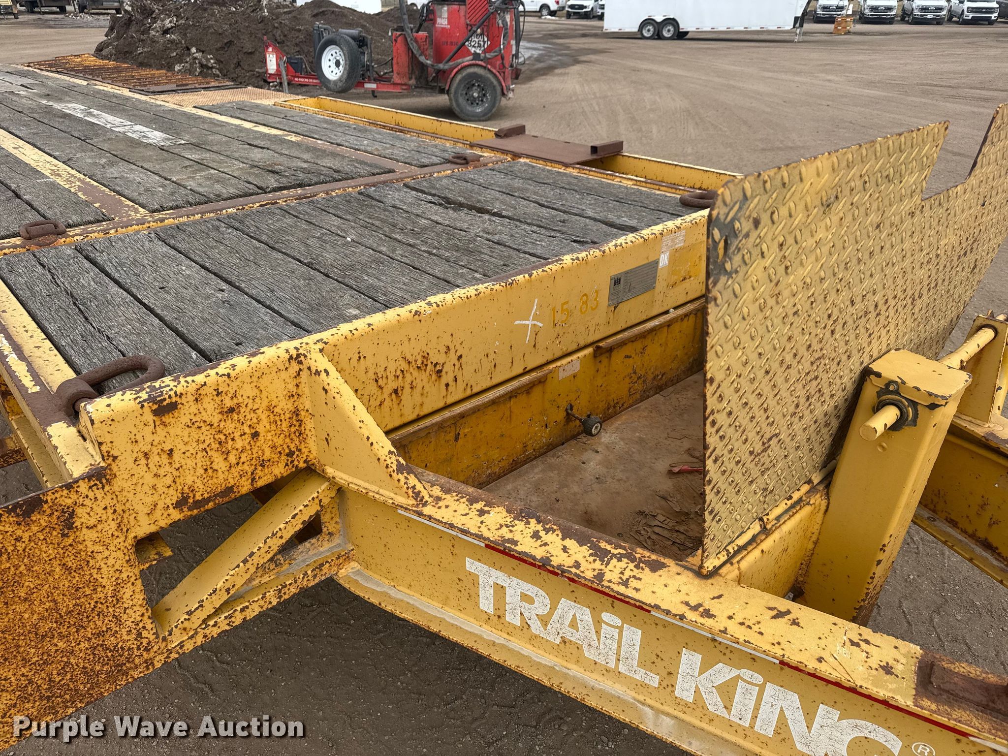Purple Wave is selling a used Equip. Trailer in Kansas. This item is a 2001 Trail King TKT 20-2800 tilt deck equipment trailer with the following: VIN: 1TKC028201M016314, Unit #: 15.83