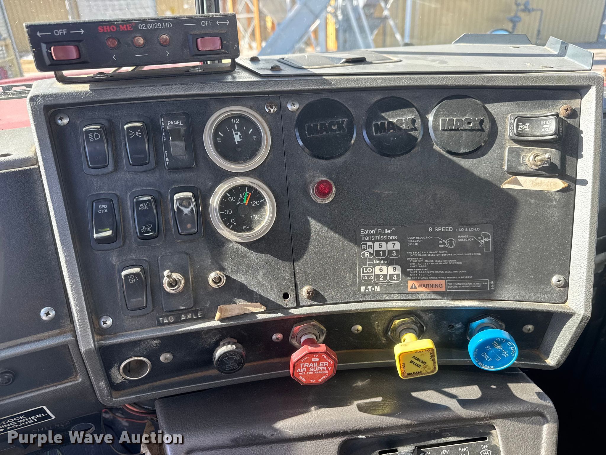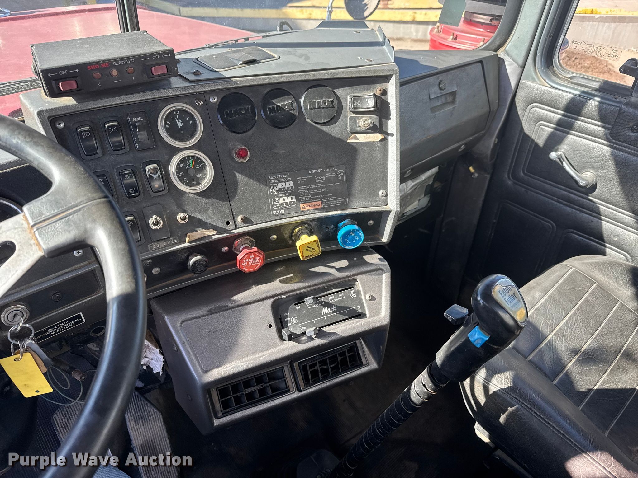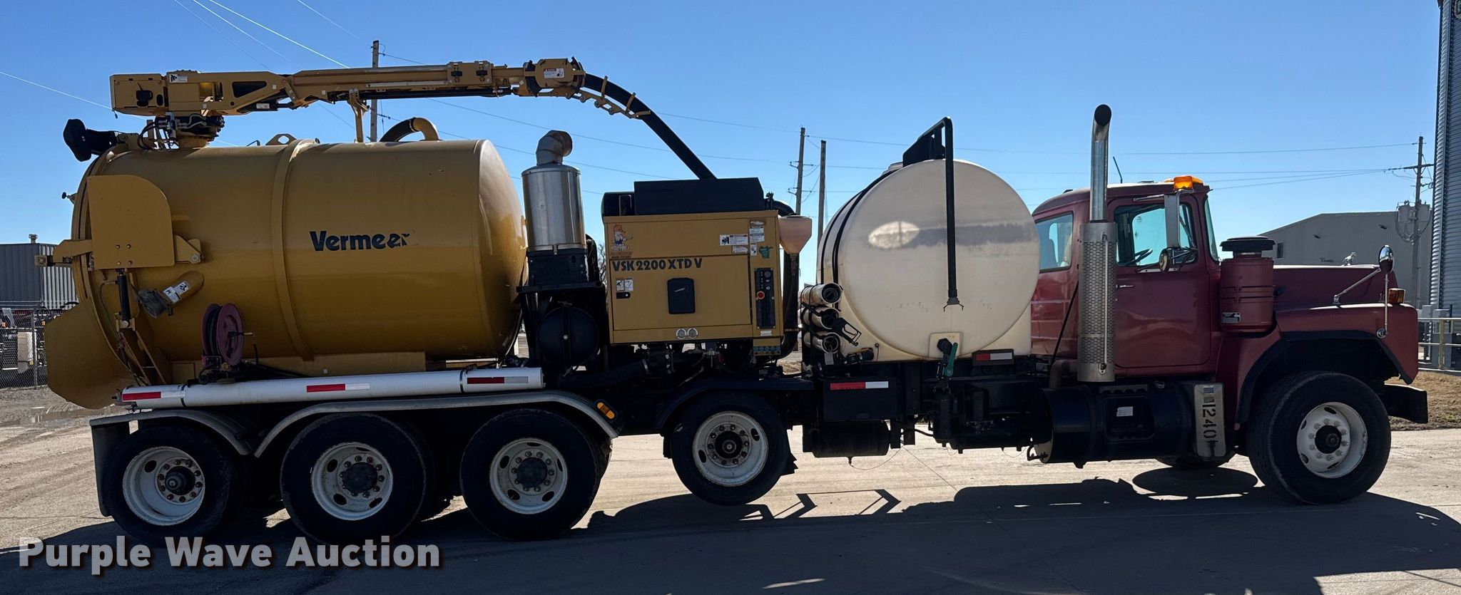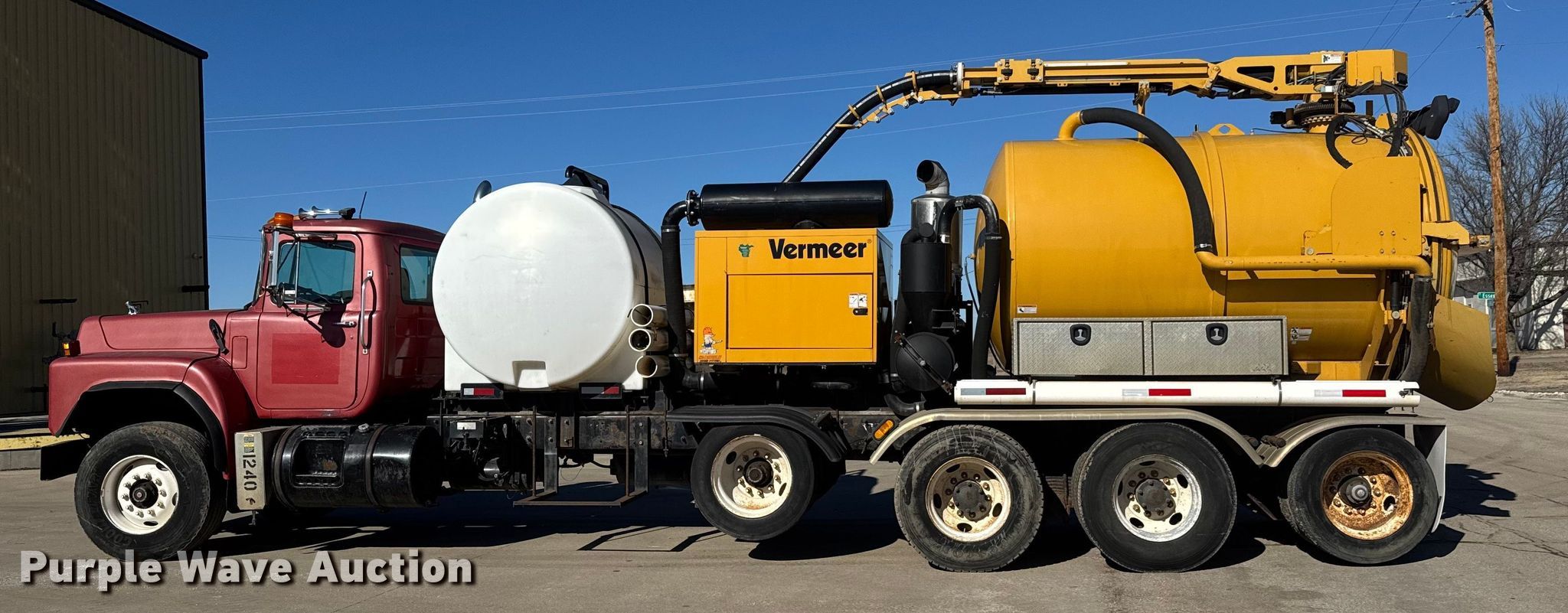 2002 Mack RB688S hydrovac truck. Miles: 230,282 on odometer, Hours: 13,643 on meter, VIN: 1M2AM08C12M006128, Unit #: 9810-0236. Engine Mack E7 350, Serial: 1J0265, Displacement: 12.0L, Cylinders: 6, Fuel type: Diesel, HP: 350. Transmission Eaton Fuller 8LL, Manual, Speed: 11. Chassis Axles: Quad, Pusher axle, Tag axle, Differential lock: Inter-axle, Suspension: Camelback, Brakes: Air. Interior AC, Heat, Heated mirrors, Cruise control. Features Bed 2014 Vermeer V SK2200XTDV, Serial: S 22X052914580, Length: 24', Width: 96", Capacity: 2,200 gallons, Engine Cylinders: 4, Fuel type: Diesel, Hours: 1,883, Poly tank Capacity: 925 gallons. Tires Front: 385/65R22.5, Rear: 11R22.5, Lift axles: 255/70R22.5. Notes Boom remote missing. Wisconsin title. Seller is a Kansas licensed motor vehicle dealer. The buyer may be required to pay sales tax and/or registration fees to the dealer prior to taking possession. Buyers may be required to provide identification to the licensed dealer to comply with state laws. Title will be assigned and distributed by the dealer. Please contact the seller for distribution questions. Title distribution may be delayed up to 30 days from verification of funds. Source HDD, LLC. Hutchinson, KS 67501