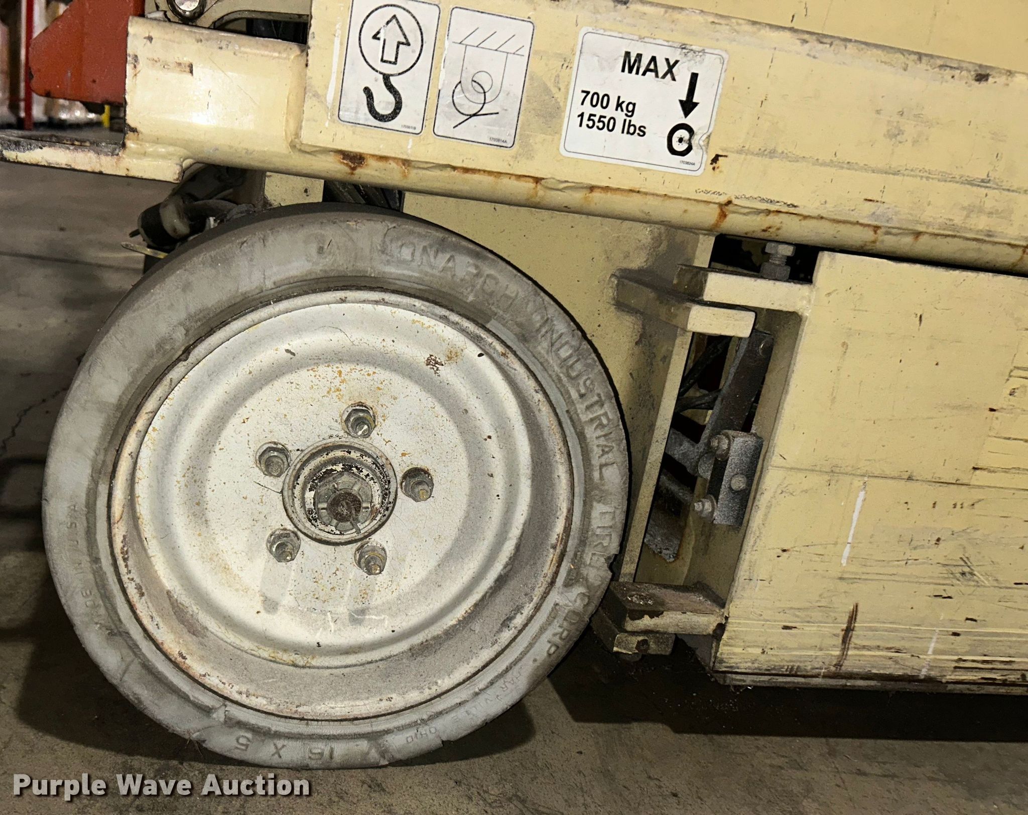 JLG 2646E2 scissor lift. Hours: 521 on meter, Serial: 0200059095. Electric Motor Volts: 24. Features Maximum lift capacity: 750 lbs, Maximum lift height: 26', Platform: 84" L x 45" W, AC power outlet, Controls: Platform, Ground, Platform extensions: Manual. Tires Tire size: 16x5, Solid. Motor Service, Inc.. Hazelwood, MO 63042