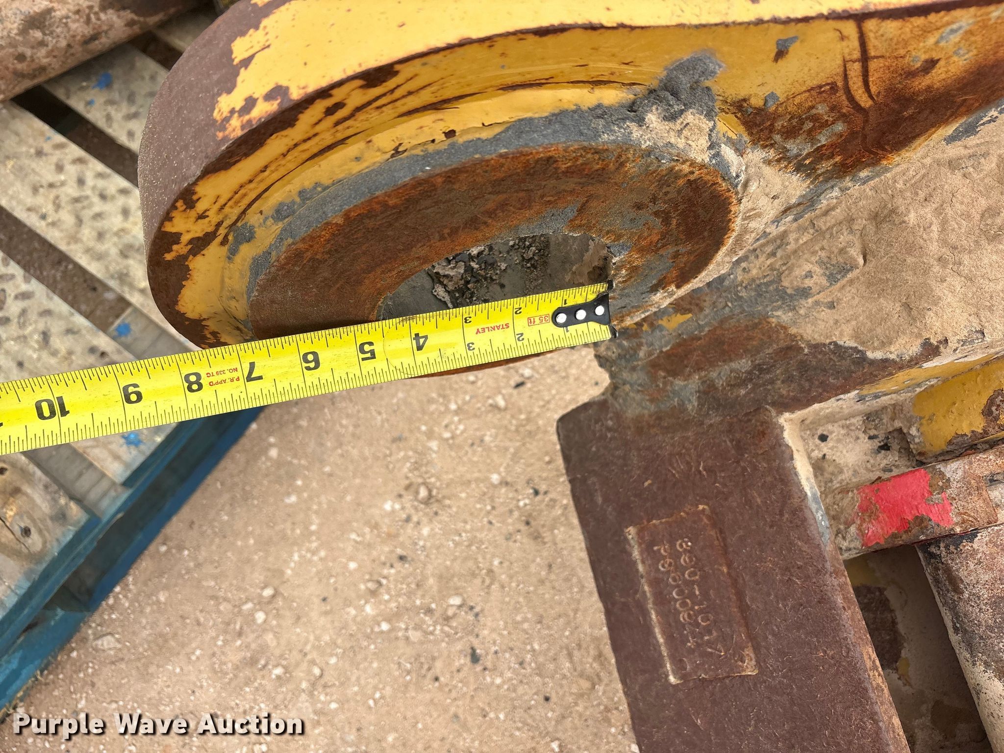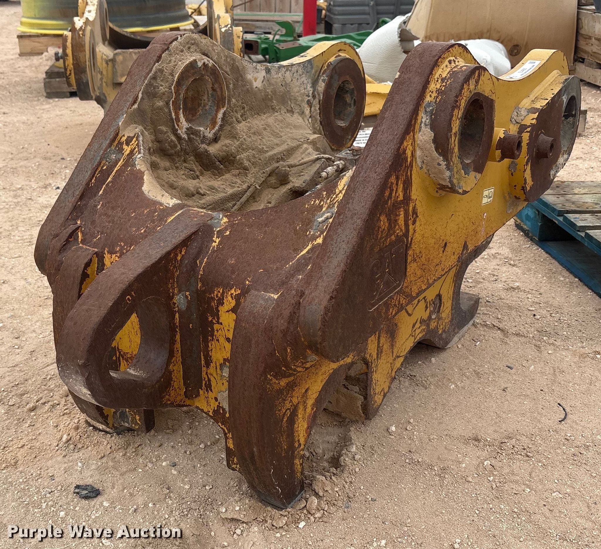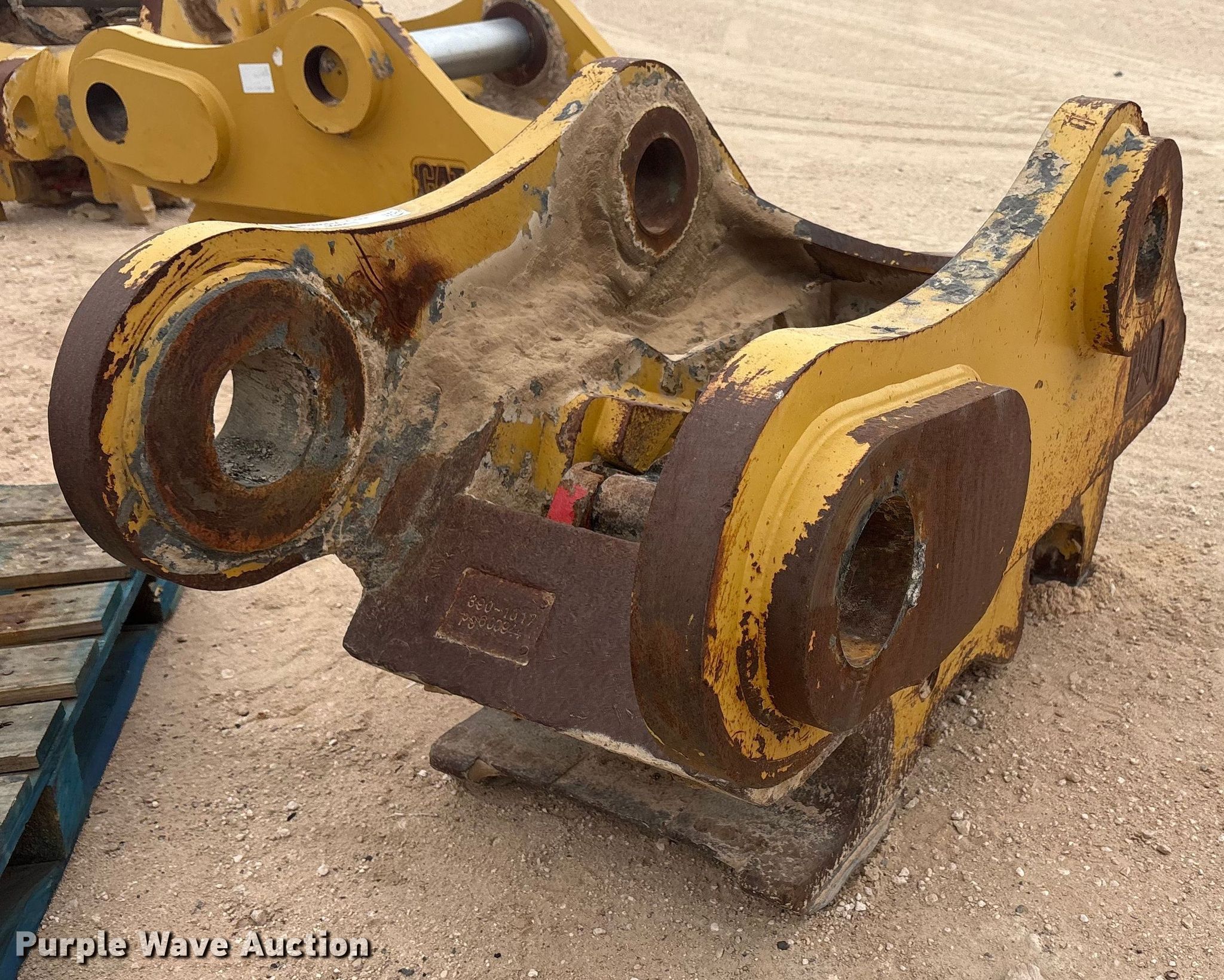 Purple Wave is selling a used Excavator Attach. in Texas. This item is a Caterpillar excavator quick coupler with the following: Serial: P9600944, Length: 4' 8", Width: 2' 4"