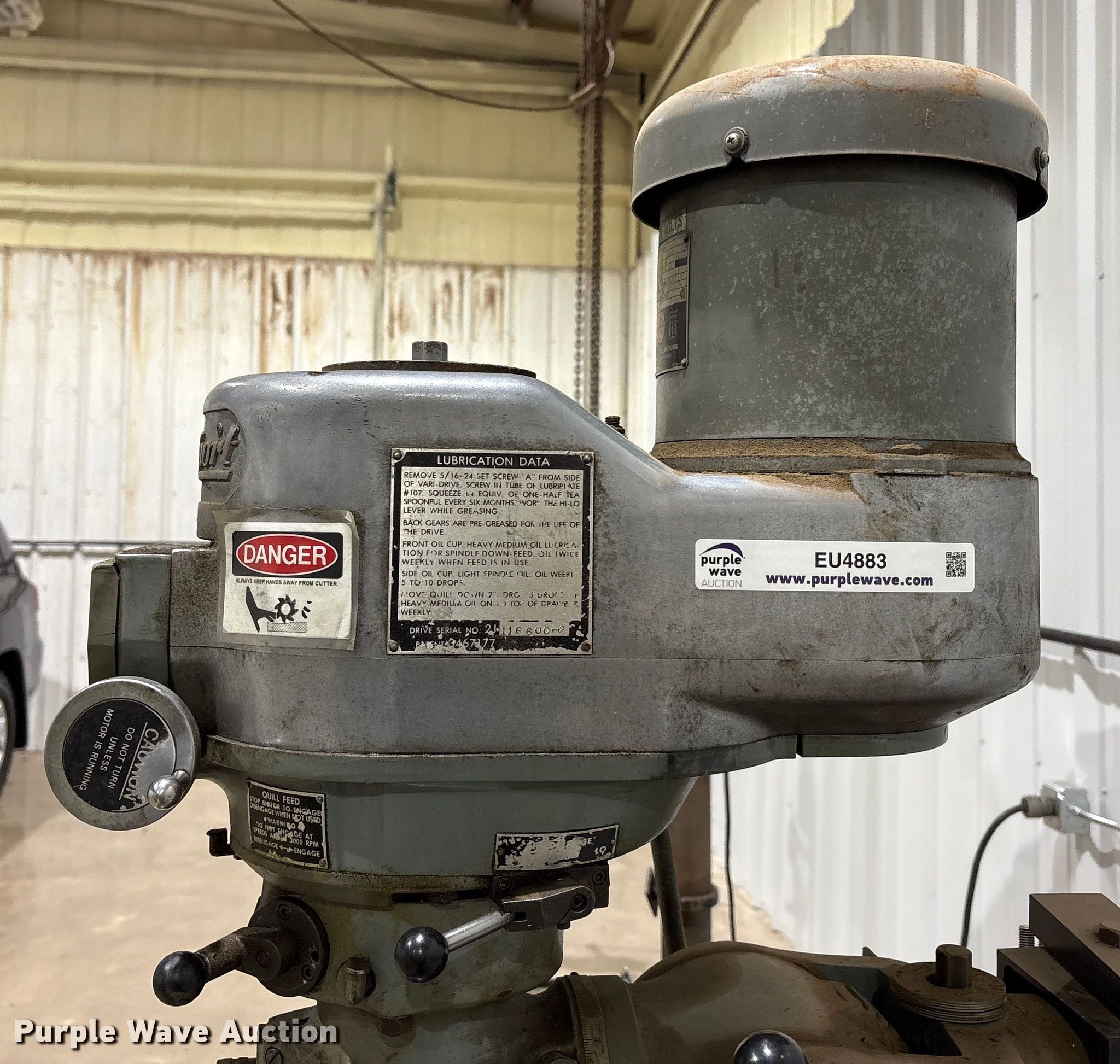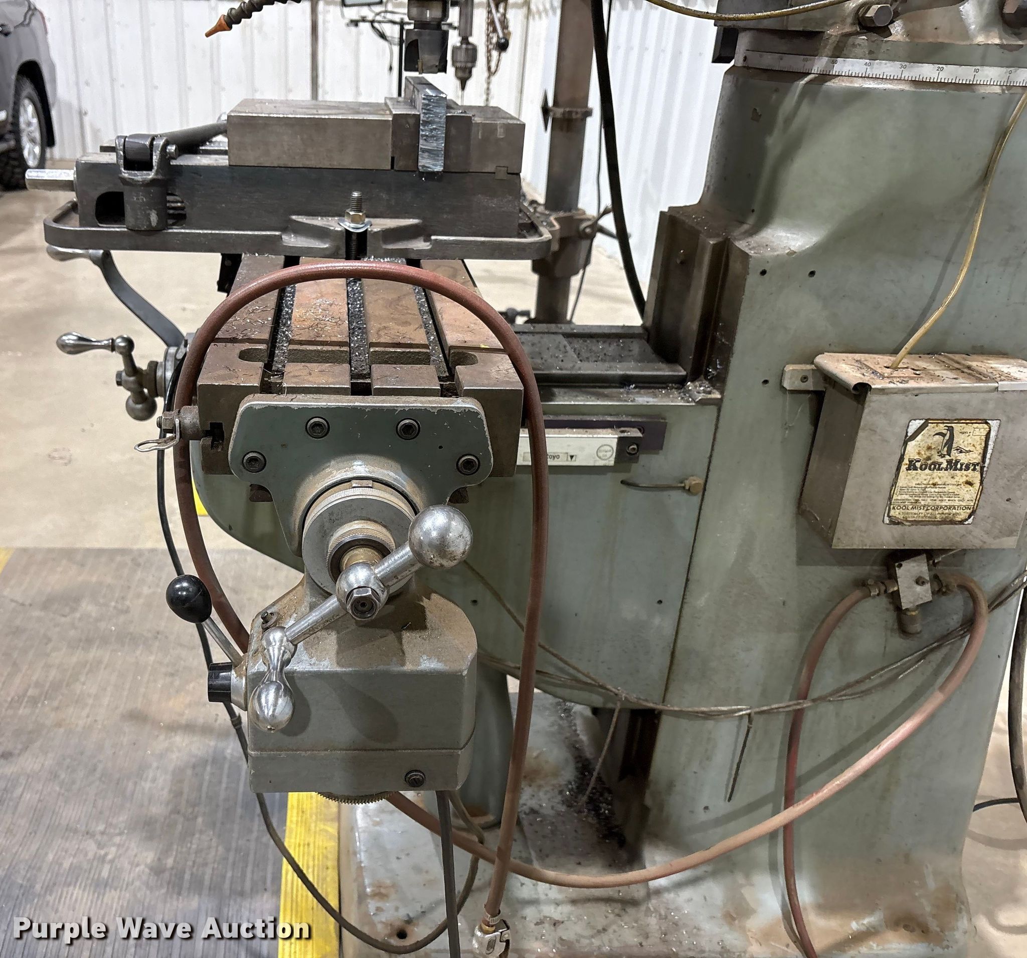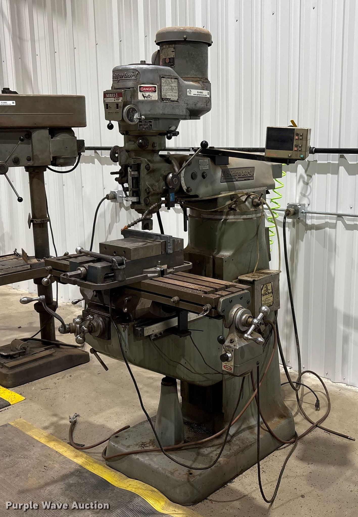Purple Wave is selling a used Milling Machines in Texas. This item is a Bridgeport vertical milling machine with the following: Overall, Length: 4' 8", Width: 4' 8", Height: 6' 10"