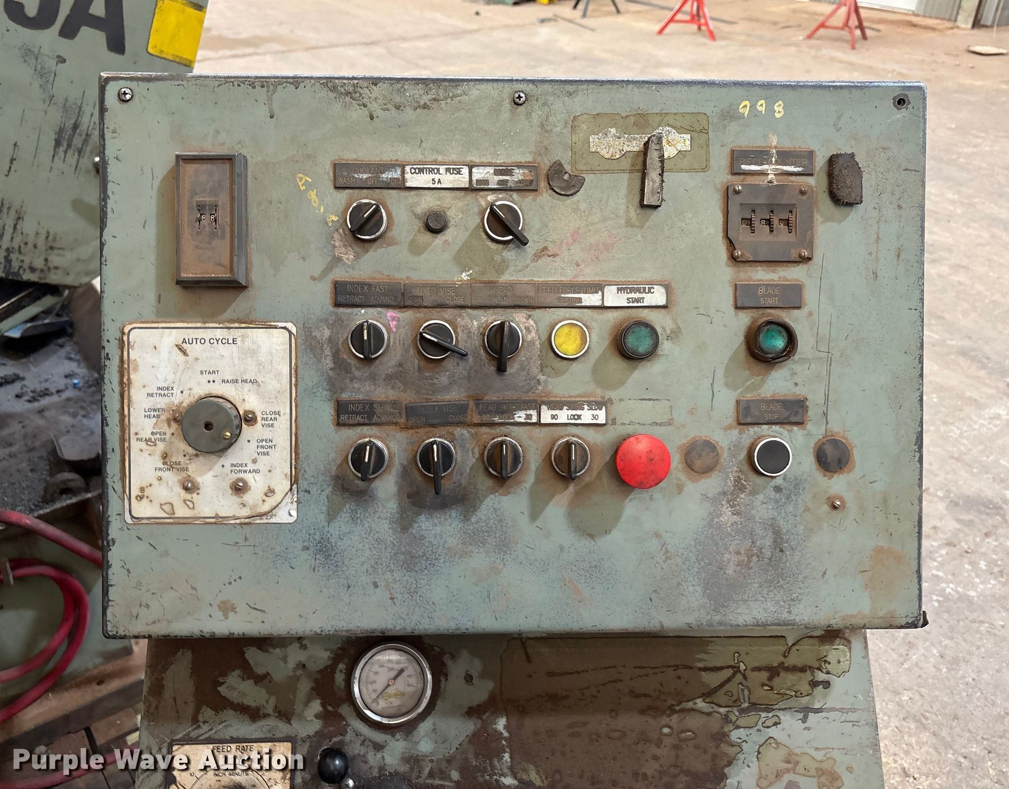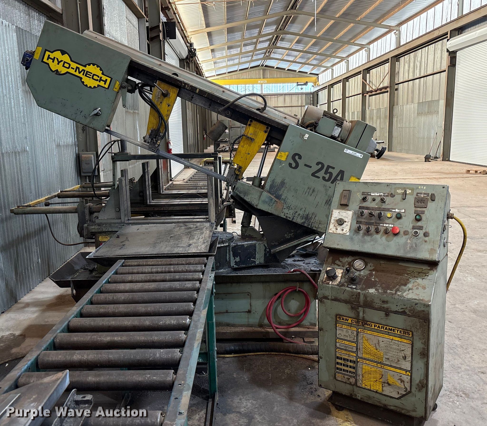 Purple Wave is selling a used Metal Cutting Saw in Texas. This item is a Hyd-Mech S-25A Band saw with the following: Serial: 90297406