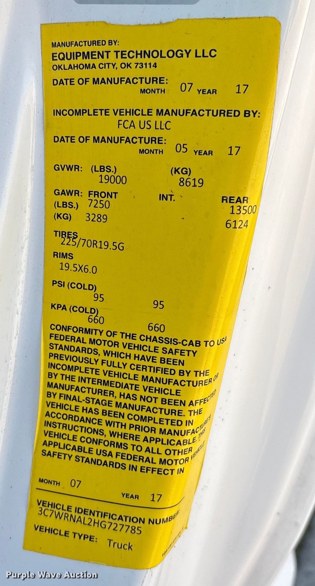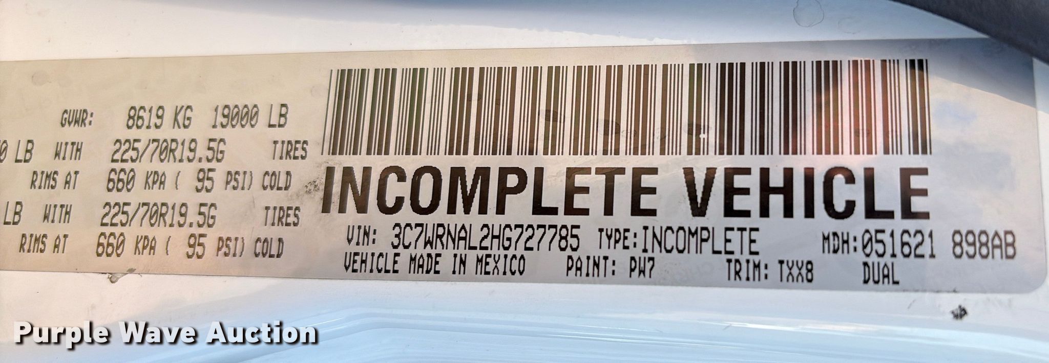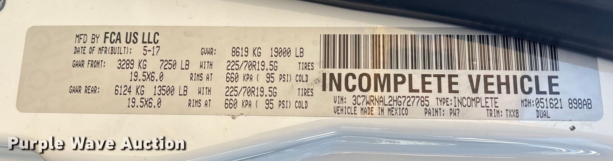- VIN: 3C7WRNAL2HG727785