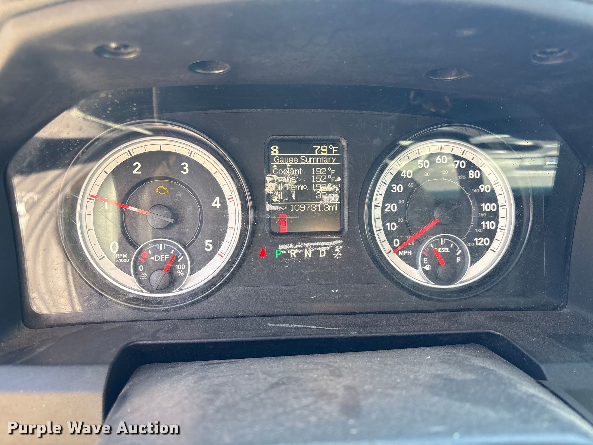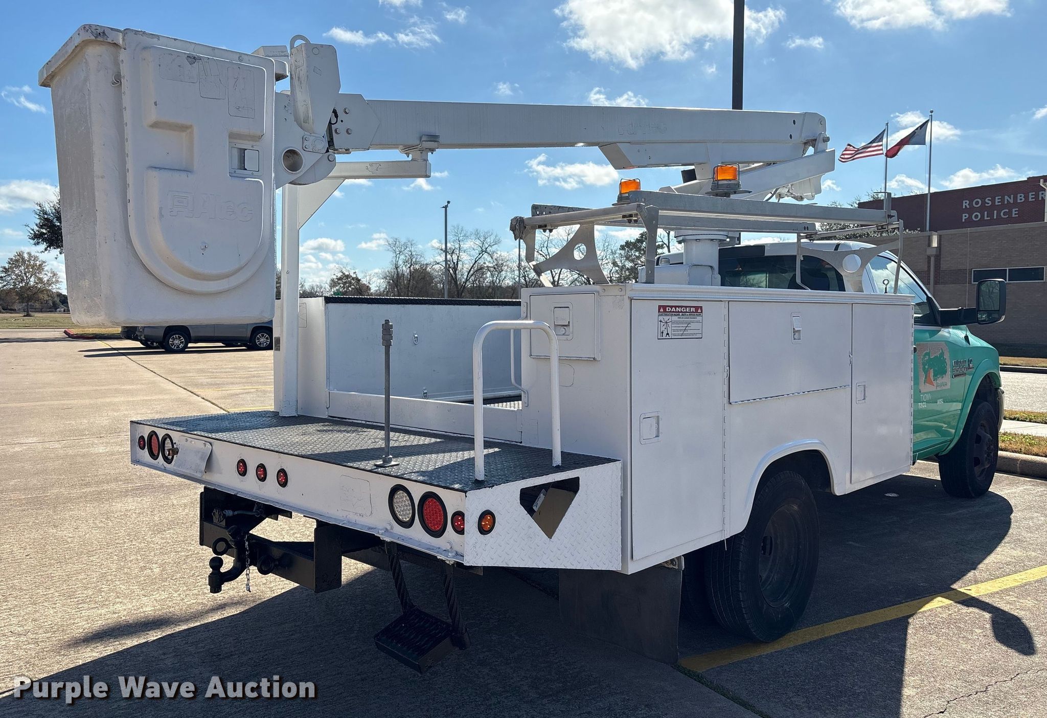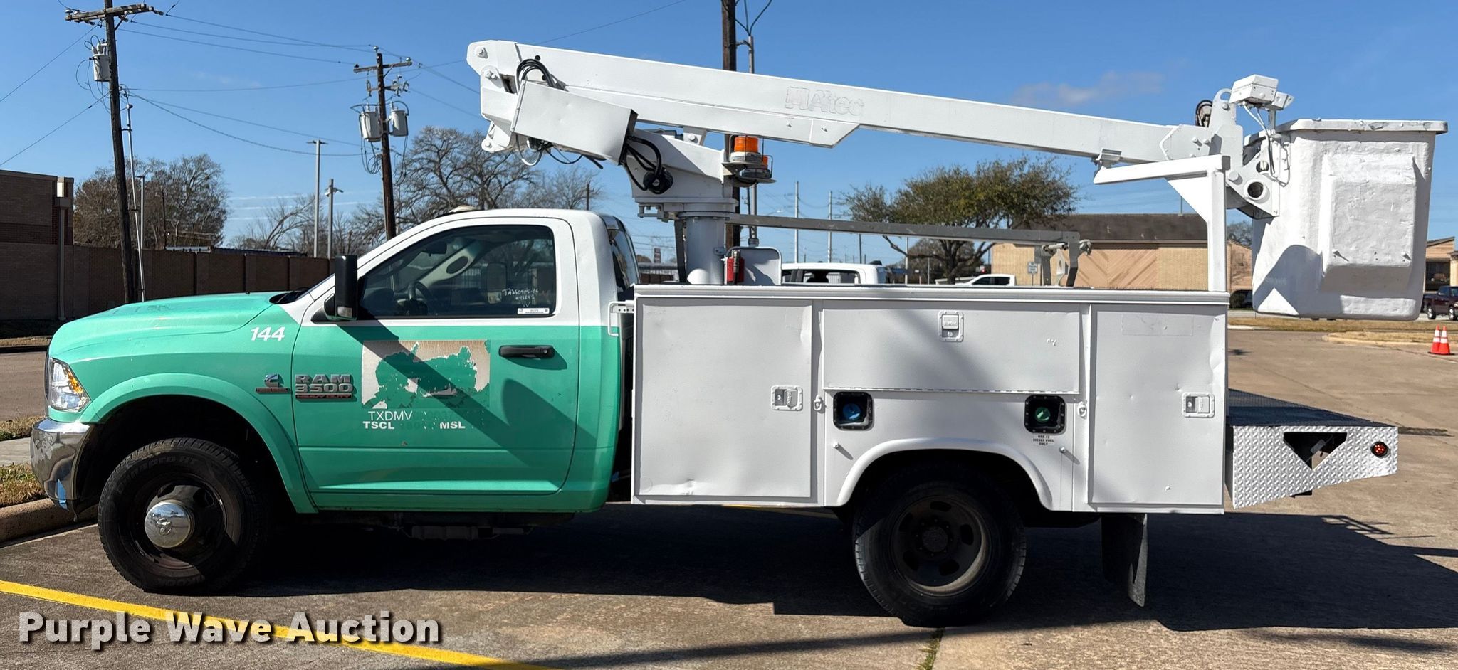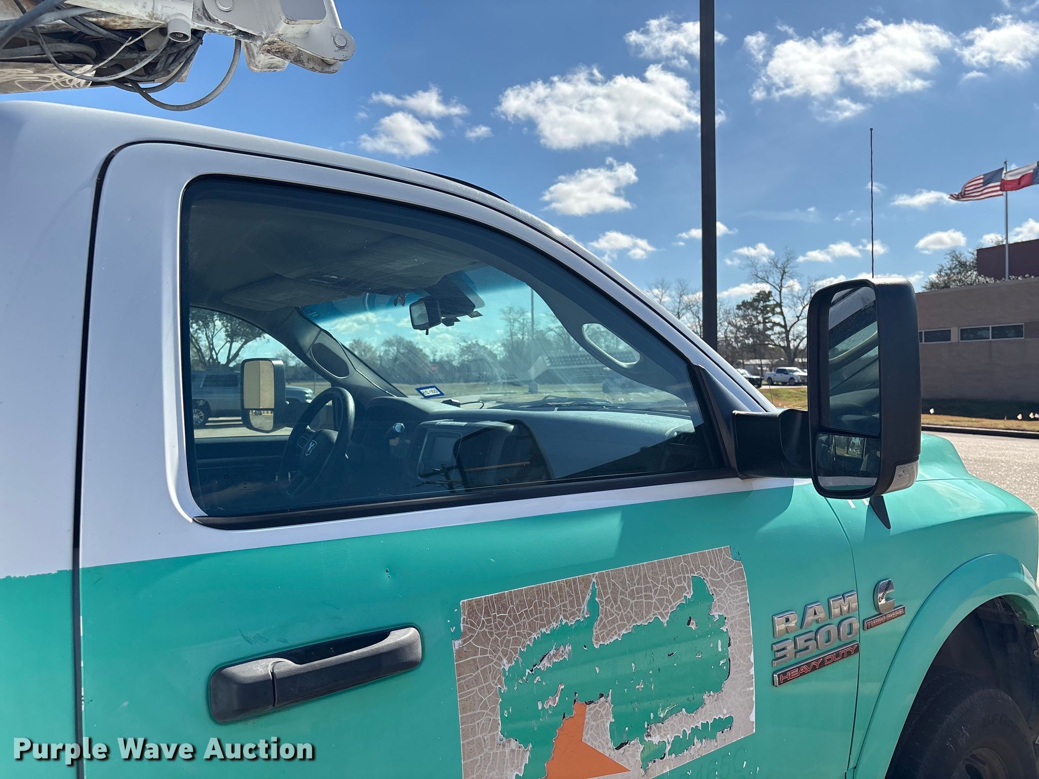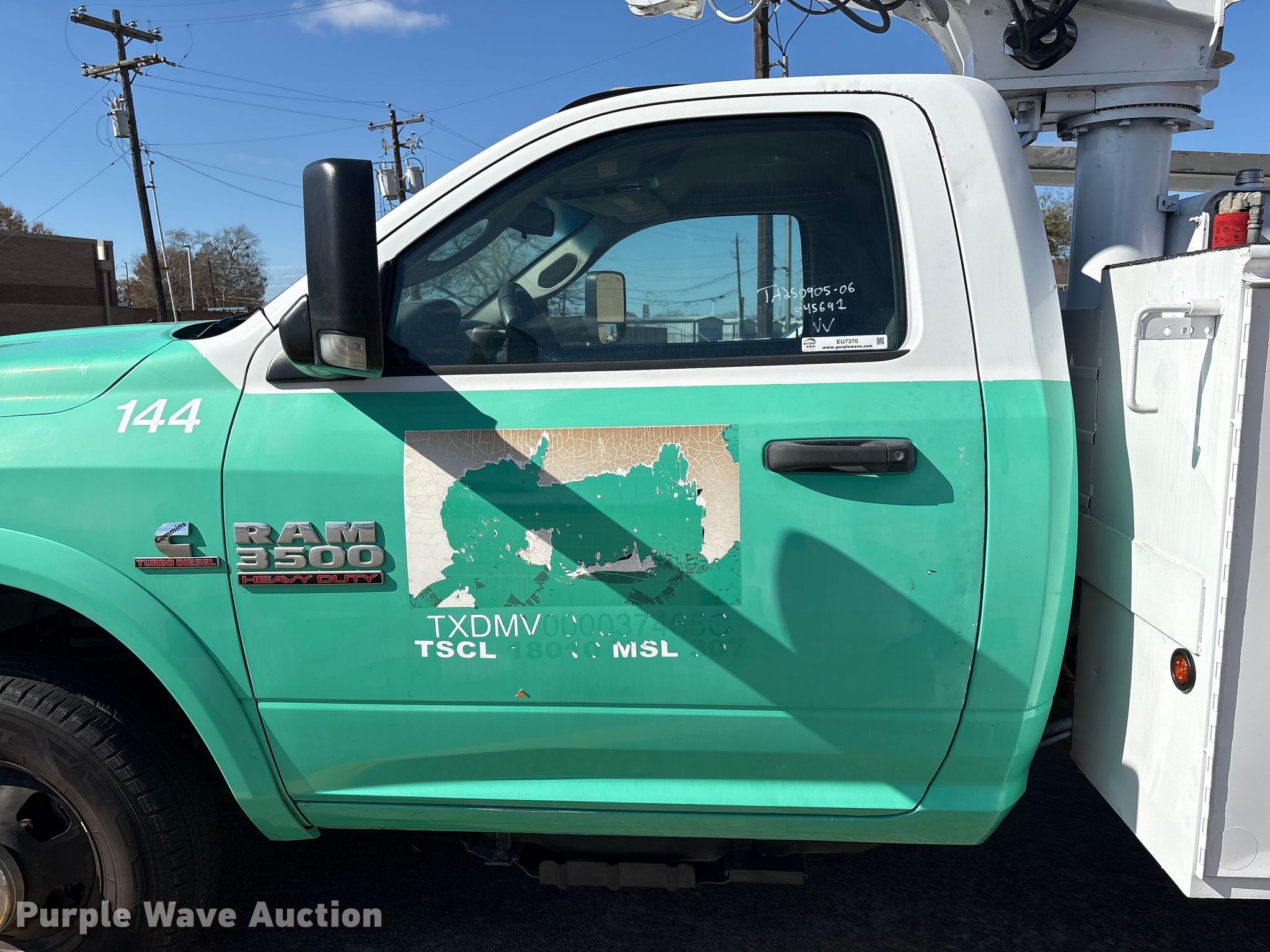 2015 RAM 3500 bucket truck. Miles: 109,731 on odometer, Hours: 3,655 on meter, VIN: 3C7WRSAL4FG543220. Engine Cummins, Displacement: 6.7L, Cylinders: 6, Fuel type: Diesel. Transmission Automatic. Chassis Axles: Single, Suspension: Spring, Brakes: Hydraulic. Interior AC, Heat, Power windows, Power locks, Cruise control, Brake controller. Features Bed Utility bed, Boom Altec, Man basket, Boom controls Basket.. Tires Size: 295/80R17. Texas title. Title distribution may be delayed up to 30 days from verification of funds. Rosenberg, TX 77471