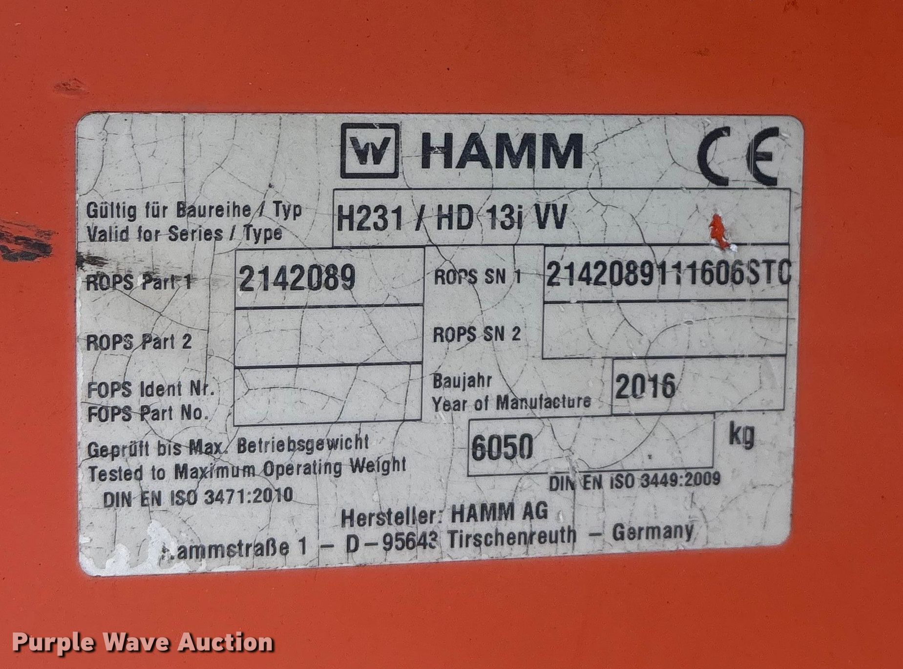 Purple Wave is selling a used Double Drum Roller Compactor in Oklahoma. This item is a 2016 Hamm HD 13i VV double drum roller with the following: Hours: Unknown, Serial: H2310148