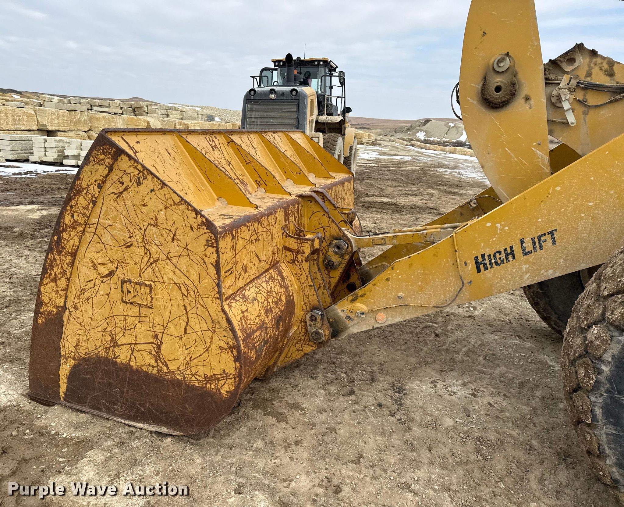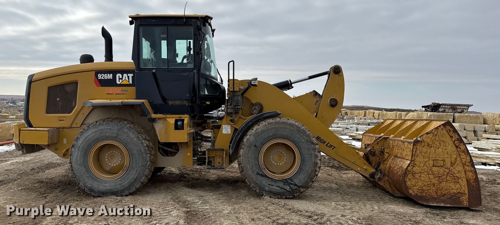 2017 Caterpillar 926M high lift wheel loader. Hours: 18,508 on meter, Serial: CAT0926MTLTE03913. Engine Caterpillar C7.1, Displacement: 7.01L, Cylinders: 6, Fuel type: Diesel. Transmission Powershift, 4F - 4R. Operators station Enclosed cab, AC, Heat, Bucket controls: Joystick, Ride control. Features Auto lube, Bucket Caterpillar, Width: 105", Cutting edge: Bolt-on. Tires Size: 20.5R25. Rockland Stone LLC. Cottonwood Falls, KS 66845