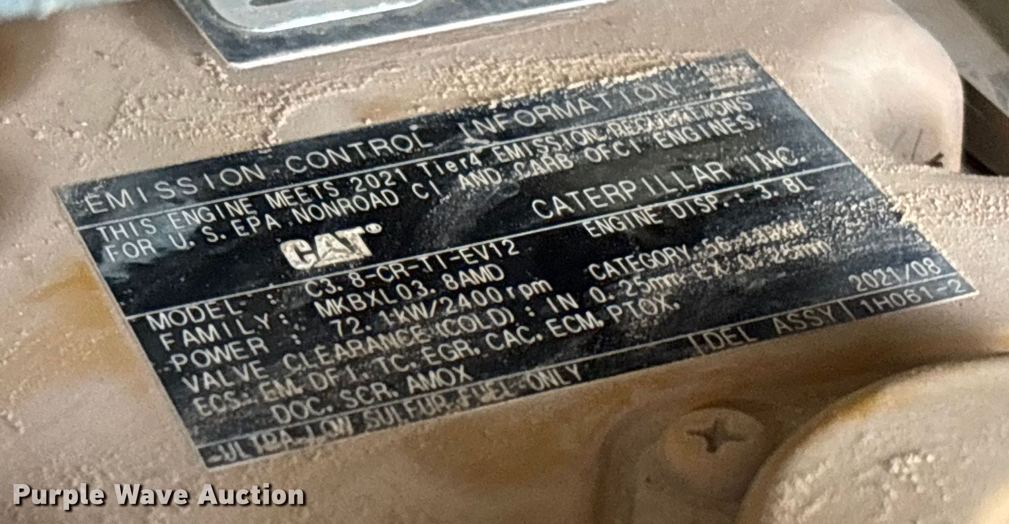 2022 Caterpillar 299D3 tracked skid steer loader. Hours: 3,634 on meter, Serial: CAT0299DVDY906424. Engine Caterpillar C3.8-CR-T1-EV12, Displacement: 3.8L, Cylinders: 4, Fuel type: Diesel, kW: 72. Transmission Hydrostatic, Two speed travel. Operators station Enclosed cab, AC, Heat, Backup camera, Bucket control: Hand, Electronic Monitoring System panel. Features Auxiliary hydraulics, Auxiliary electrical outlet, Quick coupler: Hydraulic, Counter weights, Bucket Caterpillar, Width: 84", Low profile, Cutting edge: Bolt-on. Tracks Width: 17.5". Notes Quick coupler damaged, cracked. Emery Sapp & Sons, Inc... Columbia, MO 65202