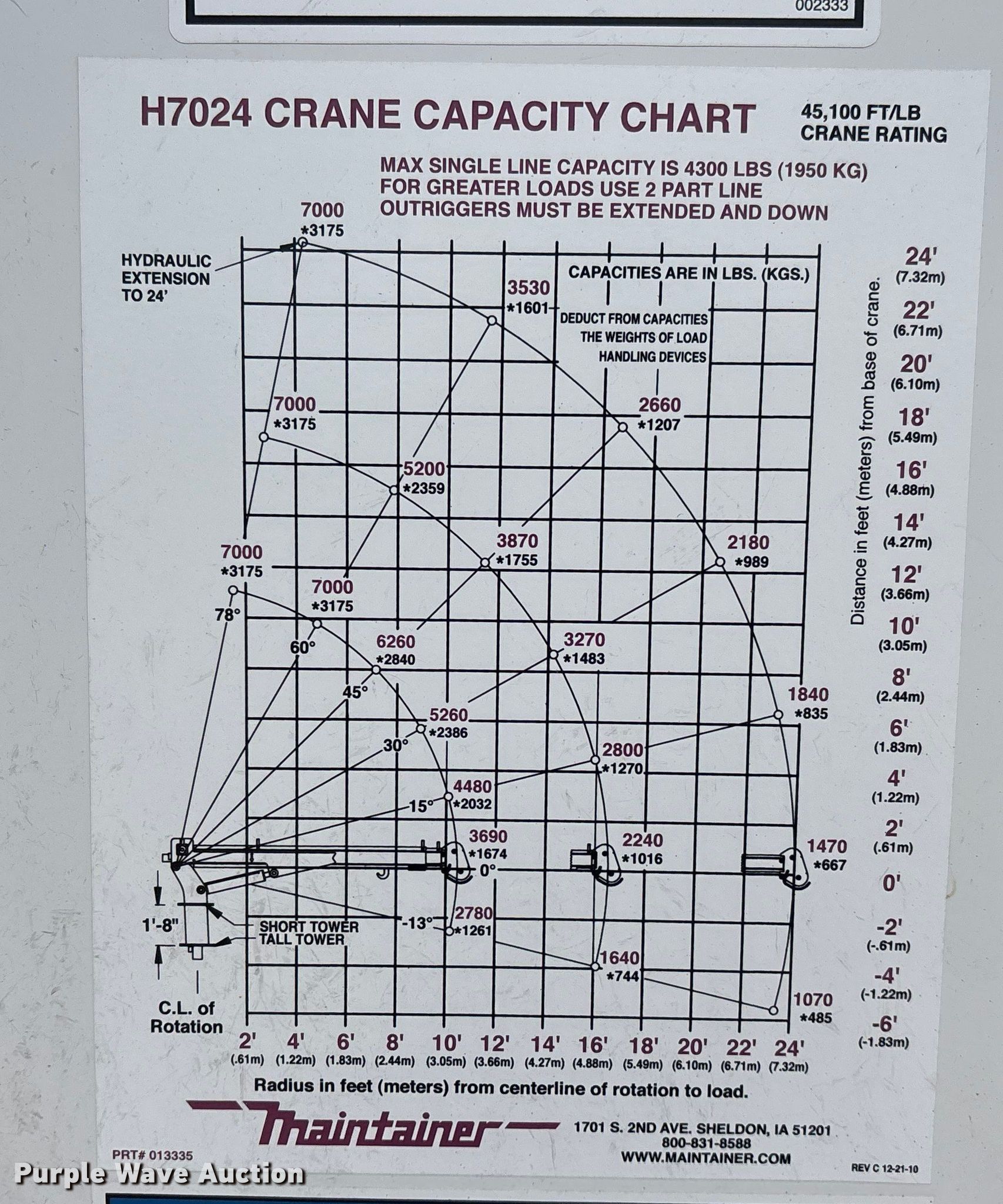 2017 Ford F550 utility / service truck. Miles: 206,173 on odometer, Hours: 8,504 on meter, VIN: 1FDUF5GT2HEF27240. Engine Ford, Displacement: 6.7L, Cylinders: 8, Fuel type: Diesel. Transmission Automatic. Chassis Axles: Single, Suspension: Spring, Brakes: Hydraulic, PTO, GVWR: 19,500 lbs, Wheelbase: 169". Interior AC, Heat, Power windows, Power locks, Cruise control, Auxiliary controls, Brake controller. Features Bed Utility bed, Maintainer Corp. of Iowa, Serial: DA165, Air compressor Maintainer RC 40, Oil/lube system Reservoirs Hydraulic fluid, Crane Maintainer H7024, Maximum boom length: 24' Maximum lift capacity: 7,000 lbs.. Tires Size: 225/70R19.5. Notes Dash warning indicator: Check engine, Battery. Arizona title. Seller is an Arizona licensed motor vehicle dealer. The buyer may be required to pay sales tax and/or registration fees to the dealer prior to taking possession. Buyers may be required to provide identification to the licensed dealer to comply with state laws. Title will be assigned and distributed by the dealer. Please contact the seller for distribution questions. PacWest Trading LLC. Phoenix, AZ 85024