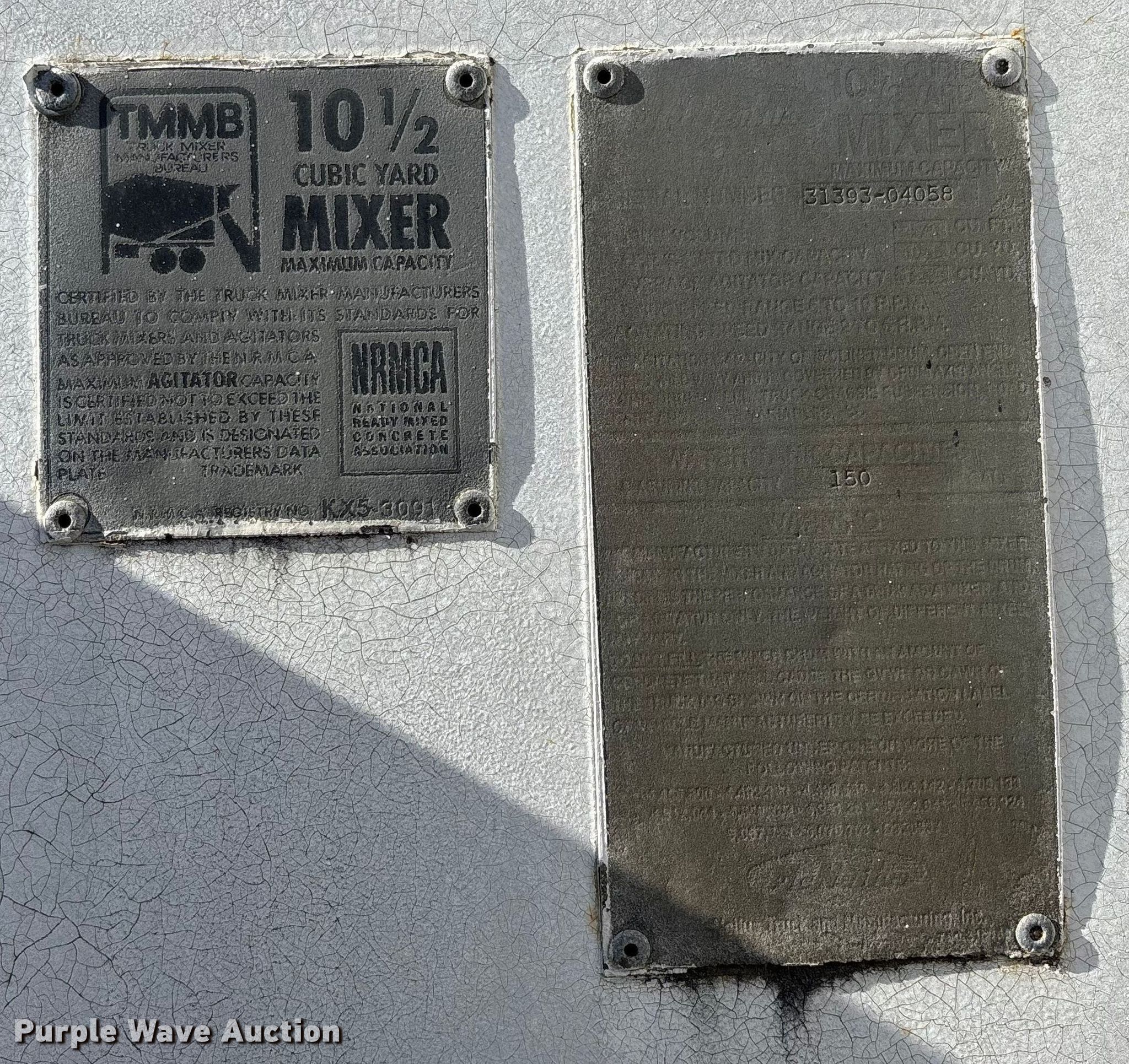 1993 Ford LT9000 ready mix truck. Miles: 143,227 on odometer, Hours: 313 on meter, VIN: 1FDZU90L8PVA29992. Engine Cummins L-10, Displacement: 10.0L, Cylinders: 6, Fuel type: Diesel. Transmission Manual, Speed: 8. Chassis Axles: Tandem, Tag axle Steerable, Differential lock: Inter-axle, Brakes: Air, PTO, GVWR: 56,000 lbs FAWR: 20,000 lbs, RAWR: 23,000 lbs. Interior AC, Heat. Features Mixer TMMB, Serial: 31393–04058, Capacity: 10 cu.yd., Rear drum controls, Water tank capacity: 150 gallons, Chute Extensions: 3, Chute type: Steel.. Tires Front: 445/65R22.5, Rear: 11R22.5. Notes Batteries not included, Jump start required during on-site data collection, Alternator belt issues, needs replaced, Unknown operating condition of hour meter, Non-operational AC, disconnected, Chute issues, will not raise and lower, Tag axle issues, will not raise and lower. Kansas title. Title distribution may be delayed up to 14 days from verification of funds. Meier Industries LLC. Topeka, KS 66608