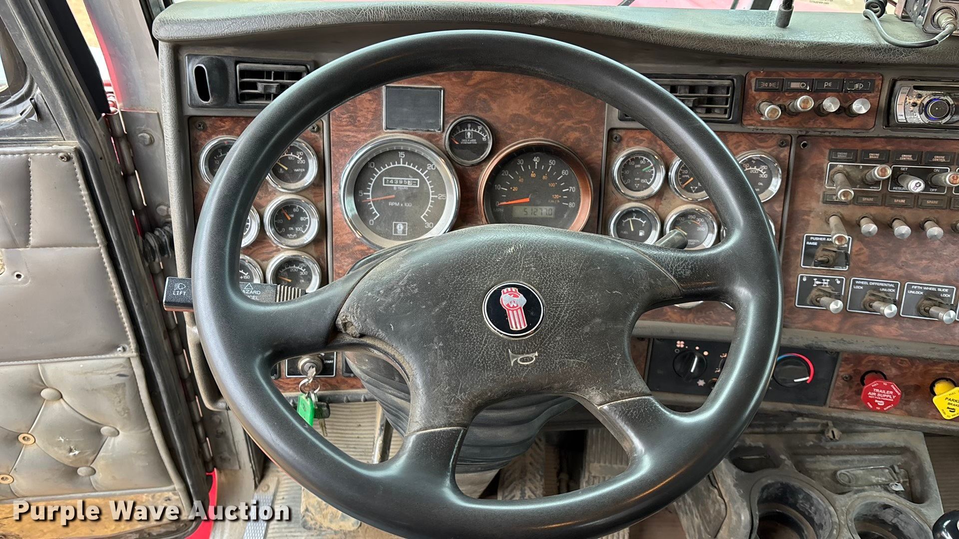 Purple Wave is selling a used Truck Tractor in Kansas. This item is a 2003 Kenworth T800 semi truck with the following: Miles: 51,277 on odometer, Miles: Actual unknown, Hours: 24,395 on meter, Miles or hours may vary, unit still in use, VIN: 1XKDPBTX63J705406