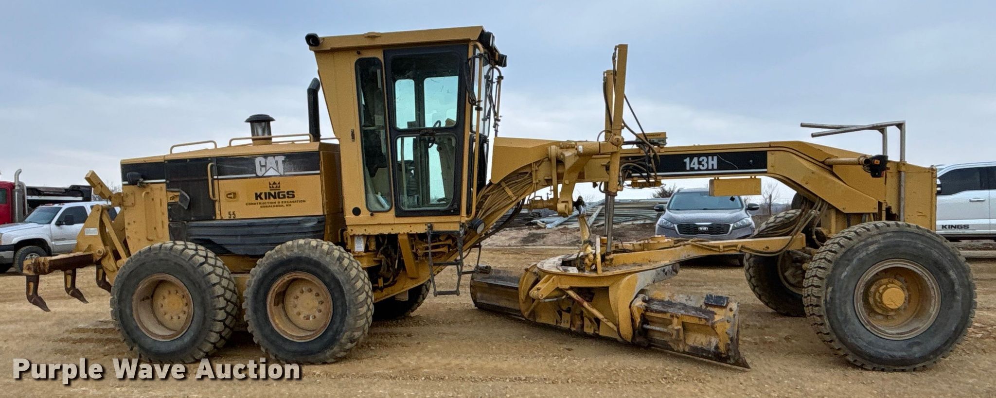 Purple Wave is selling a used Motor Grader in Kansas. This item is a 2001 Caterpillar 143H motor grader with the following: Hours: 12,011 on meter, Serial: CAT0143HKAPN00206