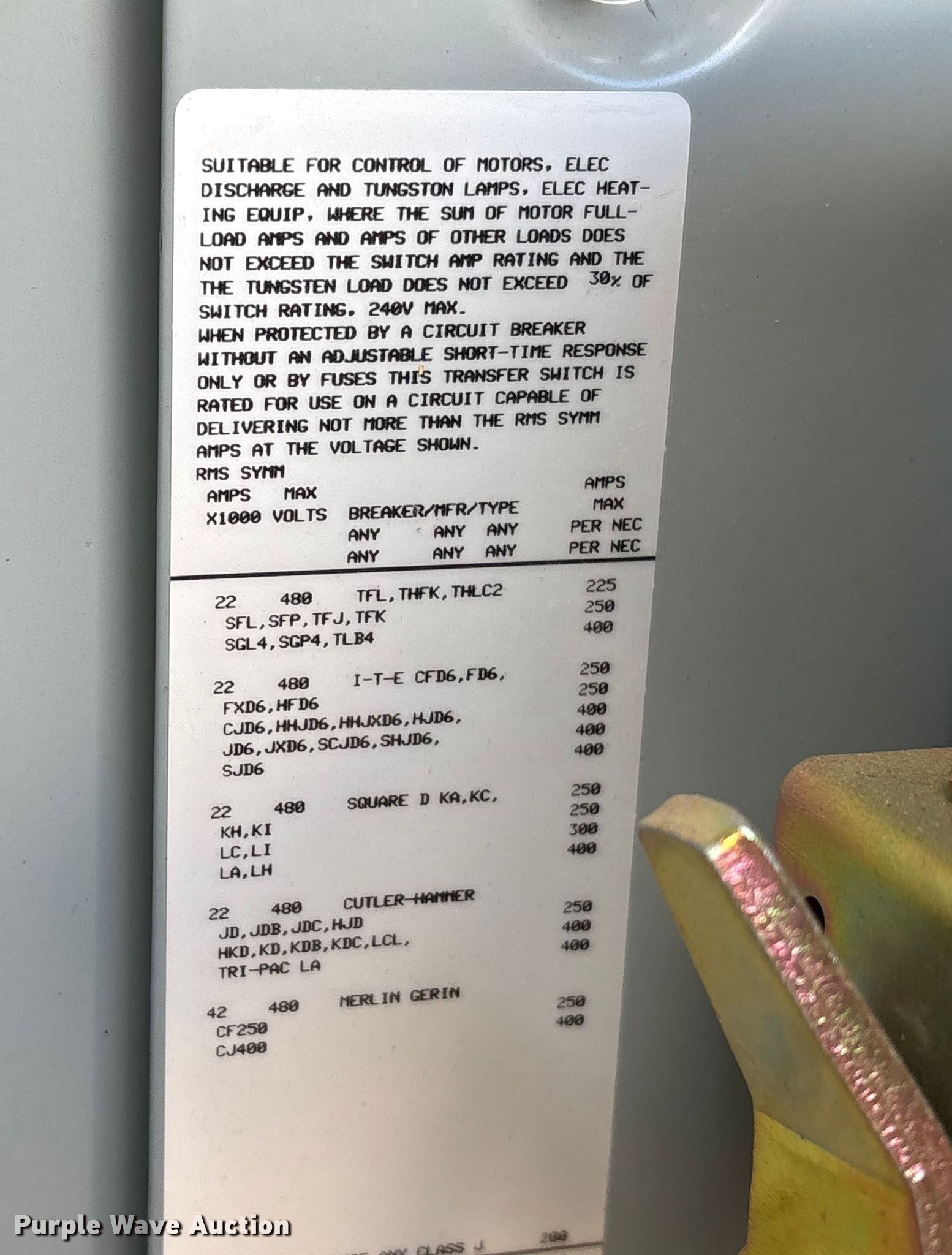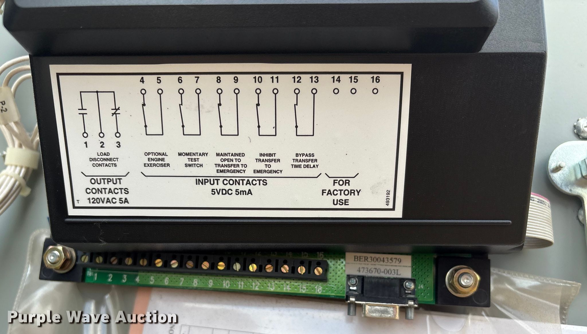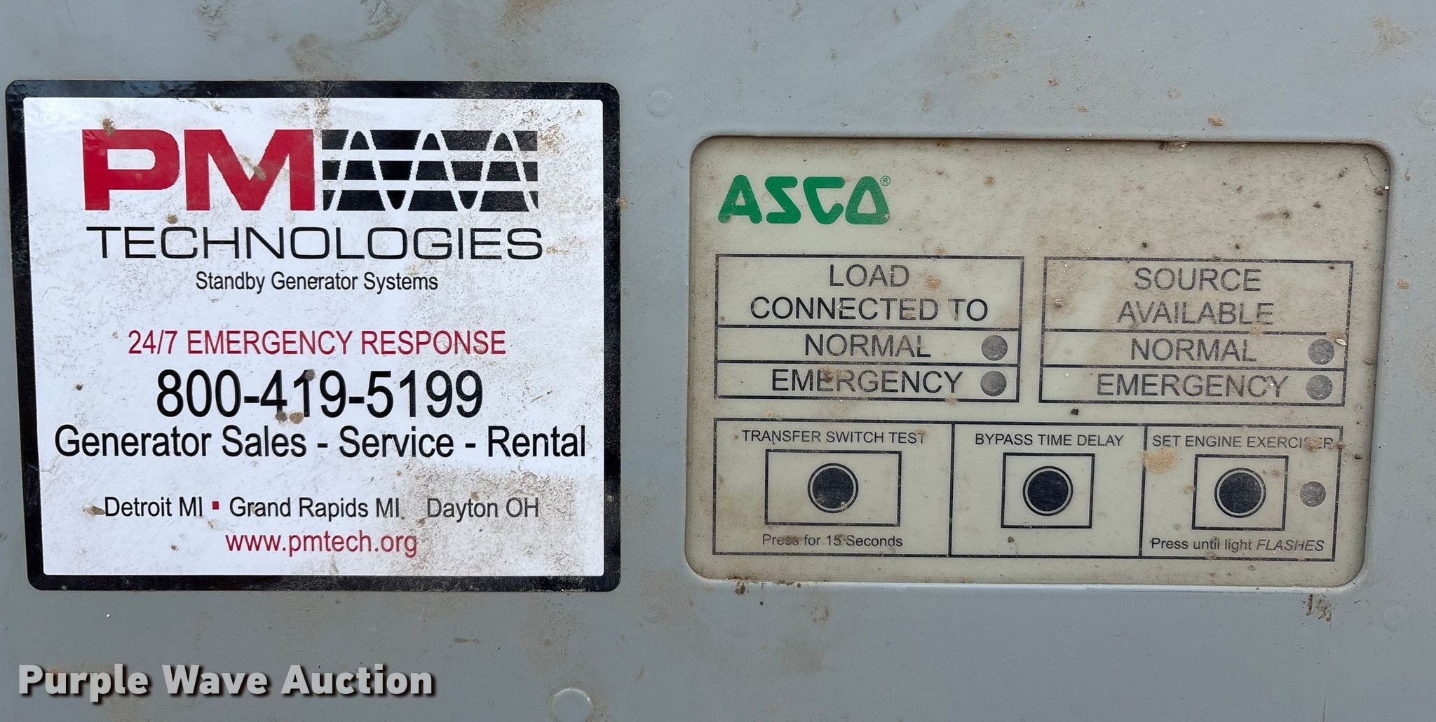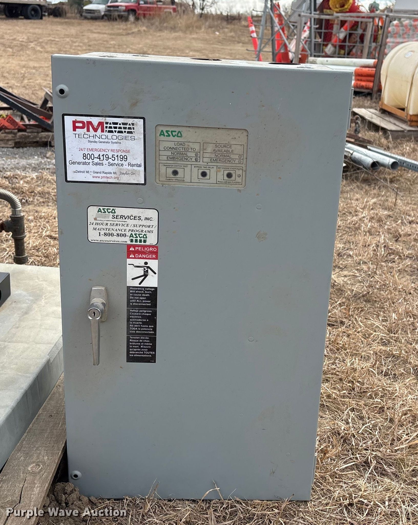 Briggs & Stratton generator. Hours: Unknown. Features Asco Series 300 automatic transfer switch Amps: 200, Volts: 240, Generator: HZ: 50 to 60, Phase: 1, Serial: 288362, 010 RE, Plastic base Size: 36 x 36 x 3. Notes Unknown operating condition , Unkown fuel type. Skywave Wireless Inc... West Point, NE 68788