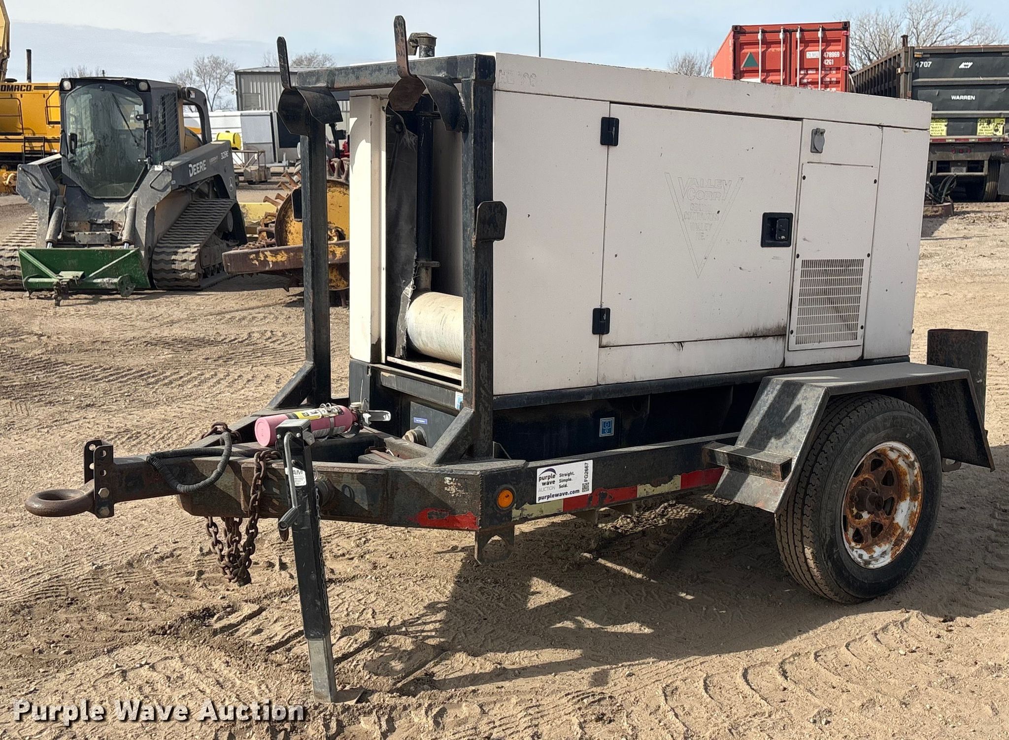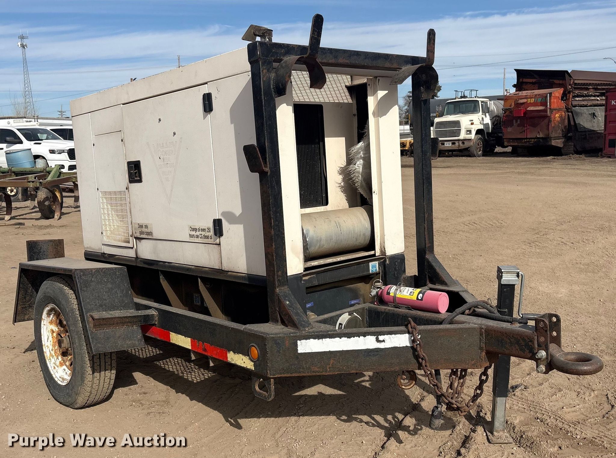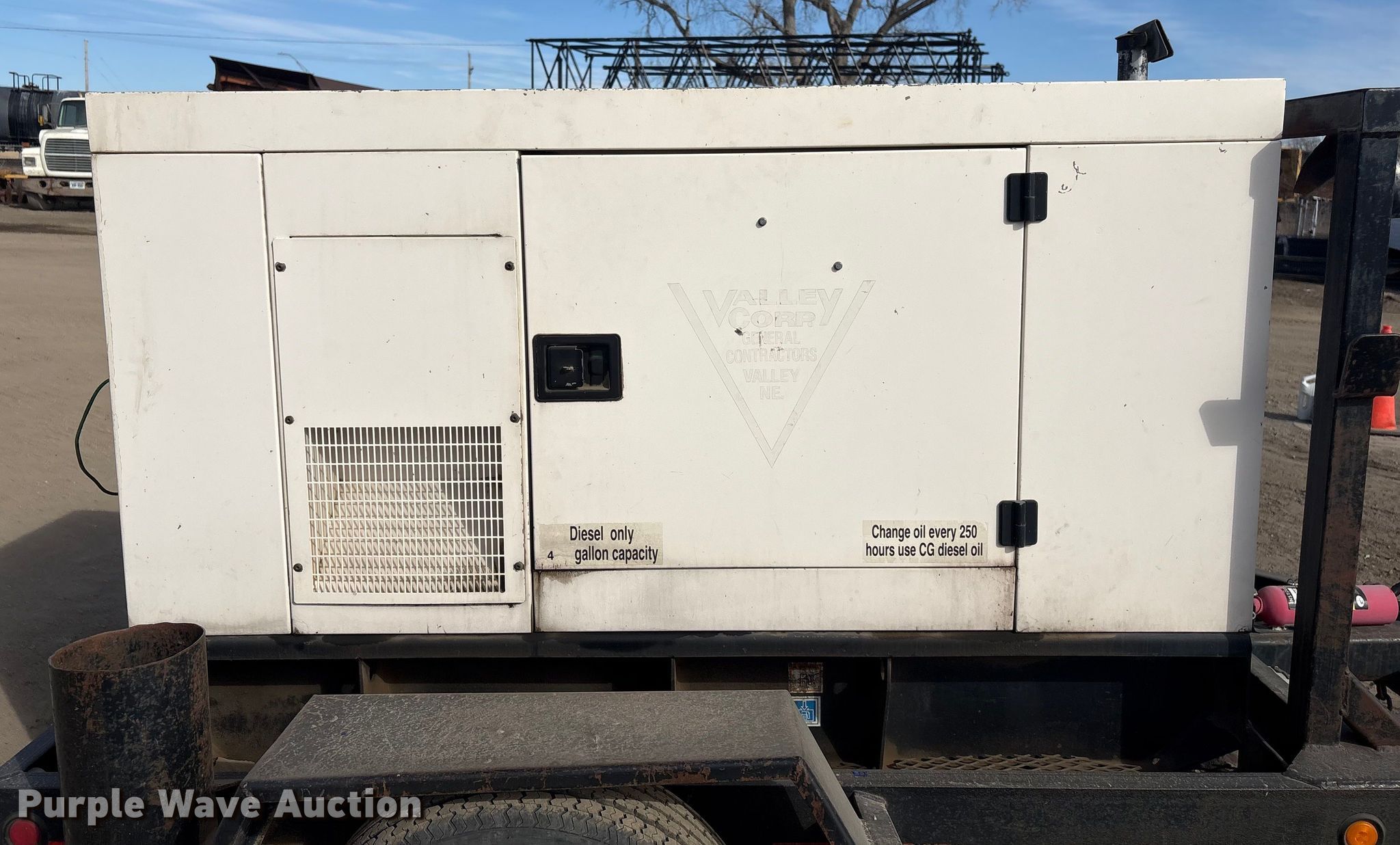 2003 Olympian XQ20P2 generator. Hours: 35,877 on meter, Serial: OLY00000LF4P00157, 10'9"L x 76" W. Engine Perkins GN66141N, Serial: 758793V, Cylinders: 4, Fuel type: Diesel. Features Generator kVA: 25, kW: 20, Phase: Three, Electric start, Fuel tank. Trailer Suspension: Torsion, Brakes: Electric, Axles: Single, Tire size: 205/75R15. This is worksite support equipment and will not come with a title. Transfer of ownership documentation will be a bill of sale. Valley, NE 68064