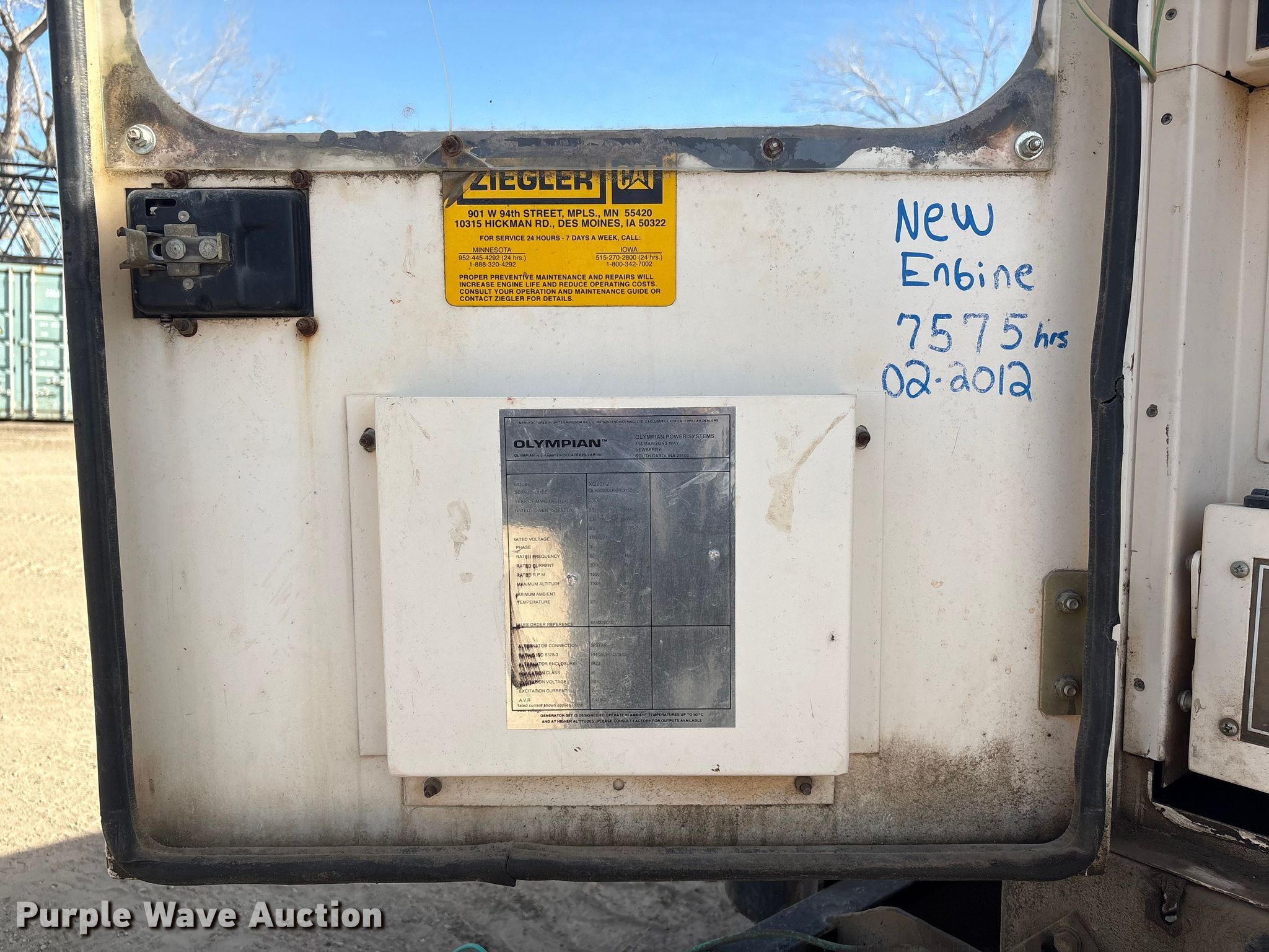 Purple Wave is selling a used Generator Set in Nebraska. This item is a 2003 Olympian XQ20P2 generator with the following: Hours: 35,877 on meter, Serial: OLY00000LF4P00157, 10'9"L x 76" W
