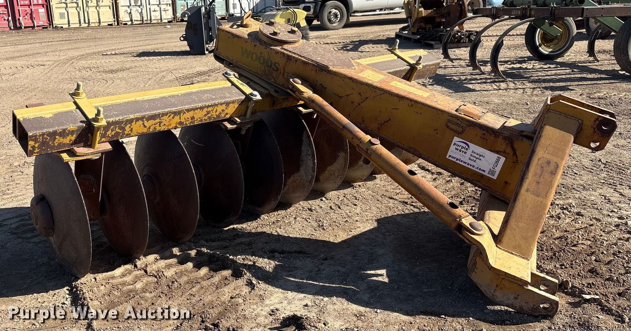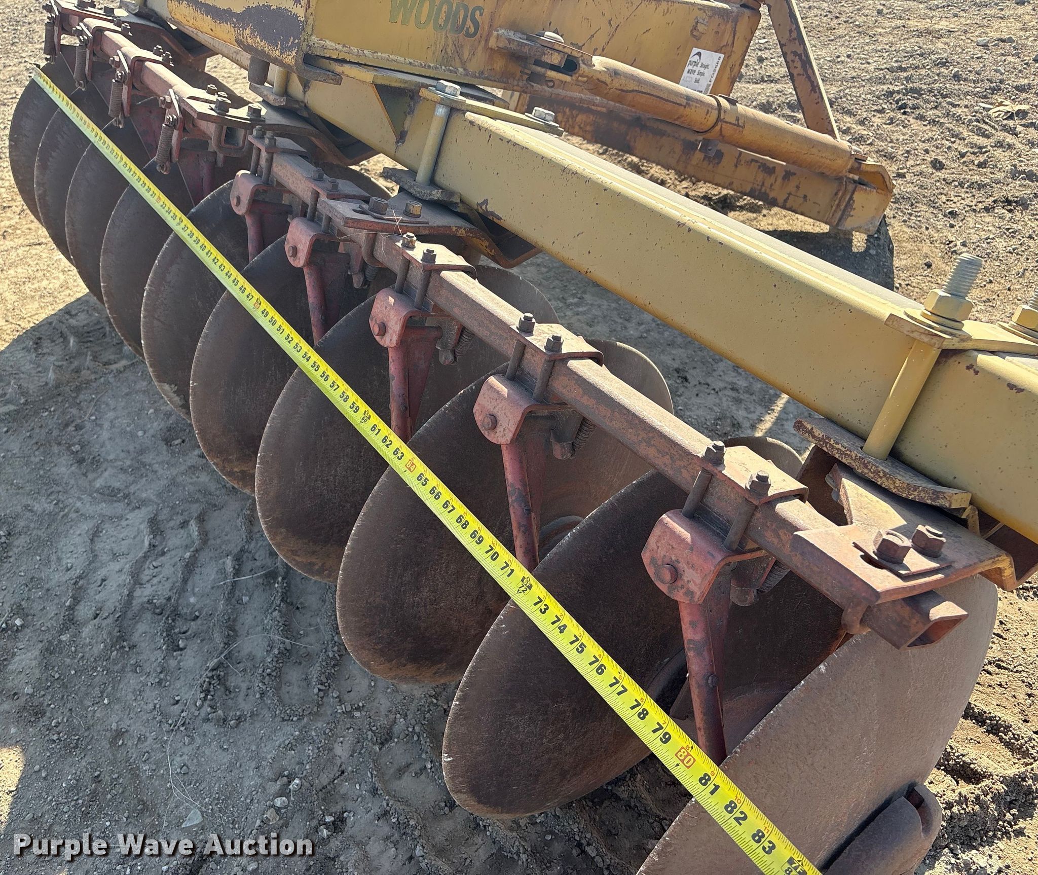Purple Wave is selling a used Disk in Nebraska. This item is a Woods disk with the following: Overall width: 7' 7"