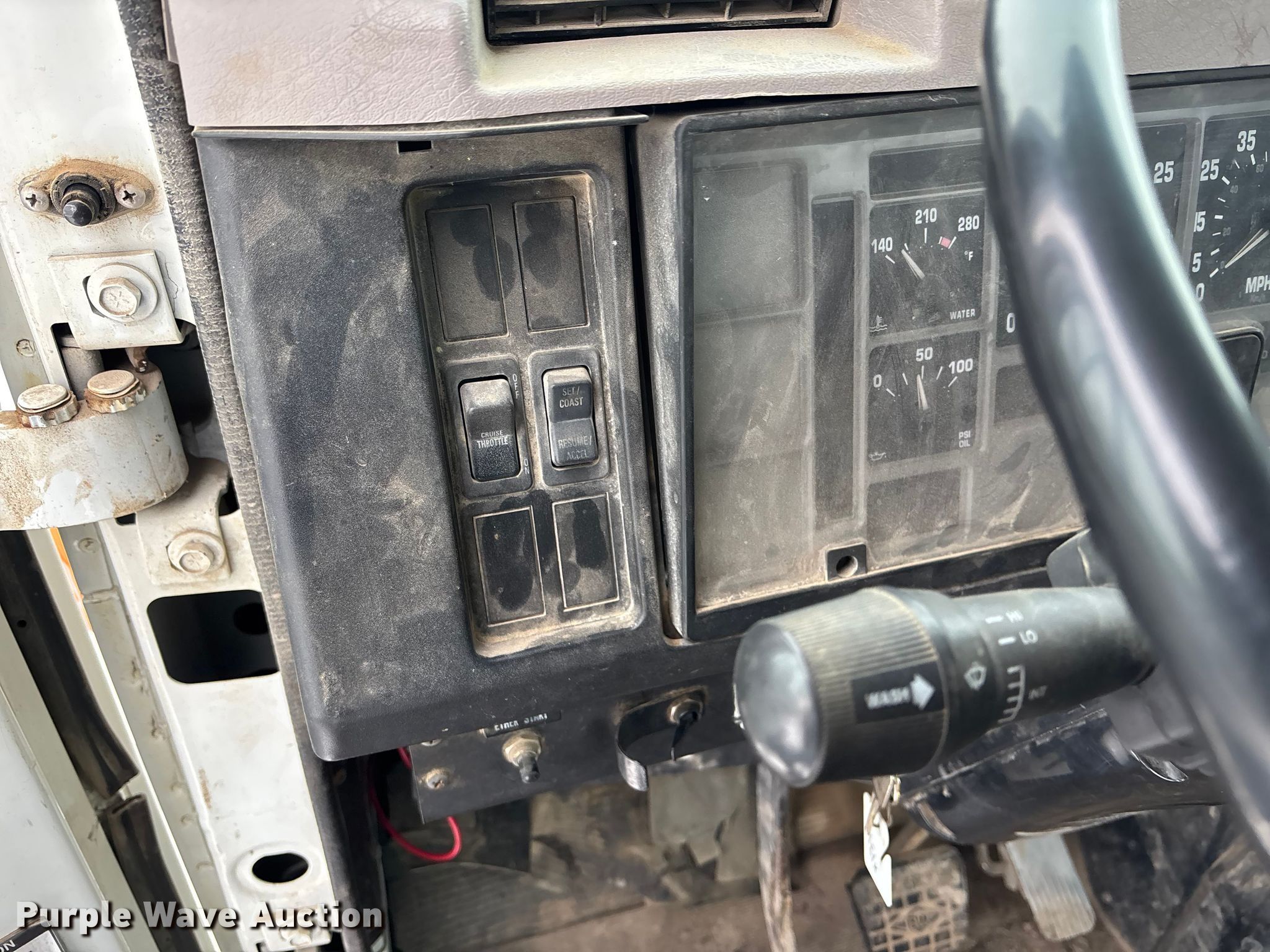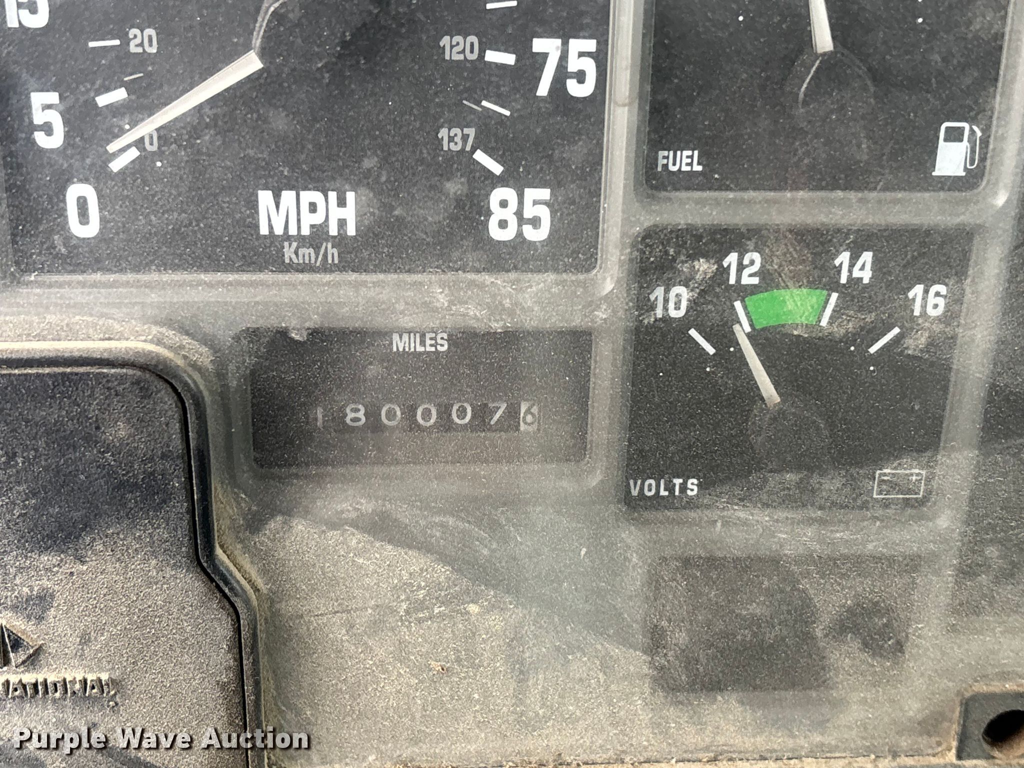 1999 International 2574 semi truck. Miles: 180,008 on odometer, VIN: 1HSGGAHR5XH207859. Engine Cummins, Displacement: 10.8L, Cylinders: 6, Fuel type: Diesel. Transmission Eaton Fuller, Manual, Speed: 13. Chassis Axles: Tandem, Differential lock: Inter-axle, Suspension: Air Dump valves, Brakes: Air, PTO, Wet kit, Wheelbase: 180". Interior AC, Heat, Cruise control, Air ride cab. Features Deck plate: Aluminum, Fifth wheel type: Fixed, Fuel tank: Single. Tires Size: 11R22.5. Kansas title. Title distribution may be delayed up to 30 days from verification of funds. Bayer Construction Company. Manhattan, KS 66502