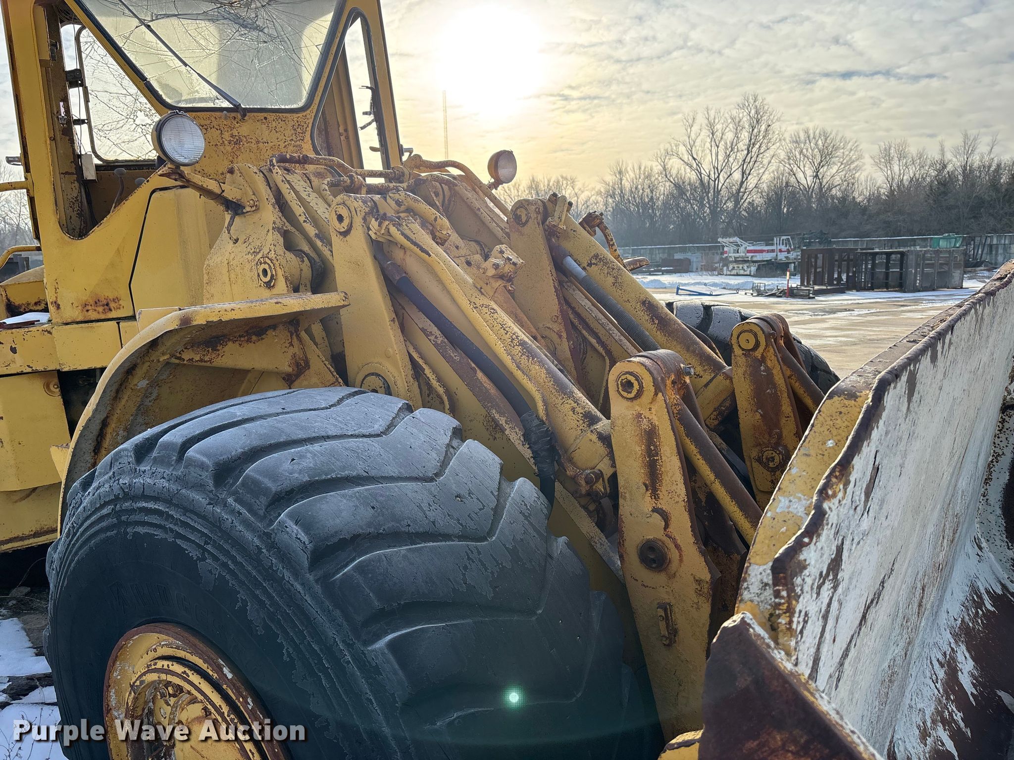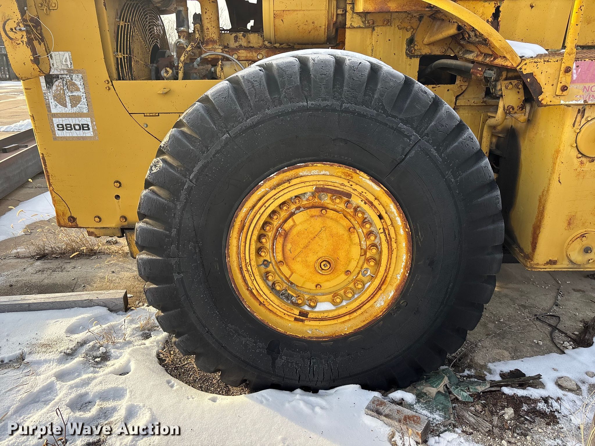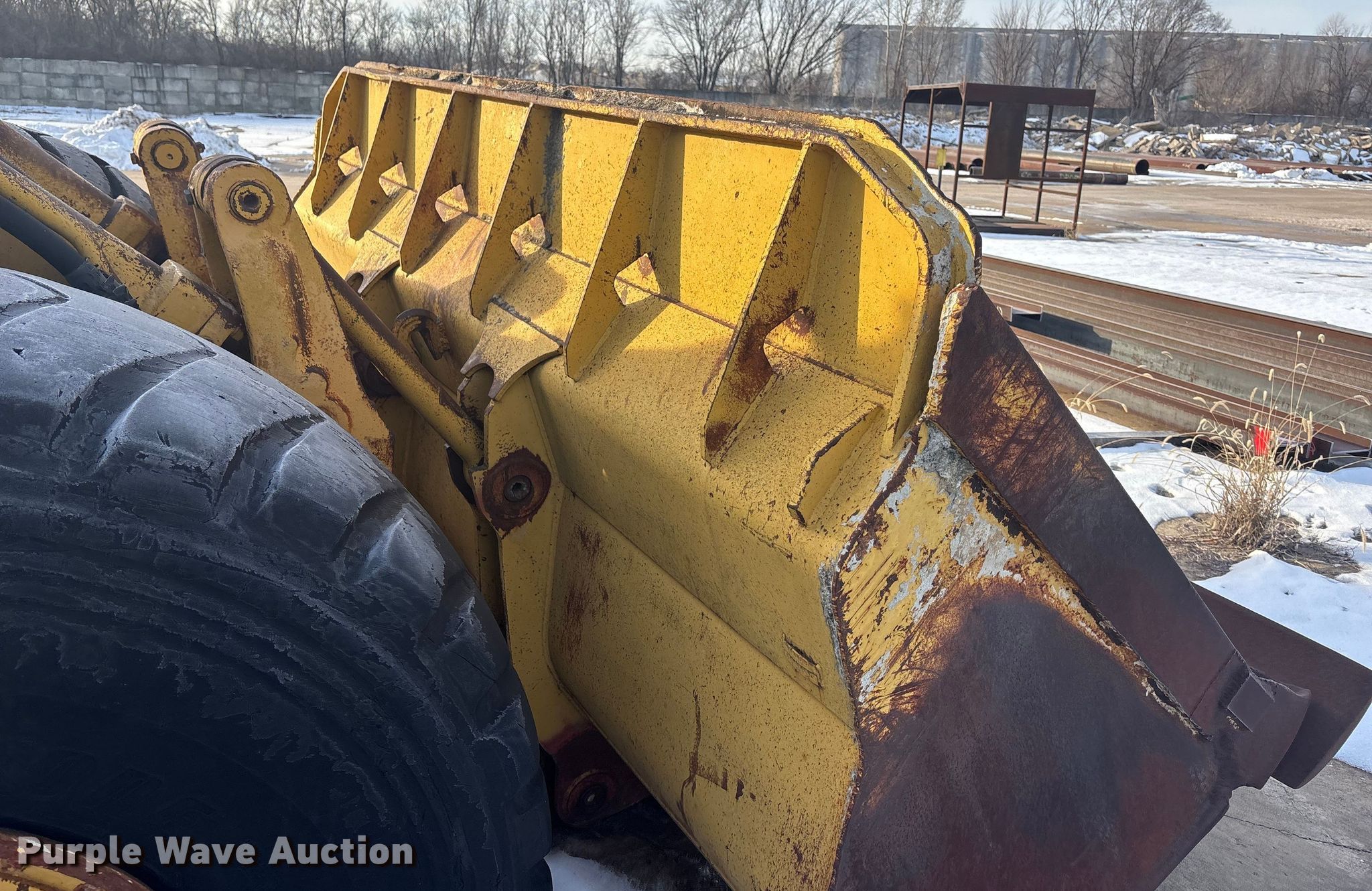 1978 Caterpillar 980B wheel loader. Hours: 6,616 on meter, Serial: 89P6714. Engine Serial: 3N65279, Cylinders: 6, Fuel type: Diesel. Transmission Powershift, 4F - 4R. Operators station Enclosed cab, Heat. Features Counter weights, Bucket Width: 125", Cutting edge: Bolt-on. Tires Size: 26.5-25. Notes Flat tires, Glass cracked, Bucket damaged, cracked, Non-operational unit. Buyer responsible for all aspects of loadout and removal.. Meier Industries LLC. Topeka, KS 66608