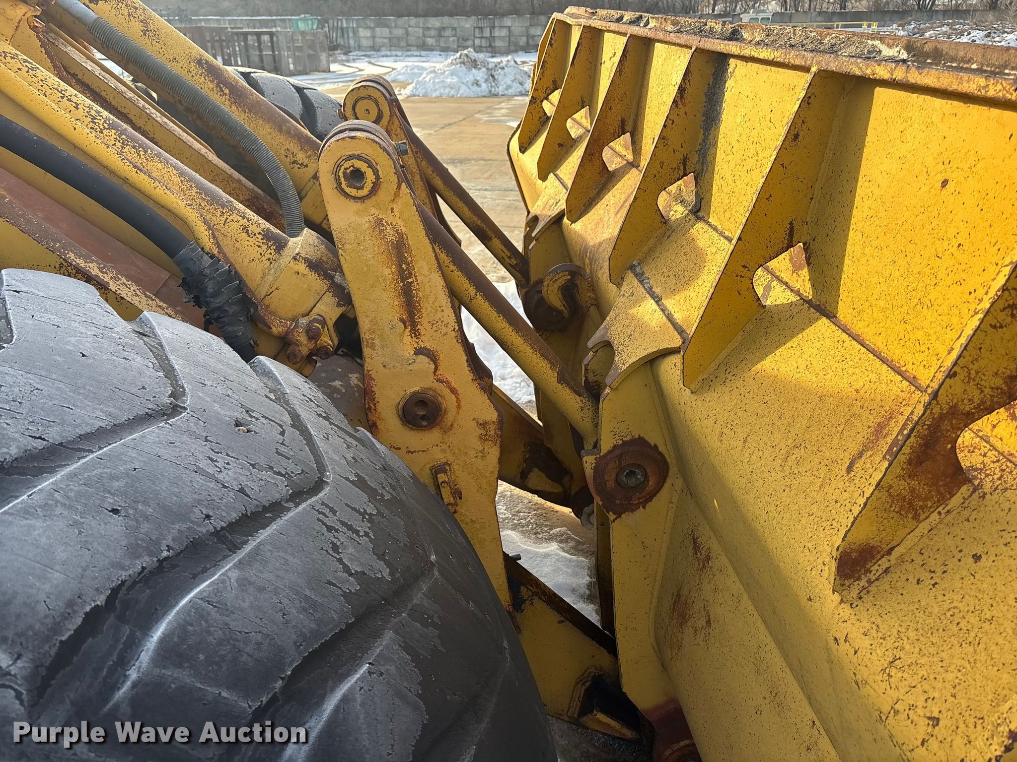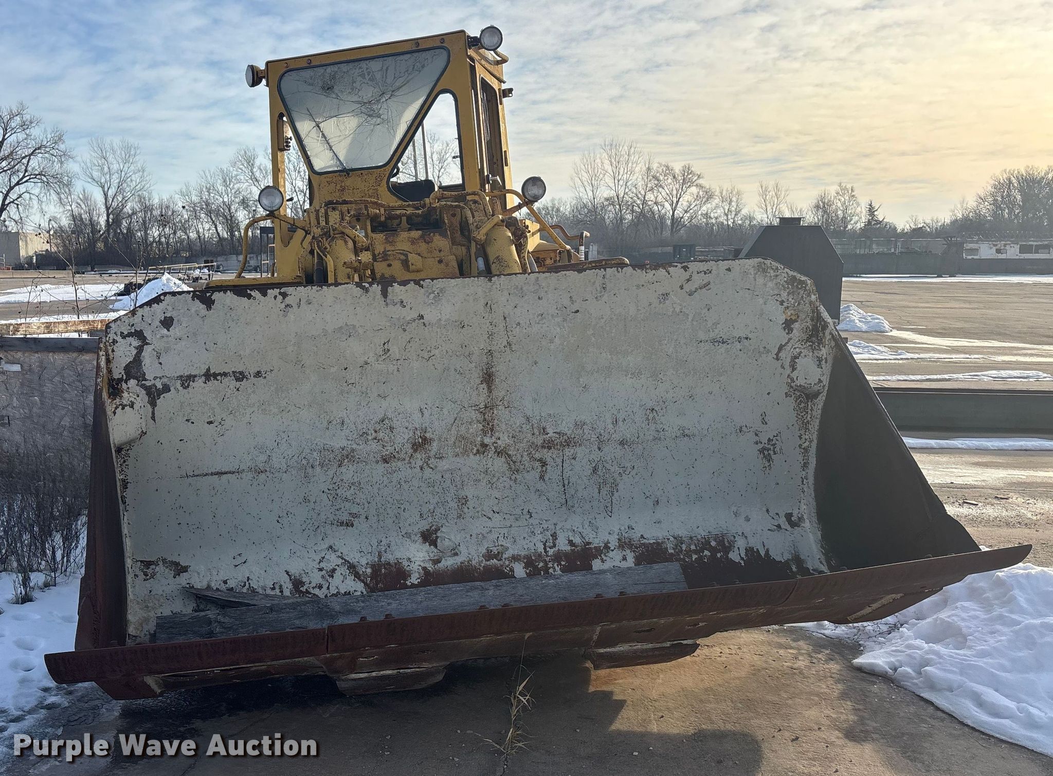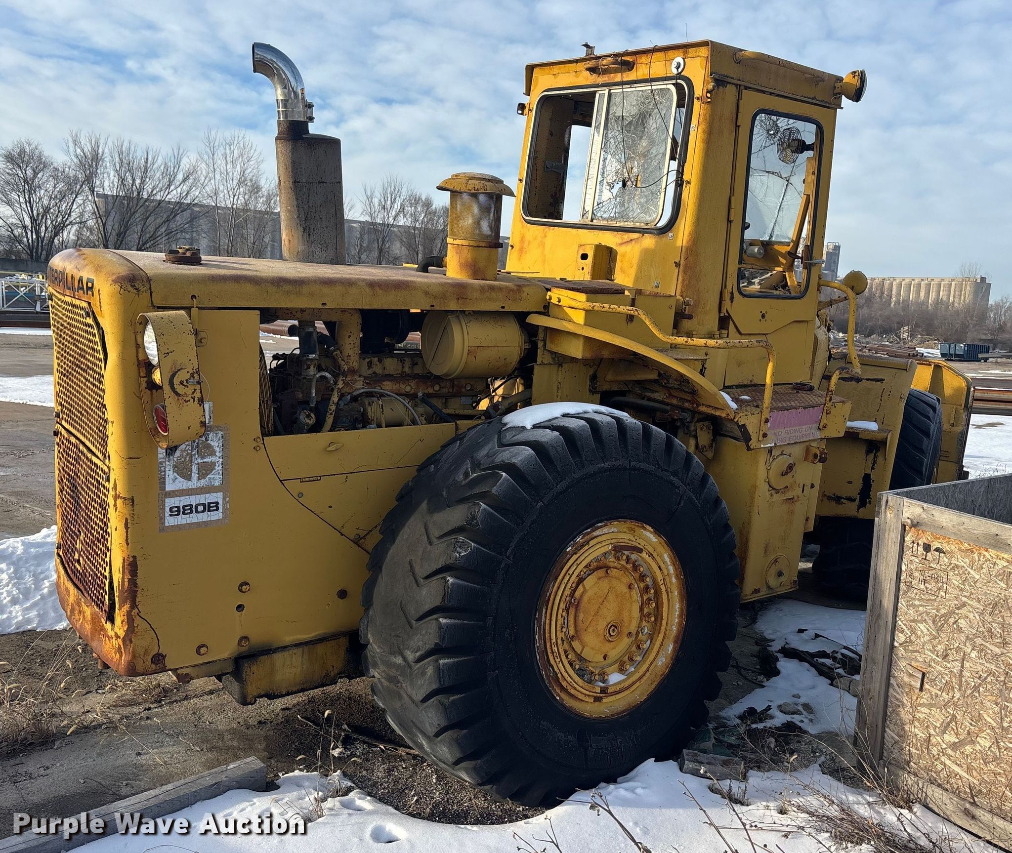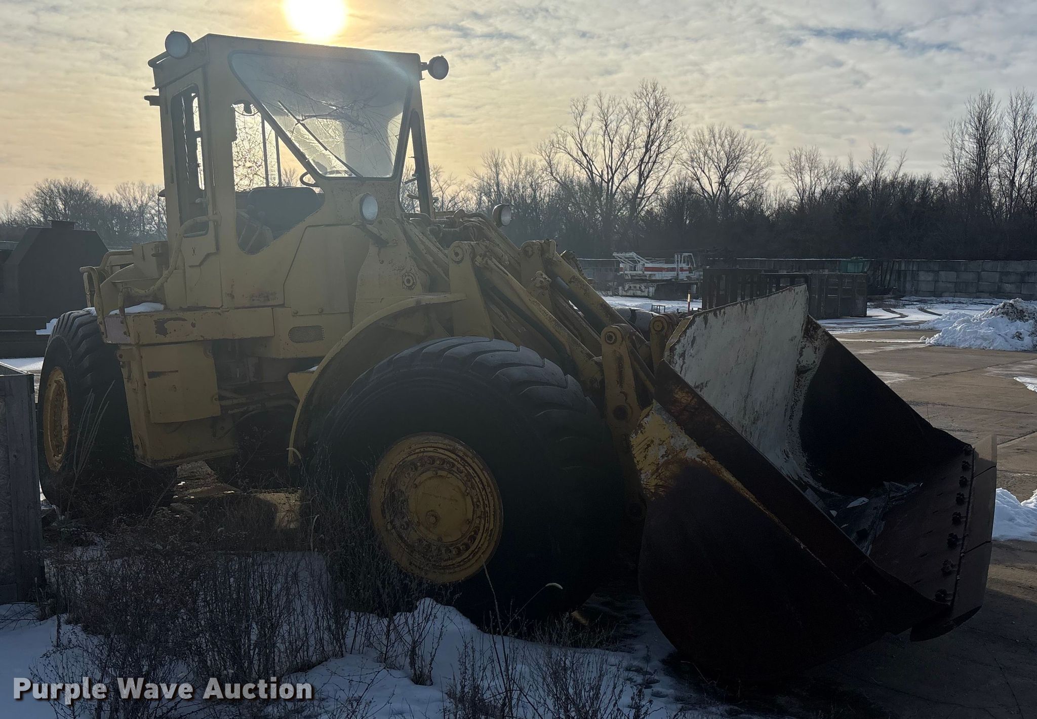 1978 Caterpillar 980B wheel loader. Hours: 6,616 on meter, Serial: 89P6714. Engine Serial: 3N65279, Cylinders: 6, Fuel type: Diesel. Transmission Powershift, 4F - 4R. Operators station Enclosed cab, Heat. Features Counter weights, Bucket Width: 125", Cutting edge: Bolt-on. Tires Size: 26.5-25. Notes Flat tires, Glass cracked, Bucket damaged, cracked, Non-operational unit. Buyer responsible for all aspects of loadout and removal.. Meier Industries LLC. Topeka, KS 66608