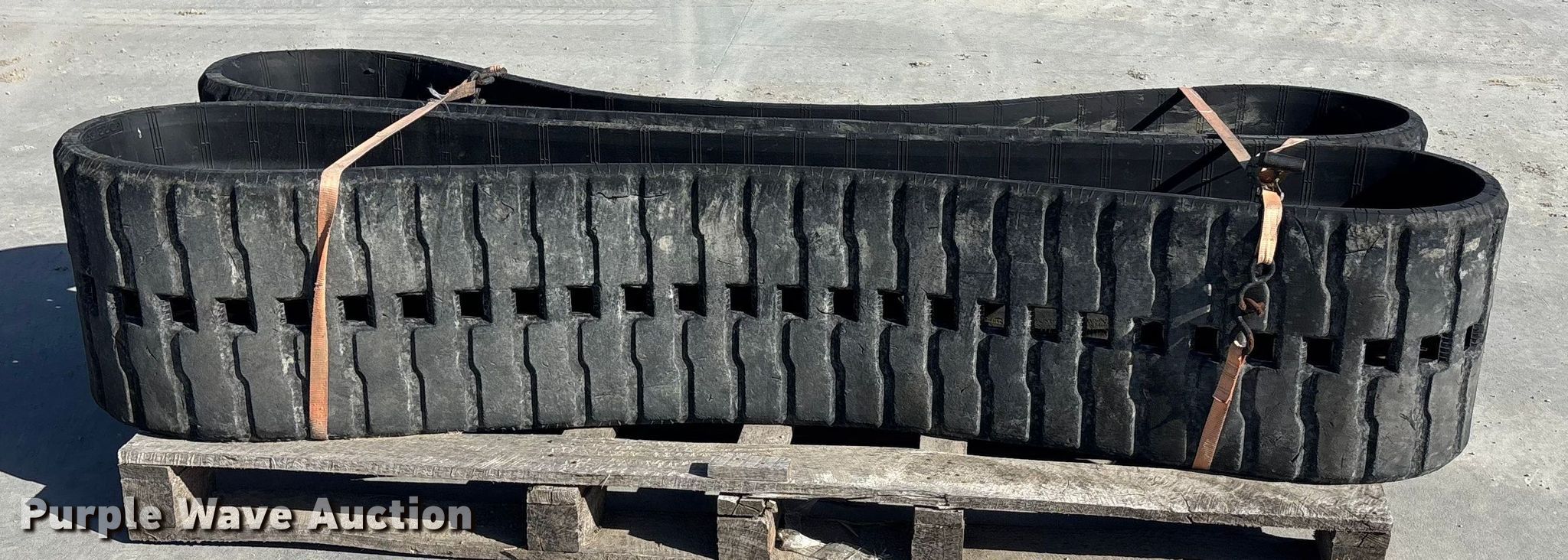 Purple Wave is selling a used Industrial Tires or Tracks in Kansas. This item is a 17.5" W skid steer tracks with the following: Removed from a 2023 333G skid steer, Fits a Kubota SVL95-2S skid steer