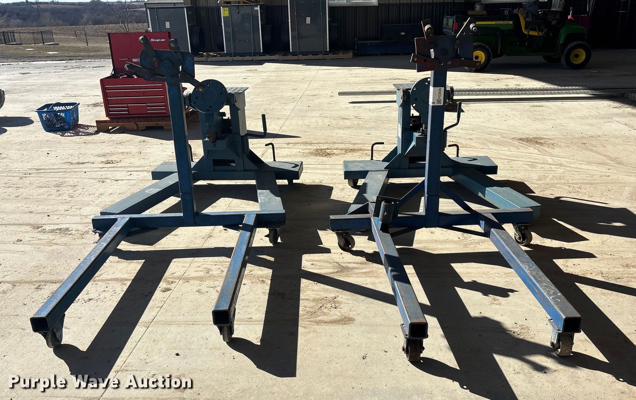 Purple Wave is selling a used Tools in Kansas. This item is a (4) engine stands with the following: (2) semi motor Kent Moore J41370 motor stands, (2) passenger vehicle motor stands